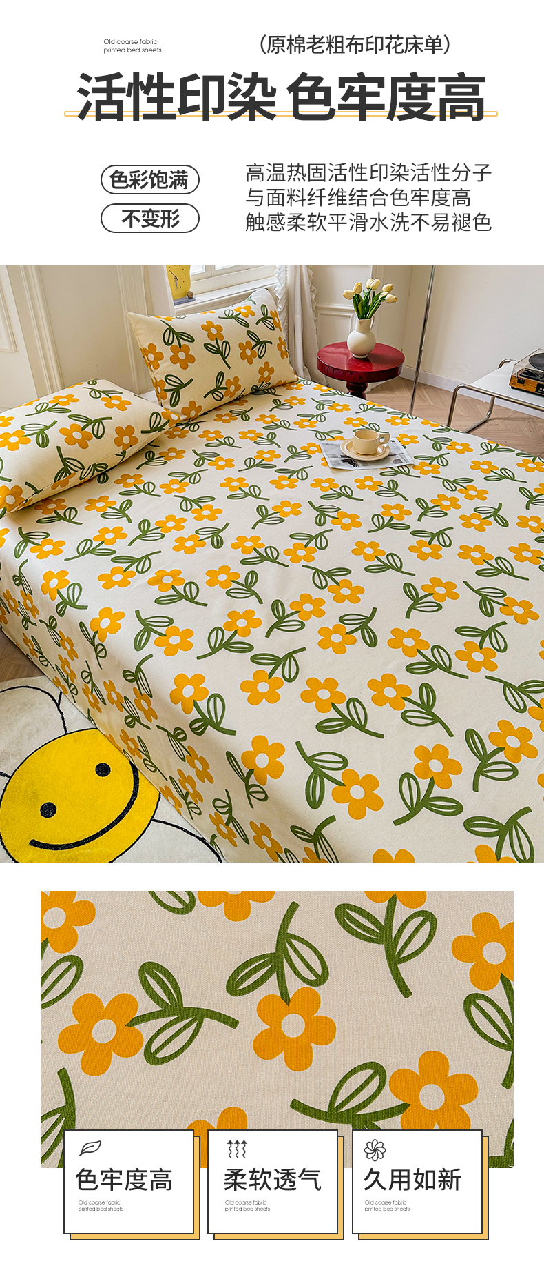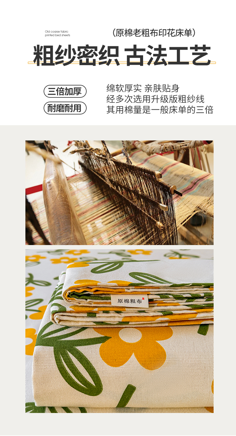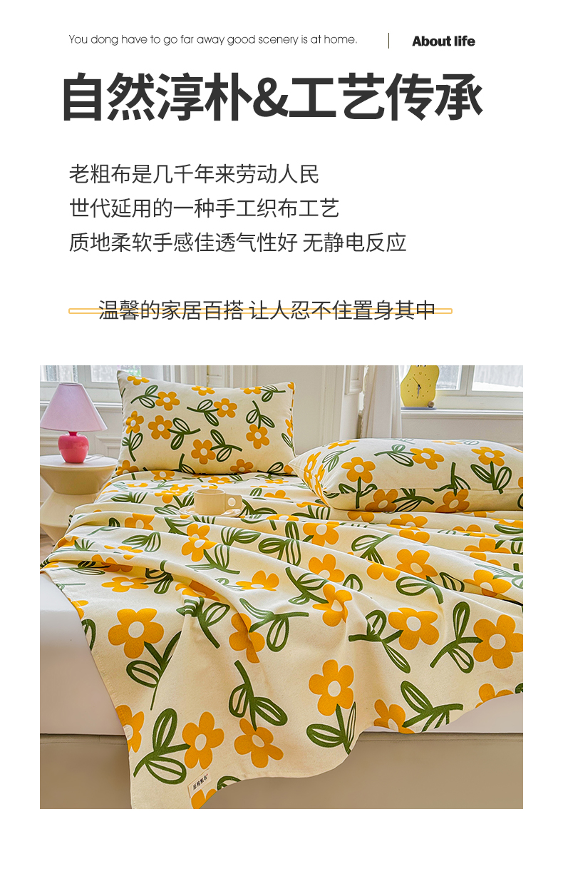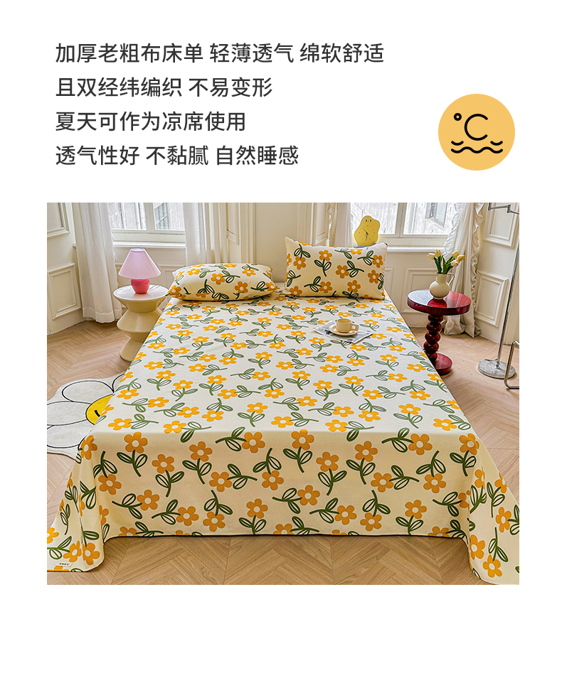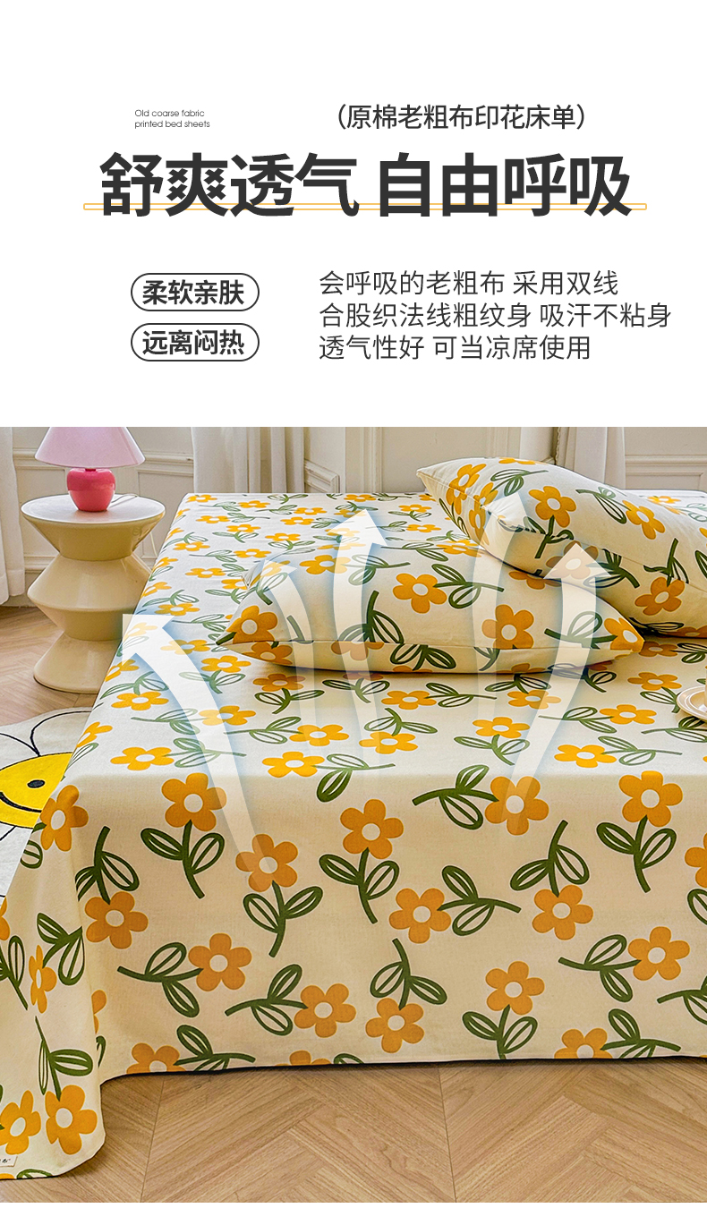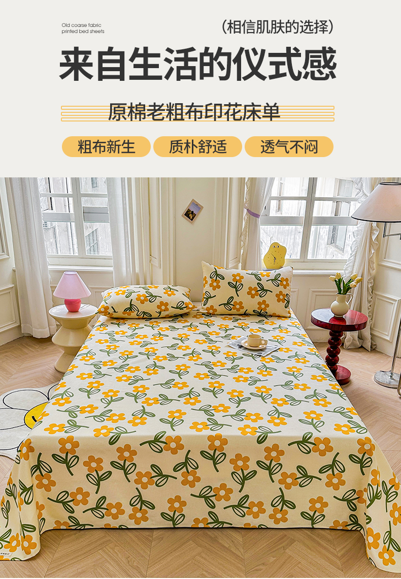 • 91家纺网 家纺一手货源 找家纺 晓时候 2025原棉老粗布床单凉席三件套软凉席子单床单 夕颜花开