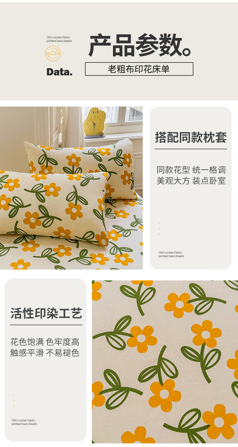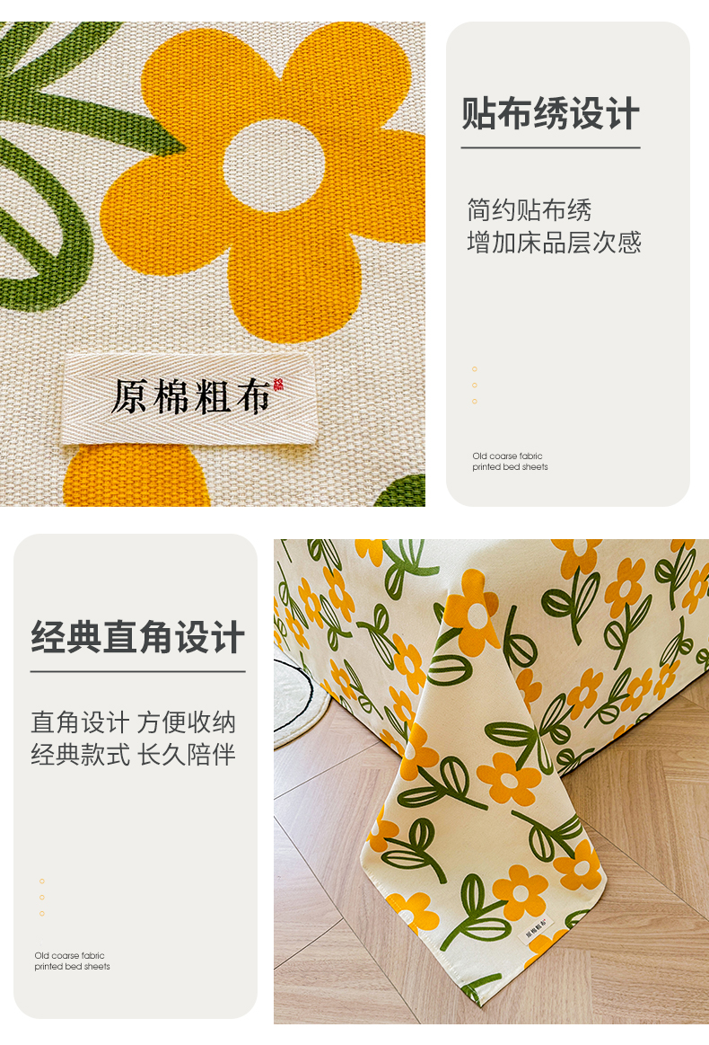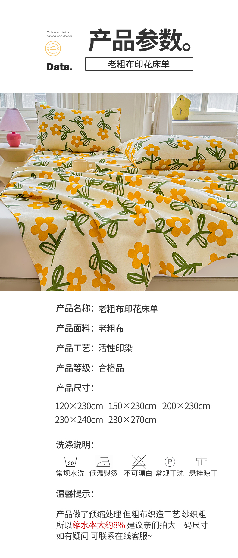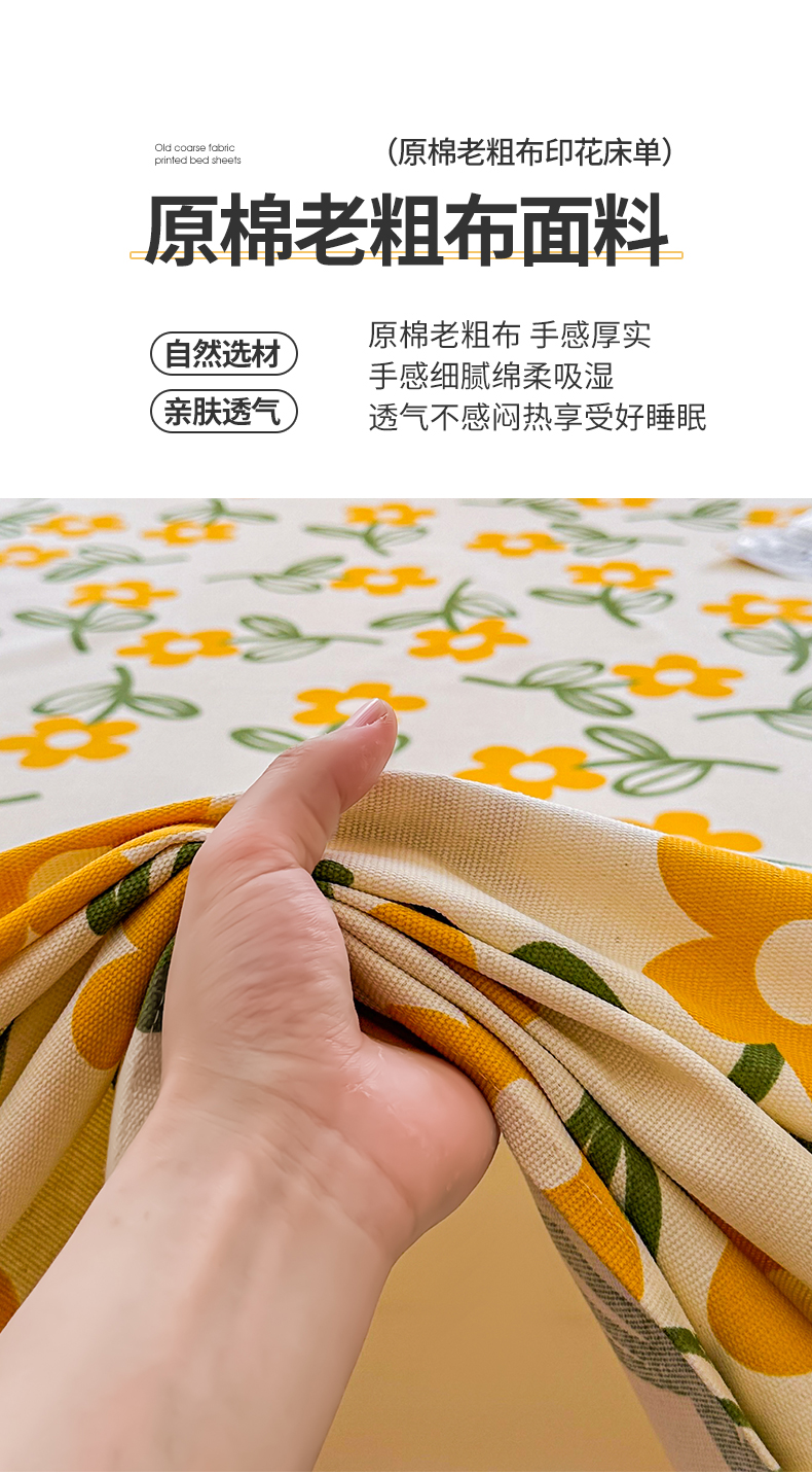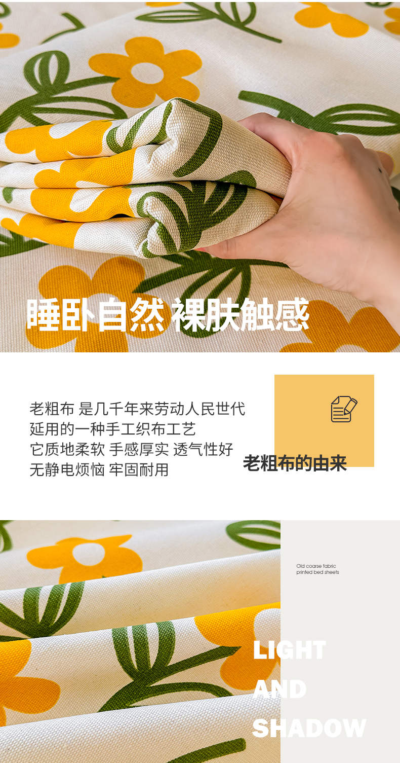 • 91家纺网 家纺一手货源 找家纺 晓时候 2025原棉老粗布床单凉席三件套软凉席子单床单 夕颜花开
