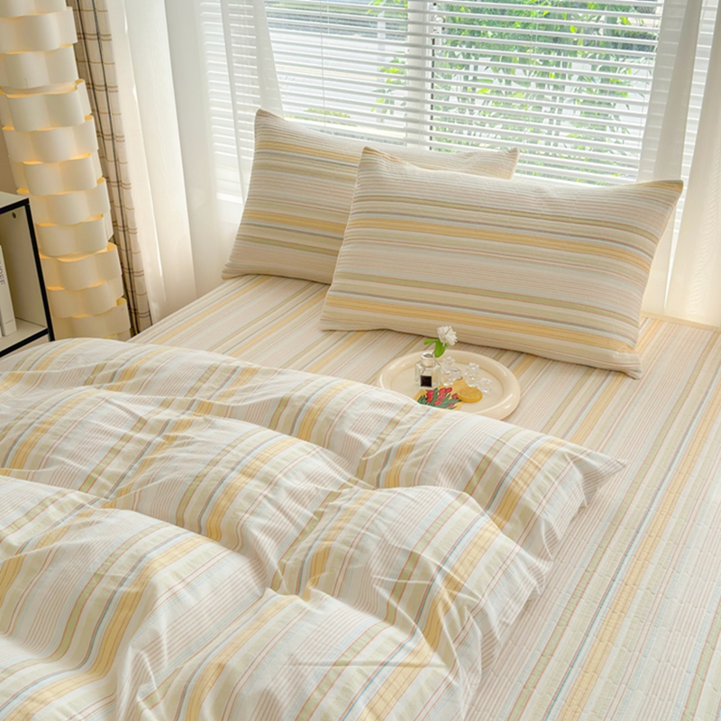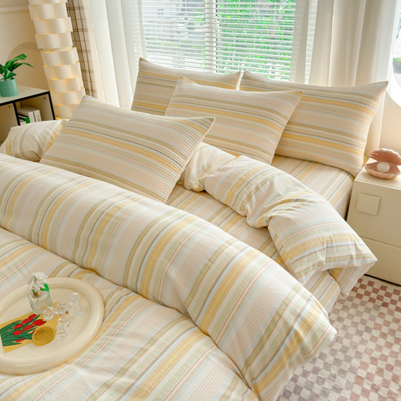 (总)梦精灵家纺 2025新款全棉纯棉色织水洗棉床盖四件套学生床宿舍被套床单枕套,可颂-咖,利奥-红,利奥-蓝,利奥-绿,罗恩-灰,维多利亚-米,西蒙-黄,西蒙-蓝,左岸-粉,雅灰,棕咖,鹅黄,幻影绿,桔红