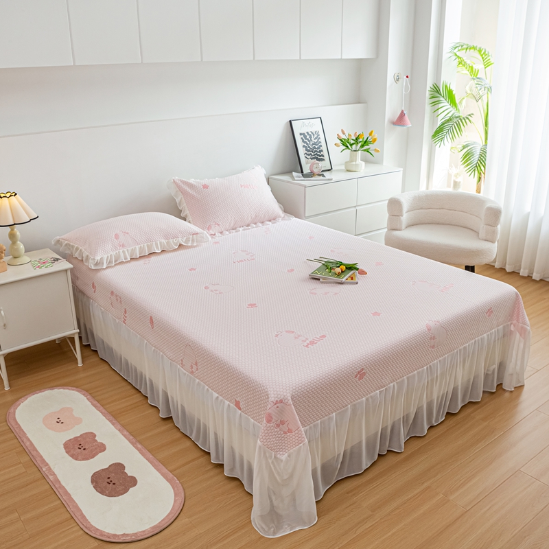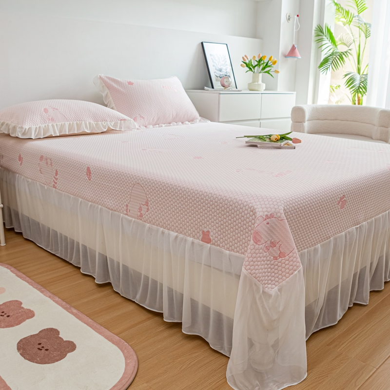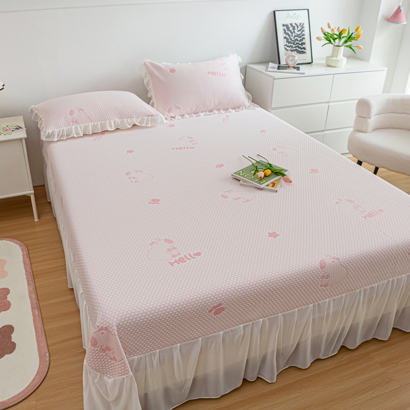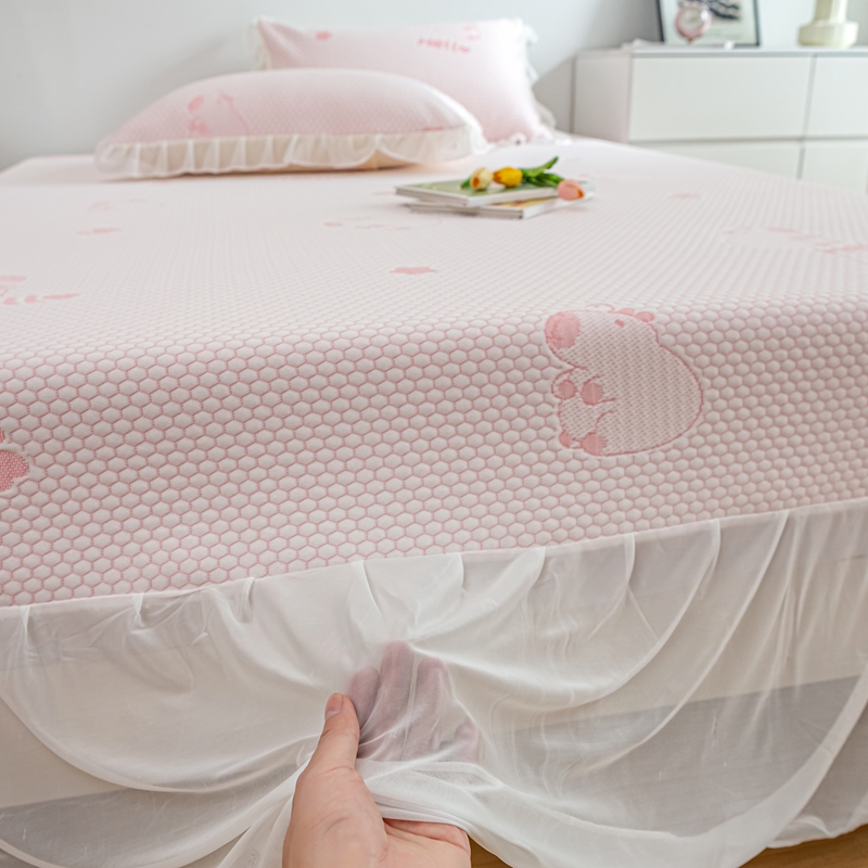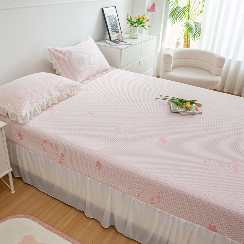 商品名称:春寻家纺 2025新款凉豆豆冰丝凉席席子-床裙款 卡皮巴拉-粉
