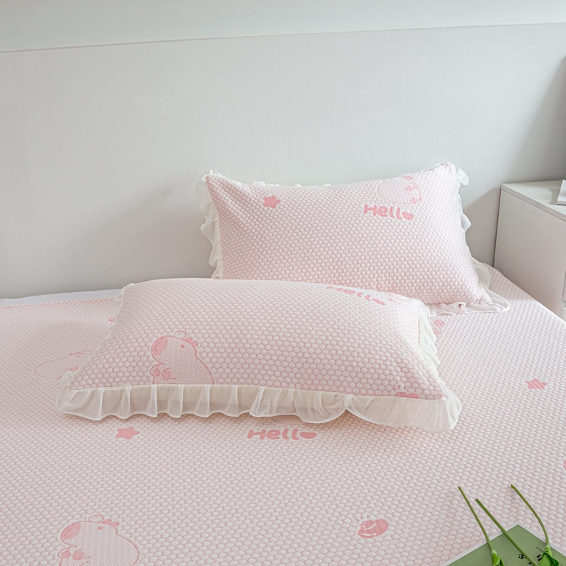 春寻家纺 2025新款凉豆豆冰丝凉席席子-床裙款 卡皮巴拉-粉