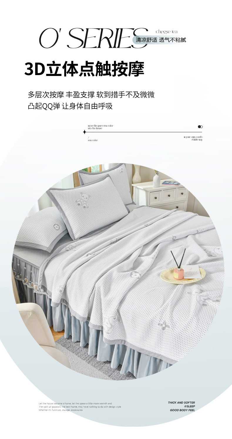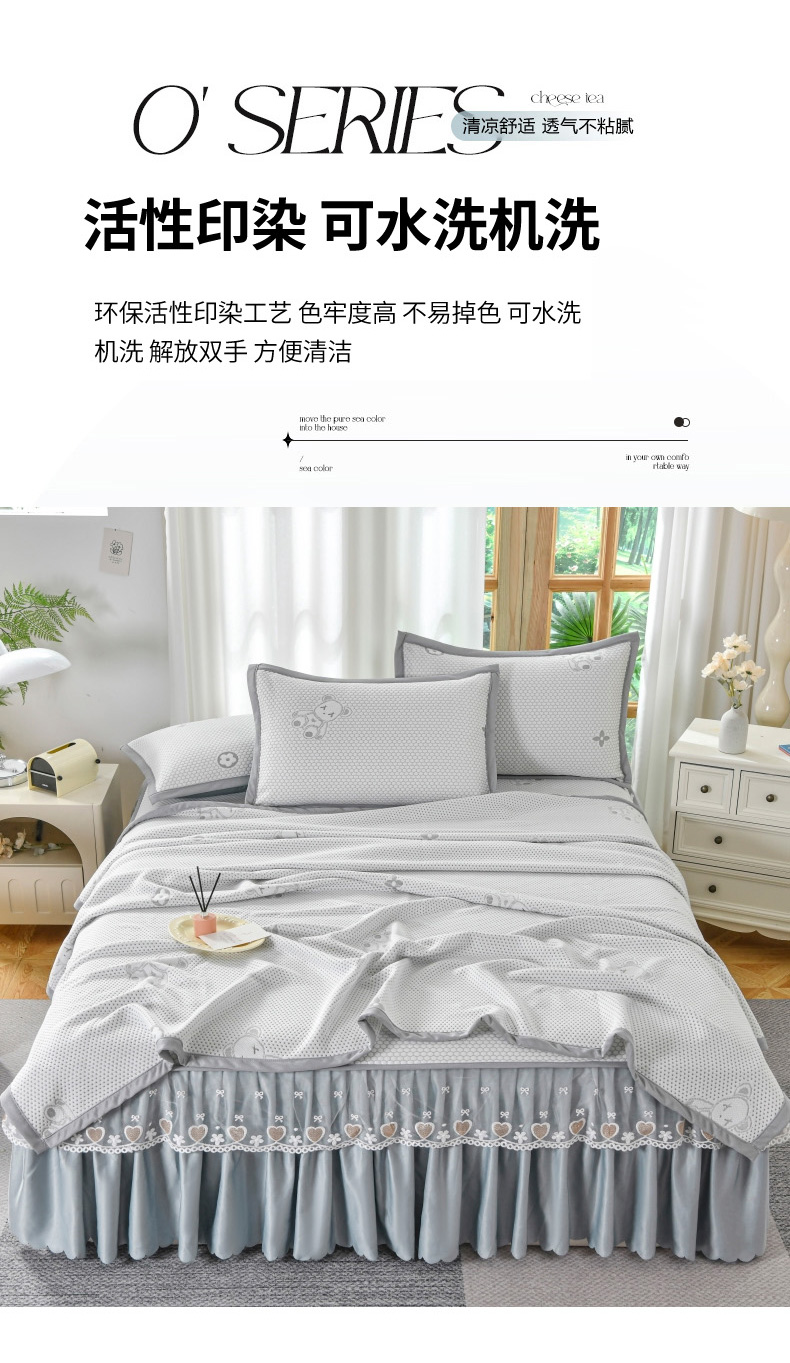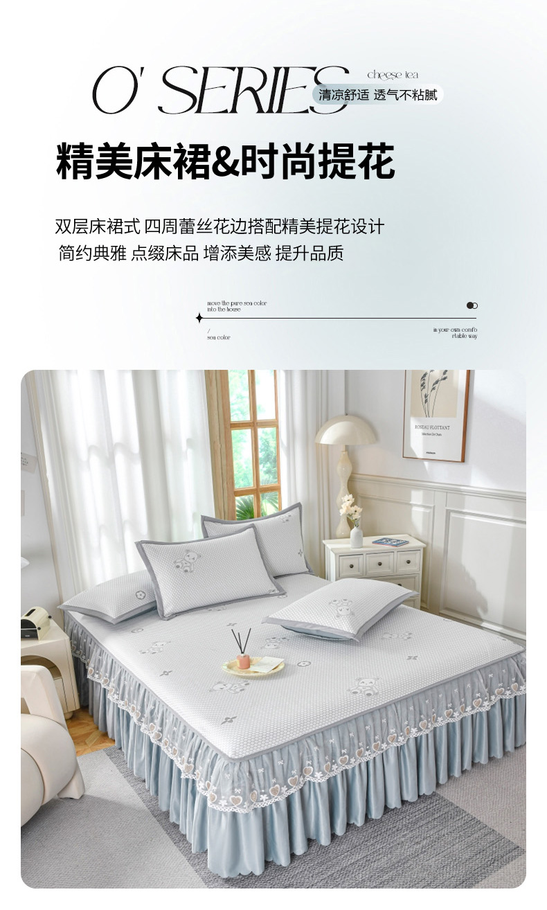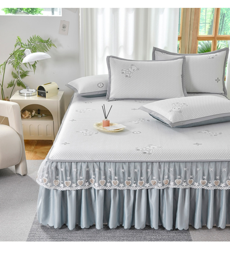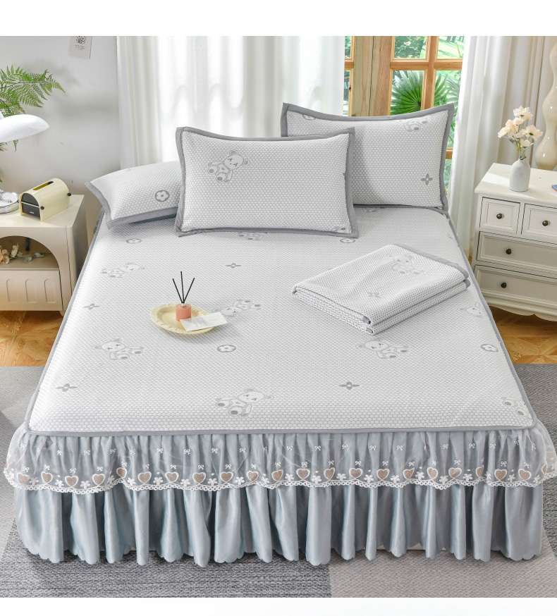 当前位置: 91家纺网 > 商品网购 > 床上用品 > 凉席 > 其他凉席 > 品乐家纺 2025新款床裙款提花冰豆豆套件凉席席子 灰色
