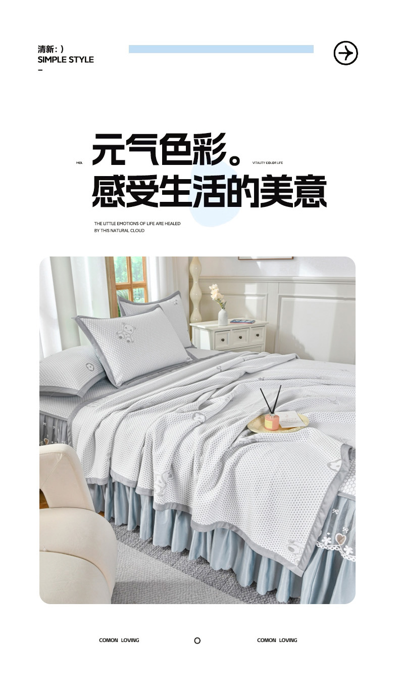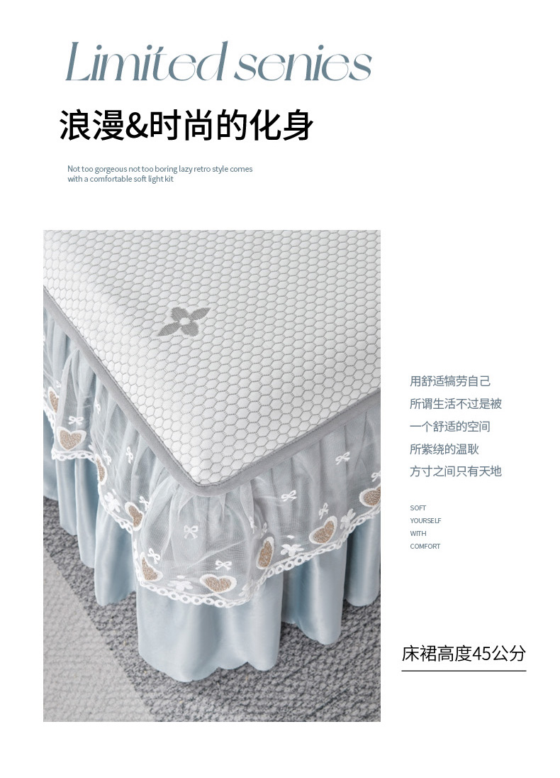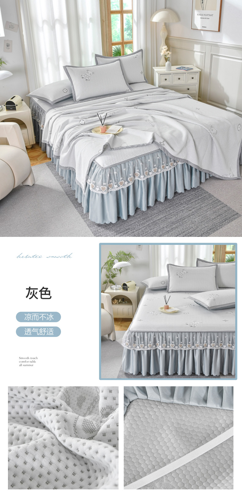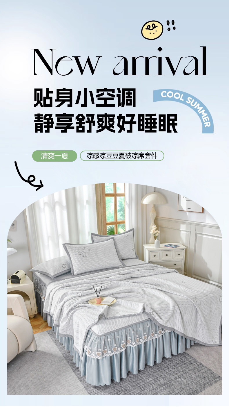 当前位置: 91家纺网 > 商品网购 > 床上用品 > 凉席 > 其他凉席 > 品乐家纺 2025新款床裙款提花冰豆豆套件凉席席子 灰色