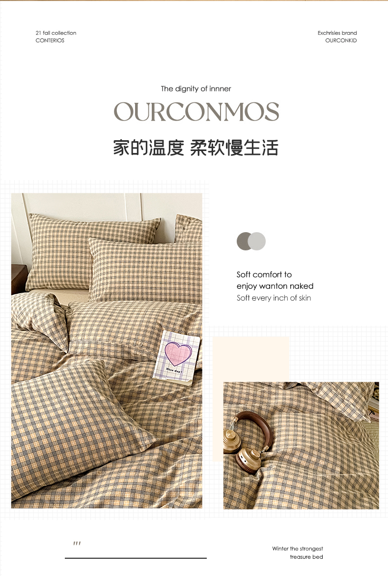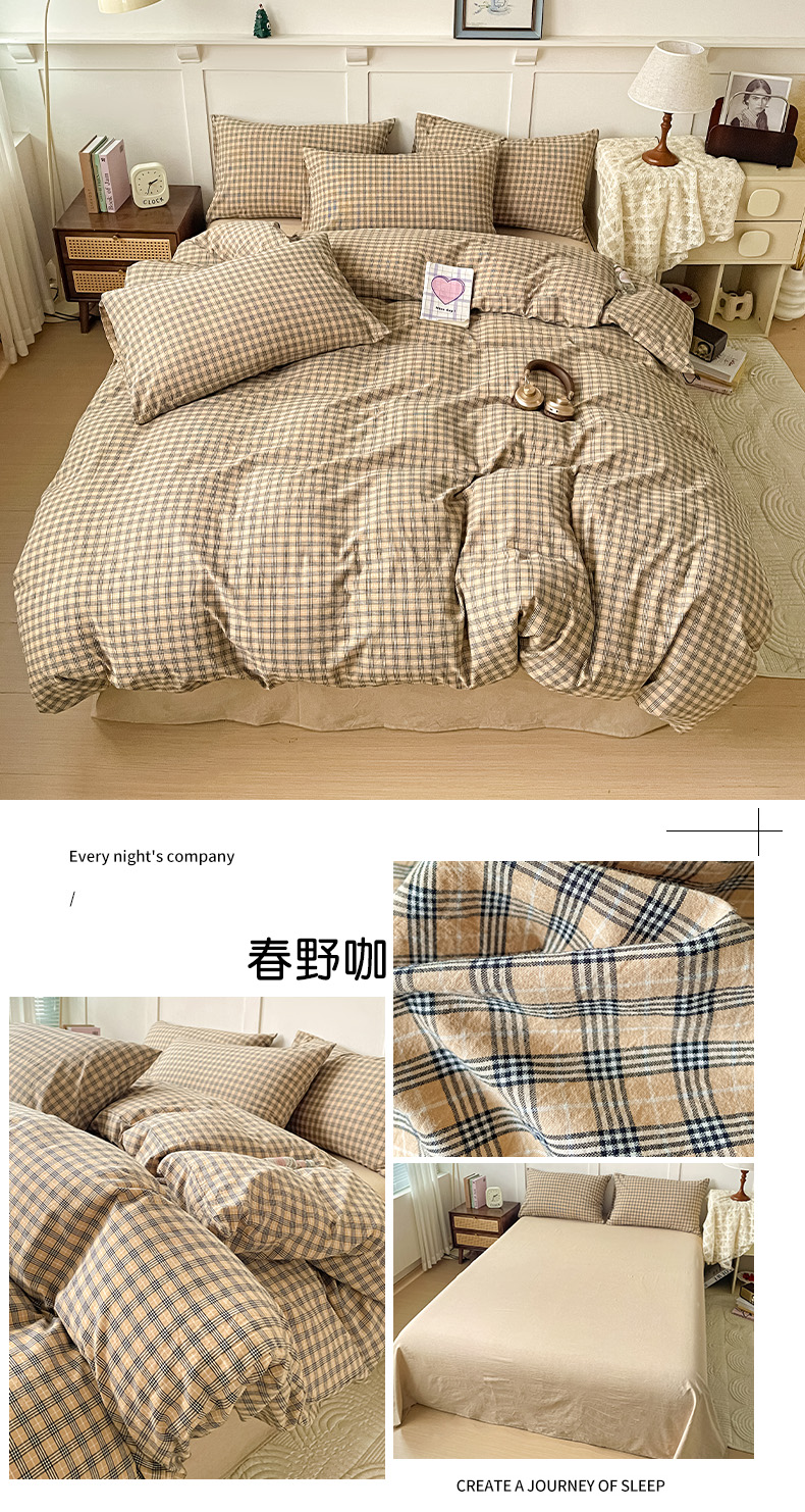 当前位置: 91家纺网 > 商品网购 > 床品套件 > 四件套 > 水洗棉四件套 > 大柏树 2025新款全棉水洗棉套件-床笠四件套 春野咖