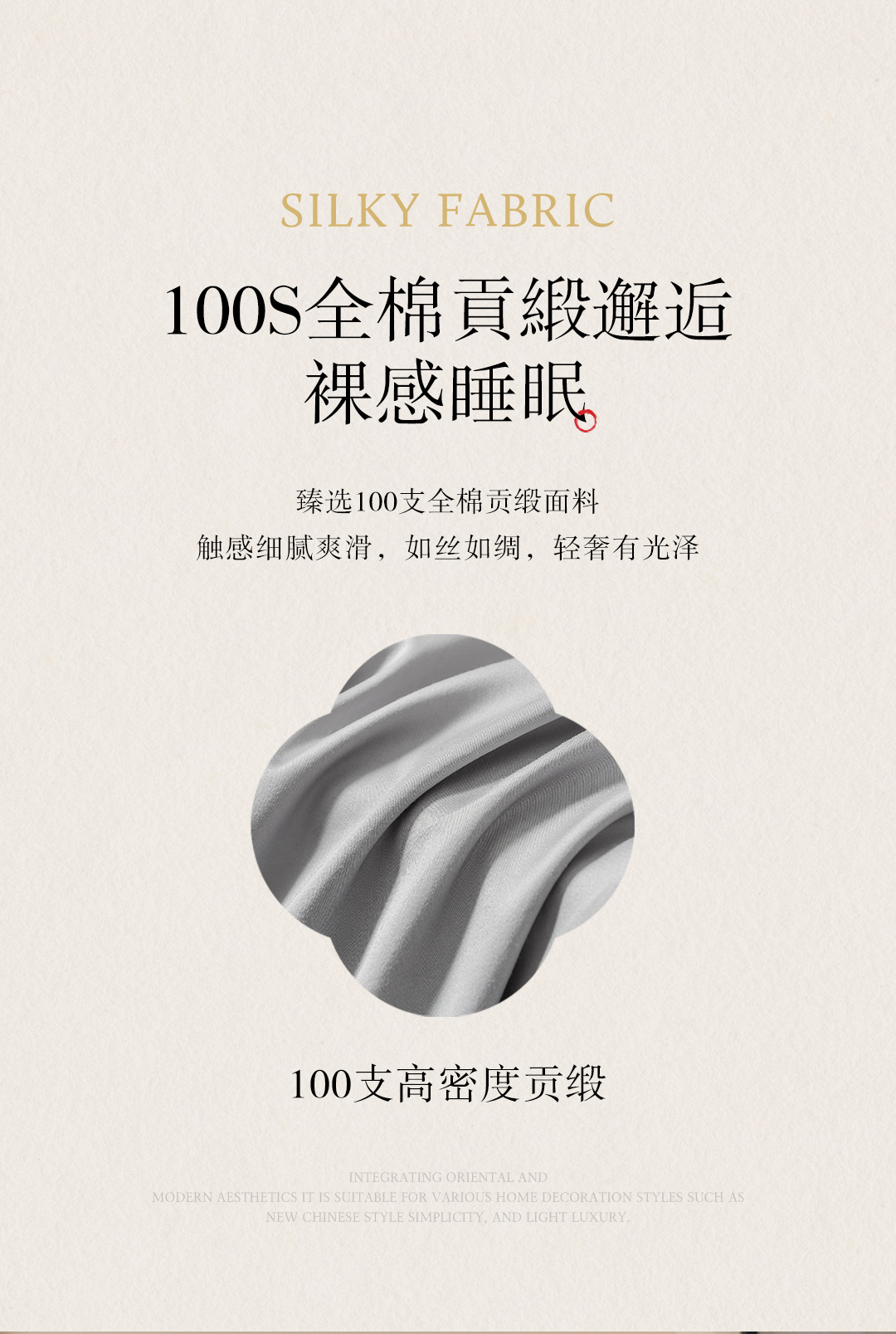商品名称:(总)2025佑金甜新款100支全棉贡缎中国风新疆长绒棉纯色双拼四件套(礼盒塑封包装)