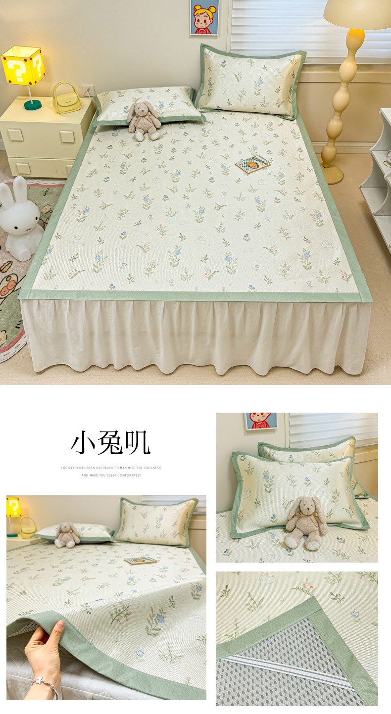 商品名称:(总)慕尚家纺 2025新款600D小清新凉感冰丝凉席三件套