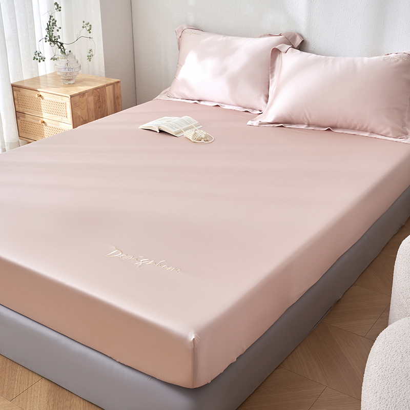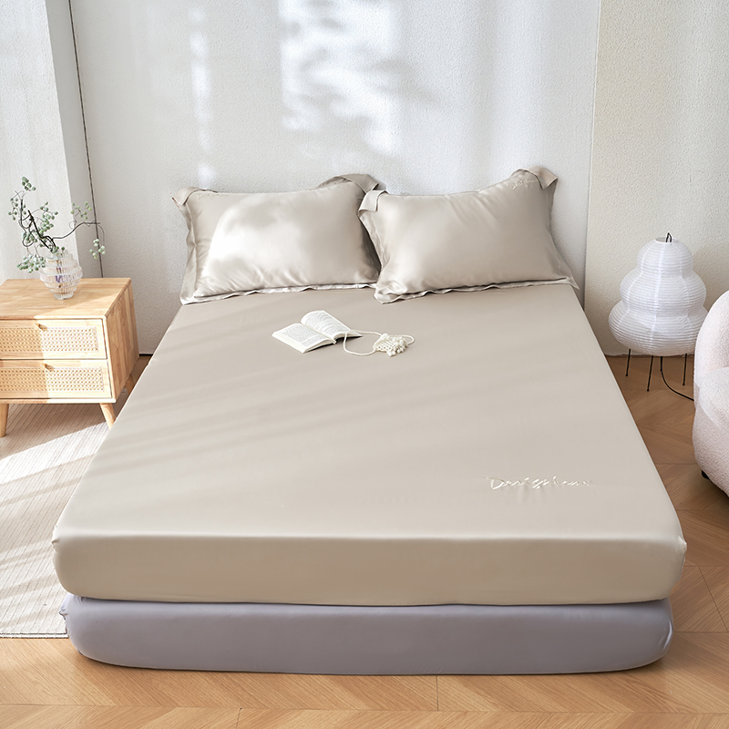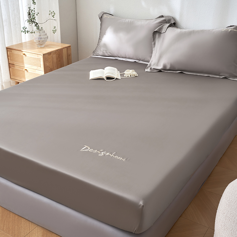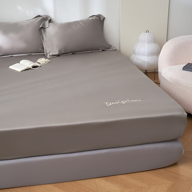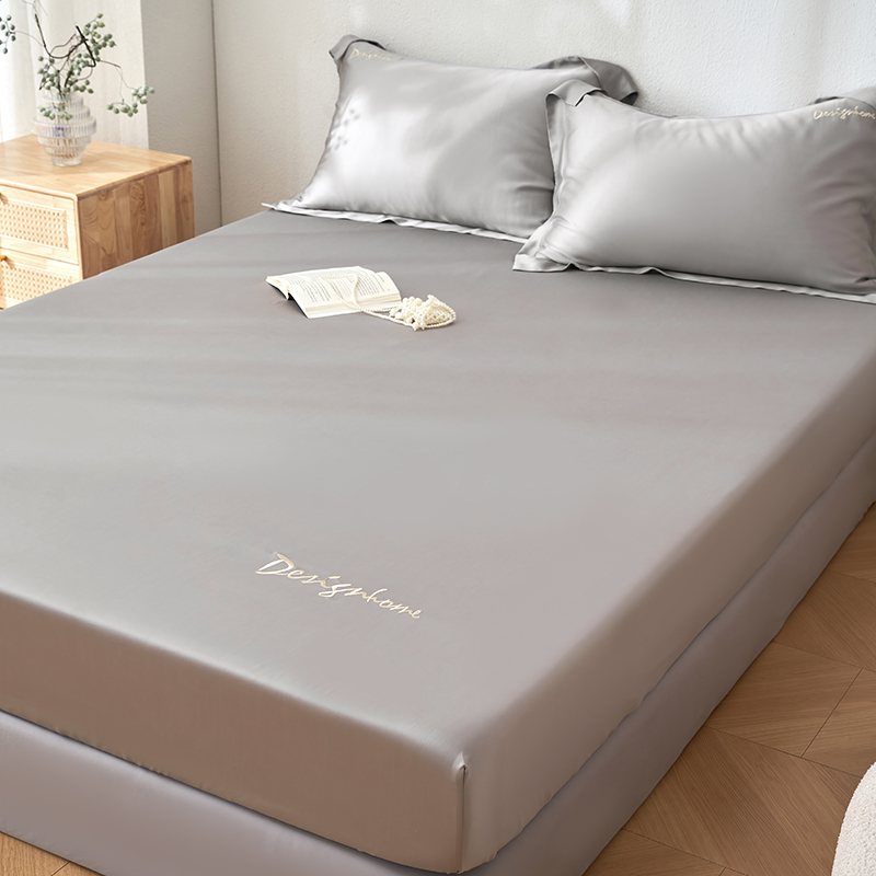 黛舒家居 2025新款60S兰精天丝纯色简绣单床笠 素灰