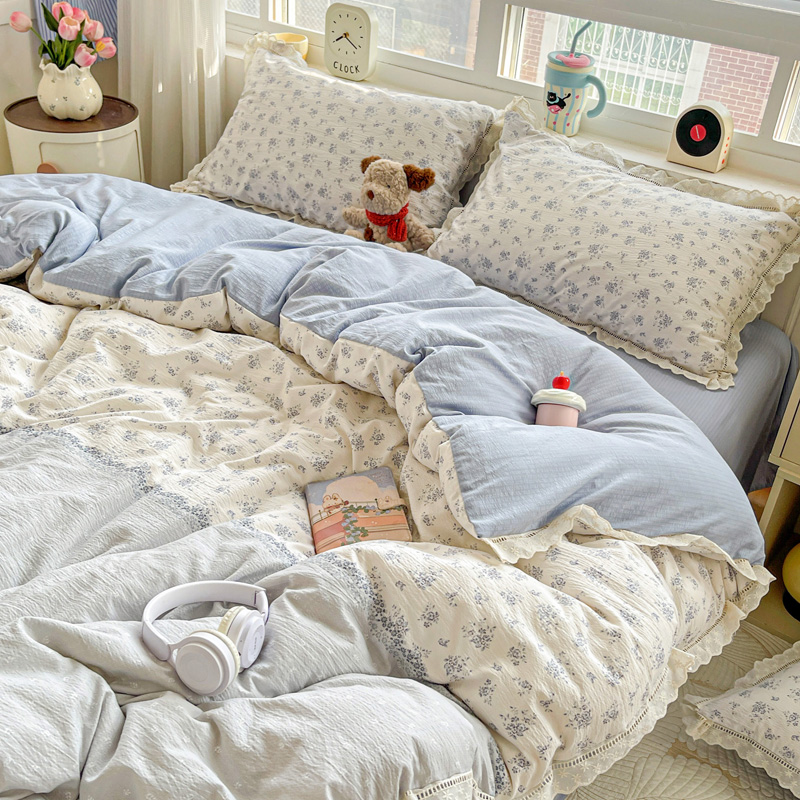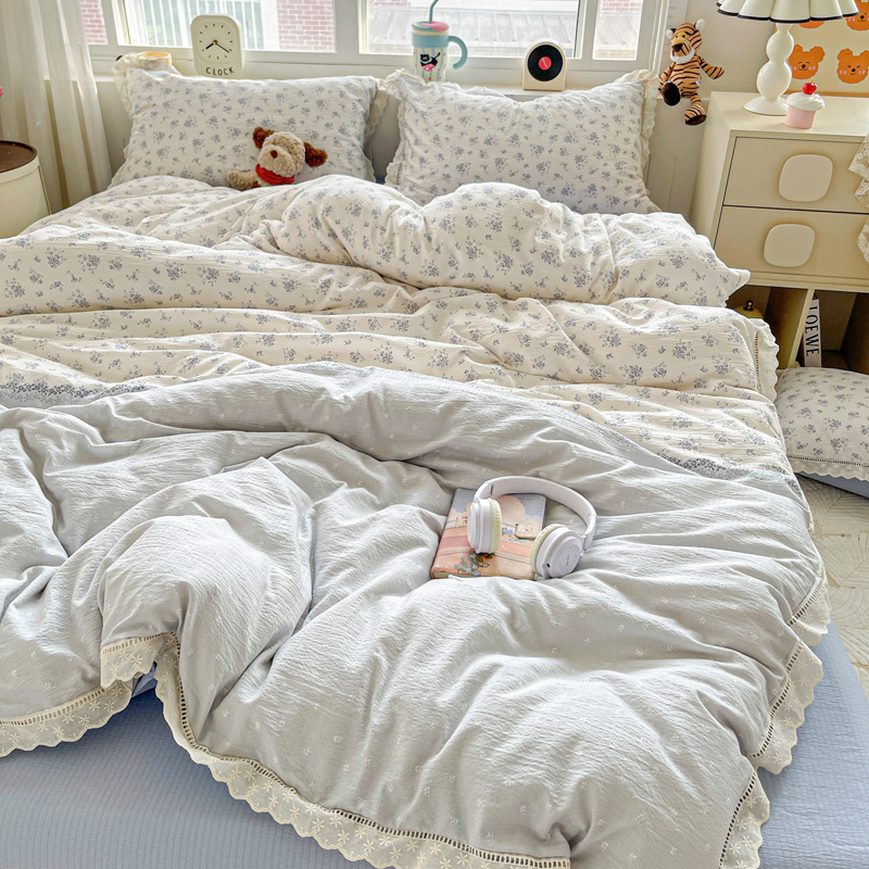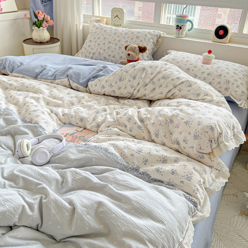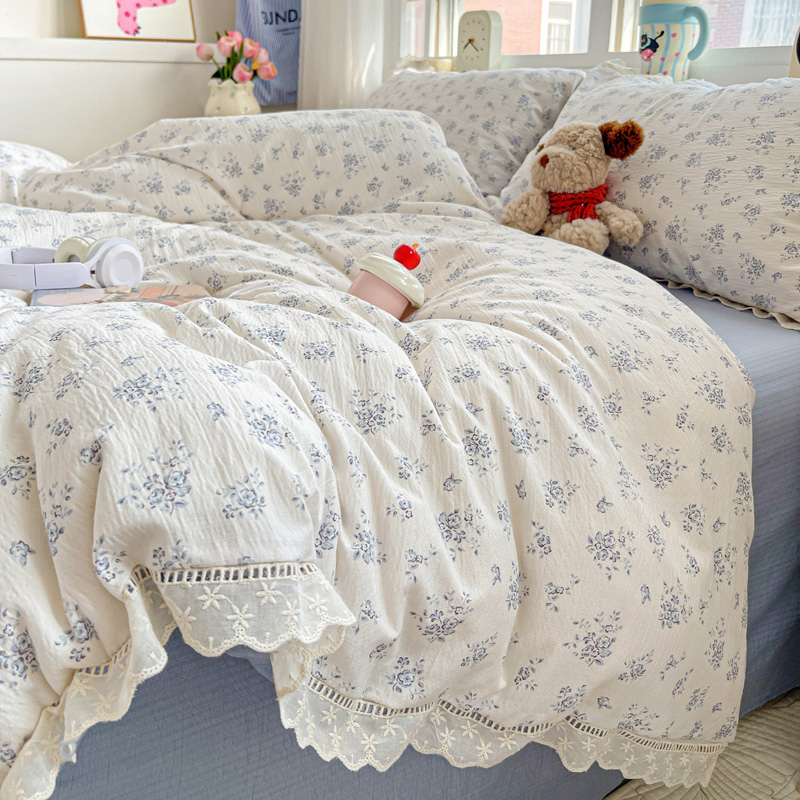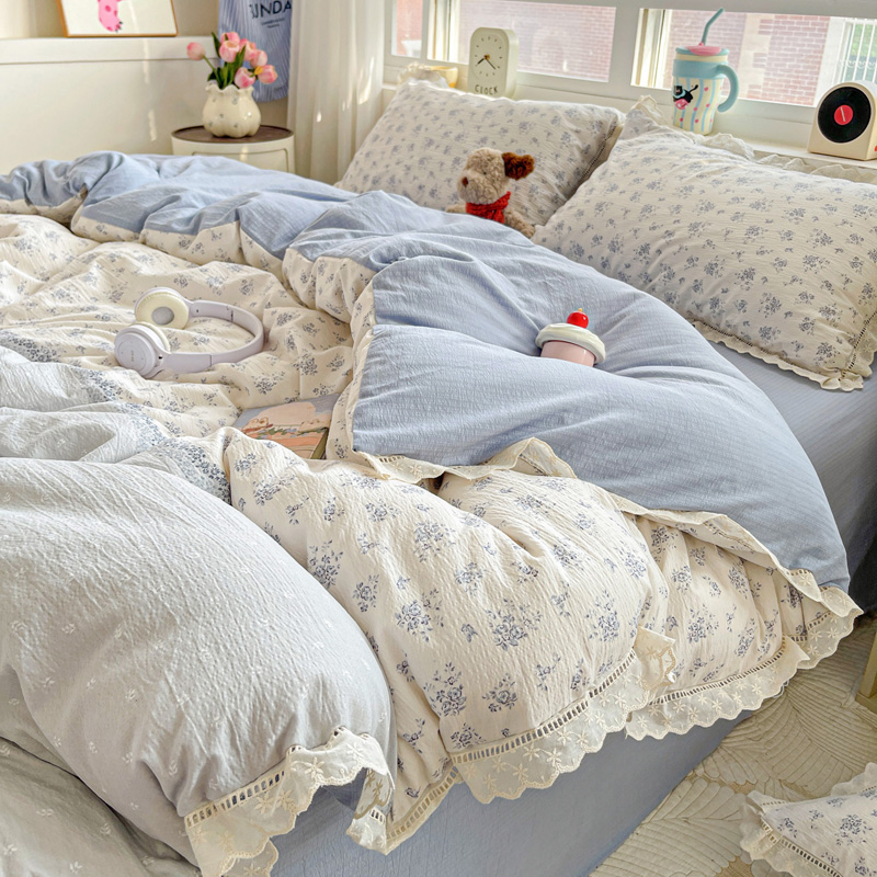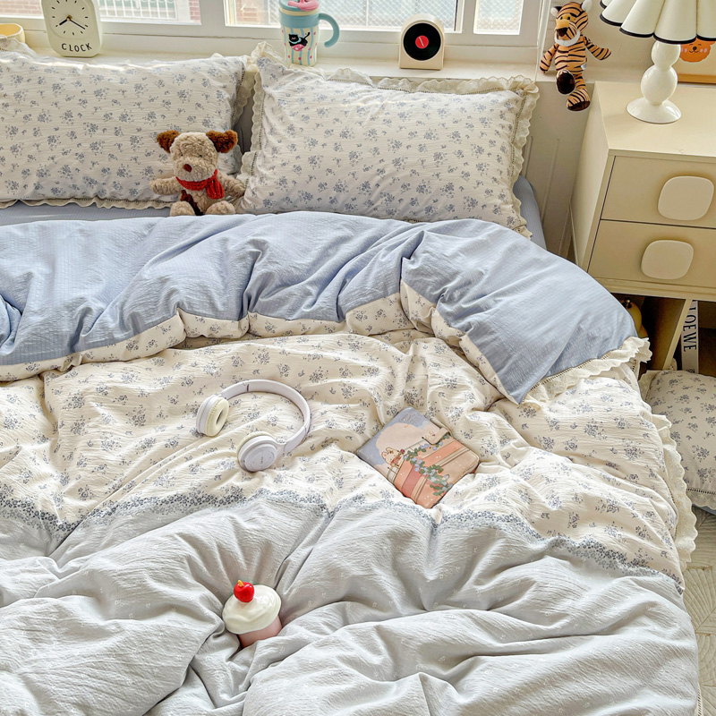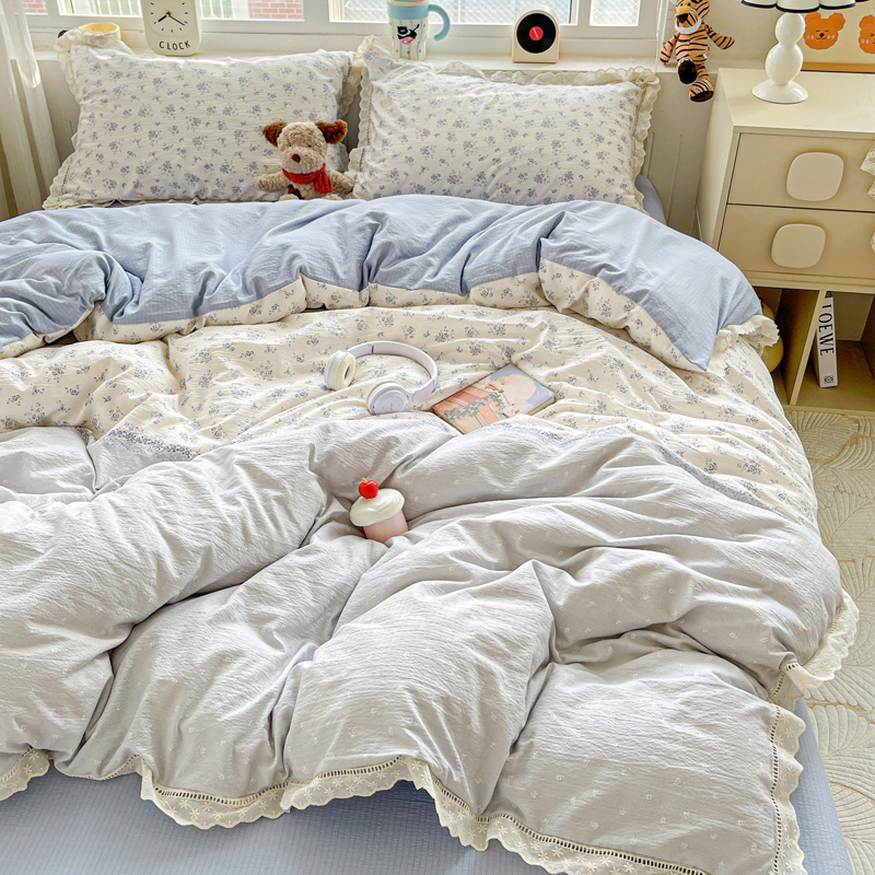 仟网汇 2025新款云感皱皱双层纱全棉花边四件套 兰黛