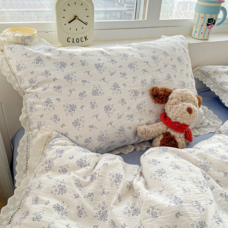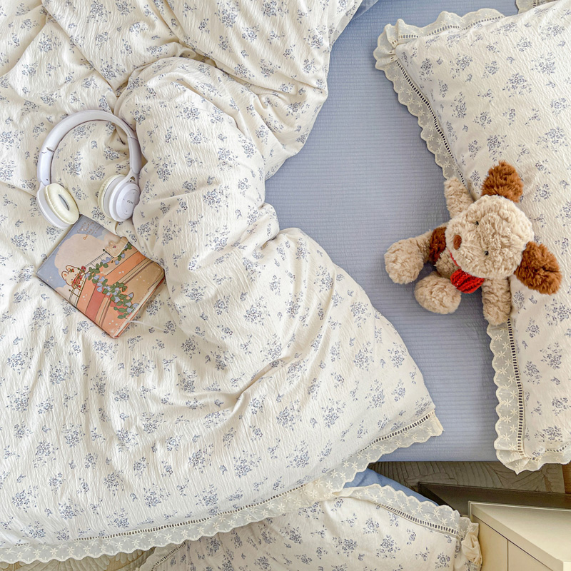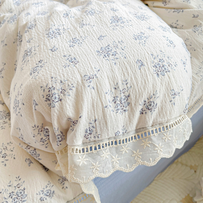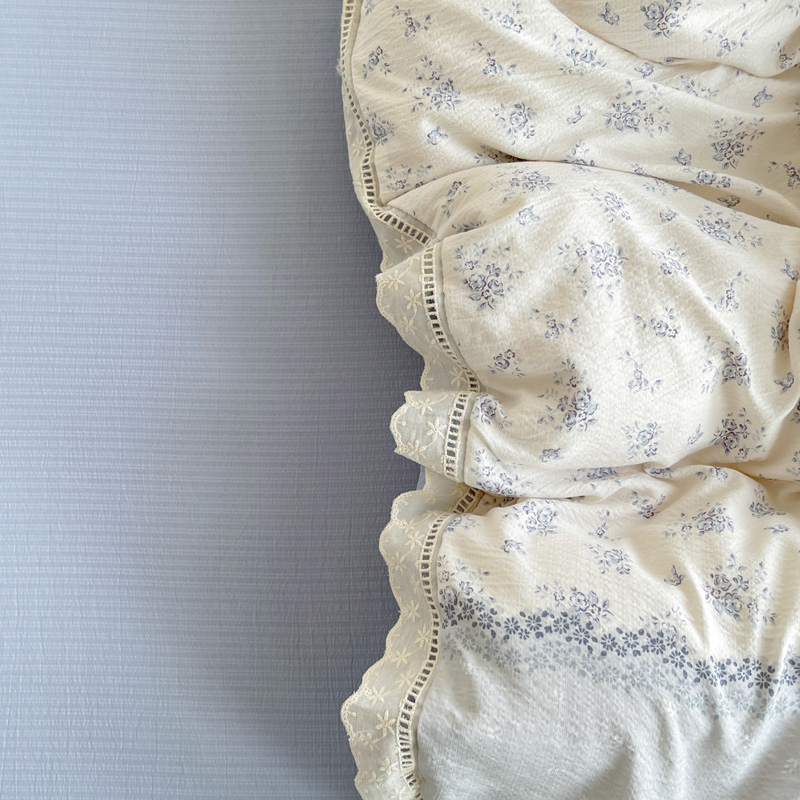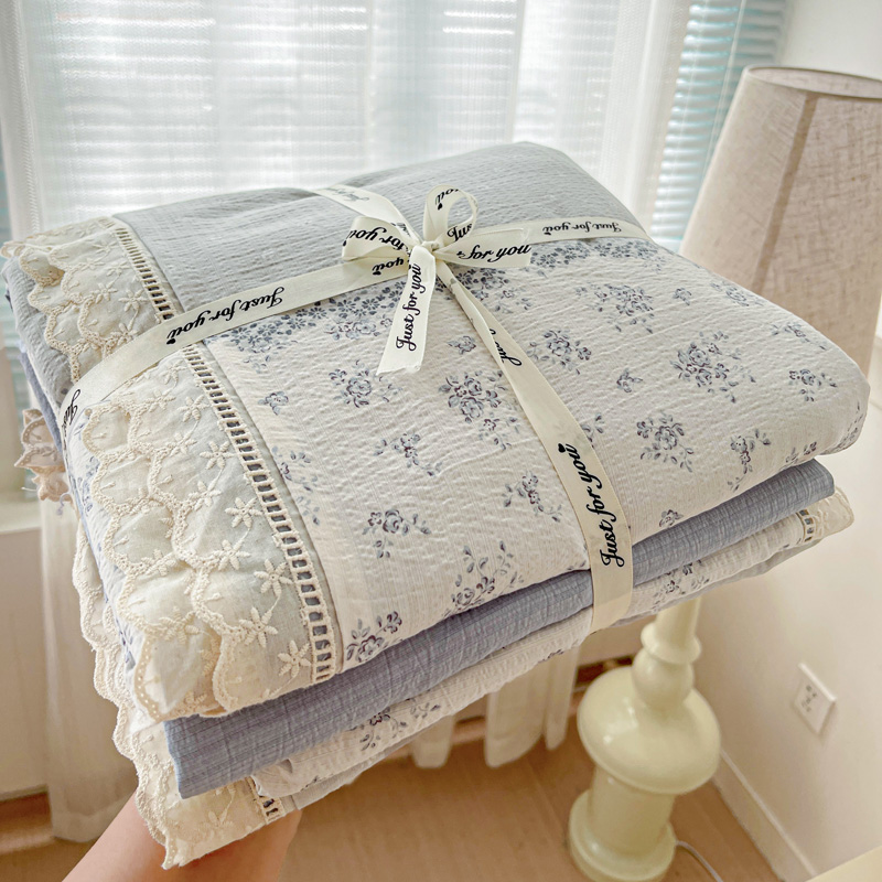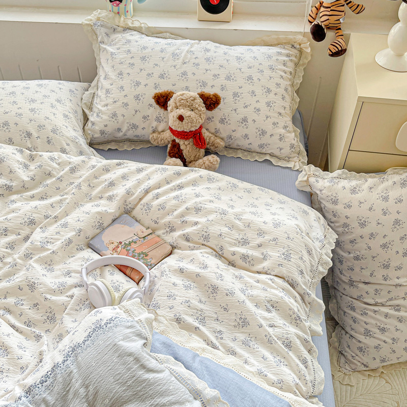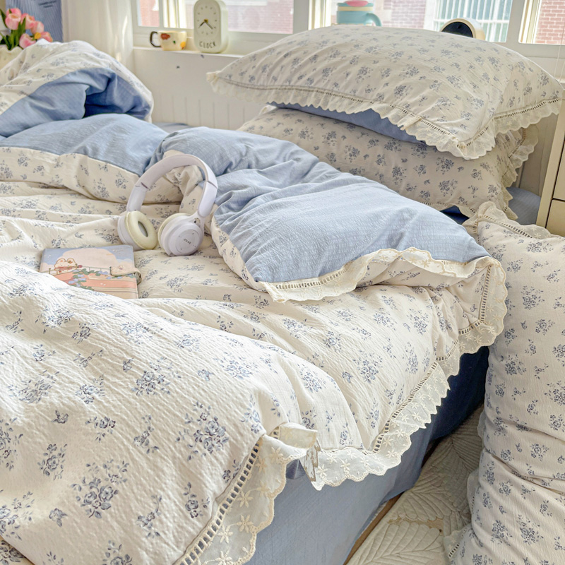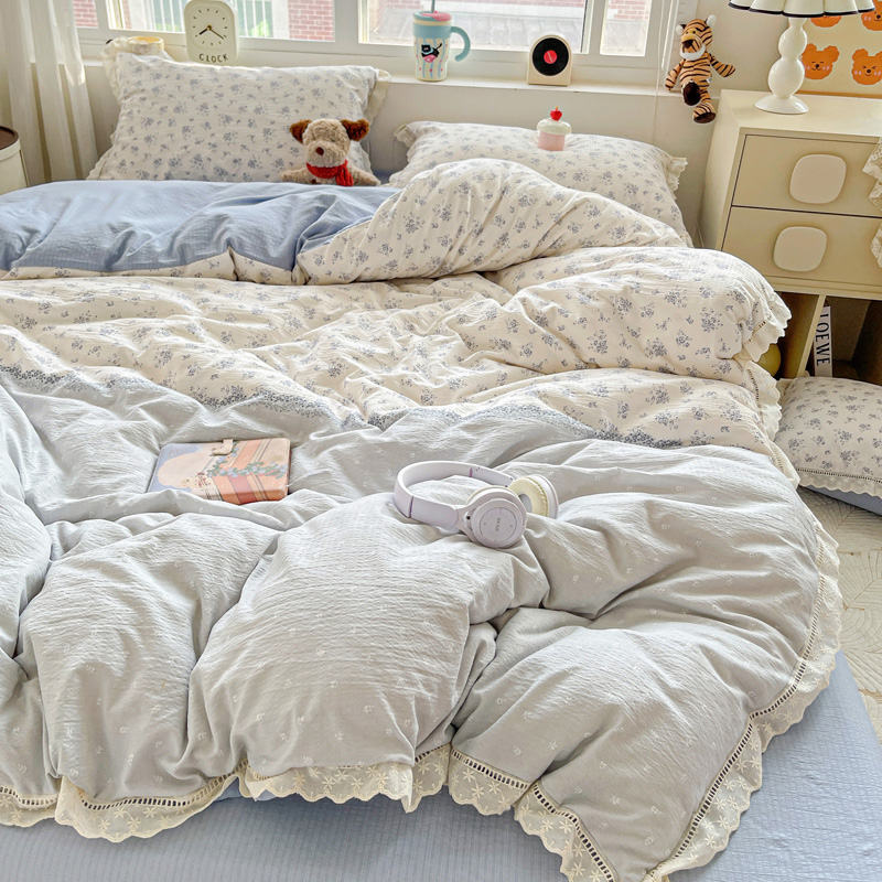 仟网汇 2025新款云感皱皱双层纱全棉花边四件套 兰黛