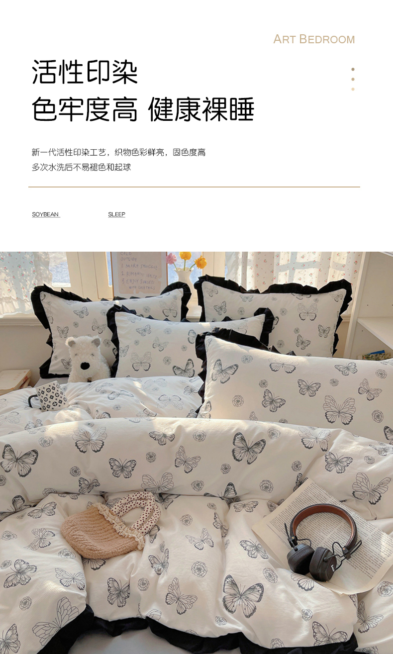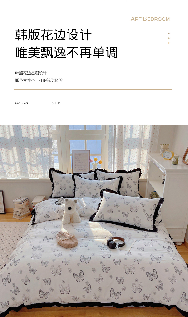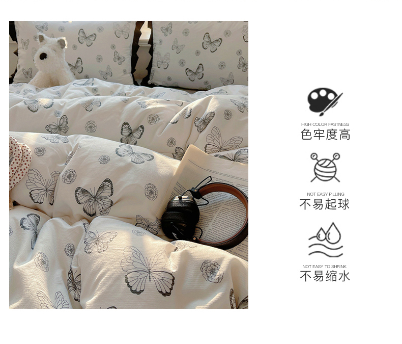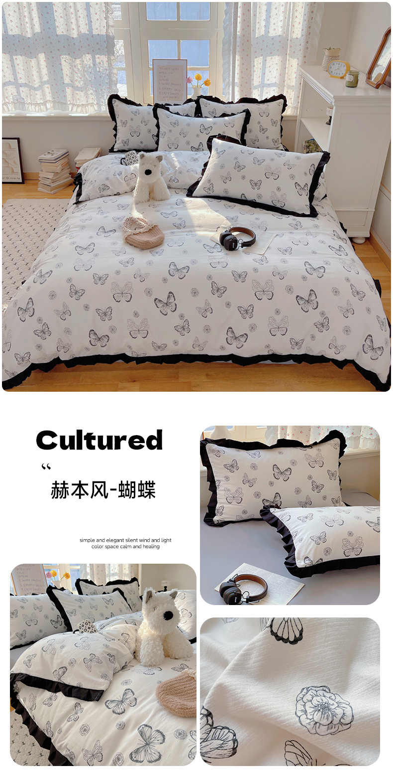 商品名称:红嘴企鹅 2025新款双层纱水洗棉赫本风四件套 赫本风-蝴蝶