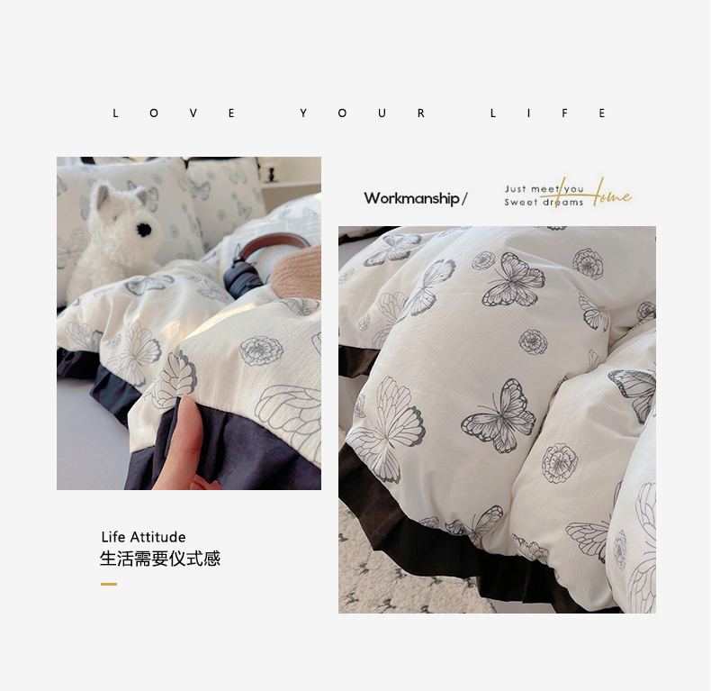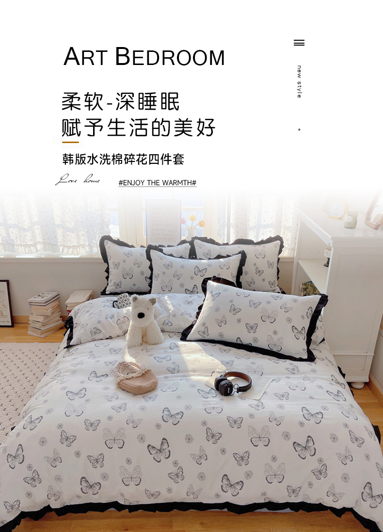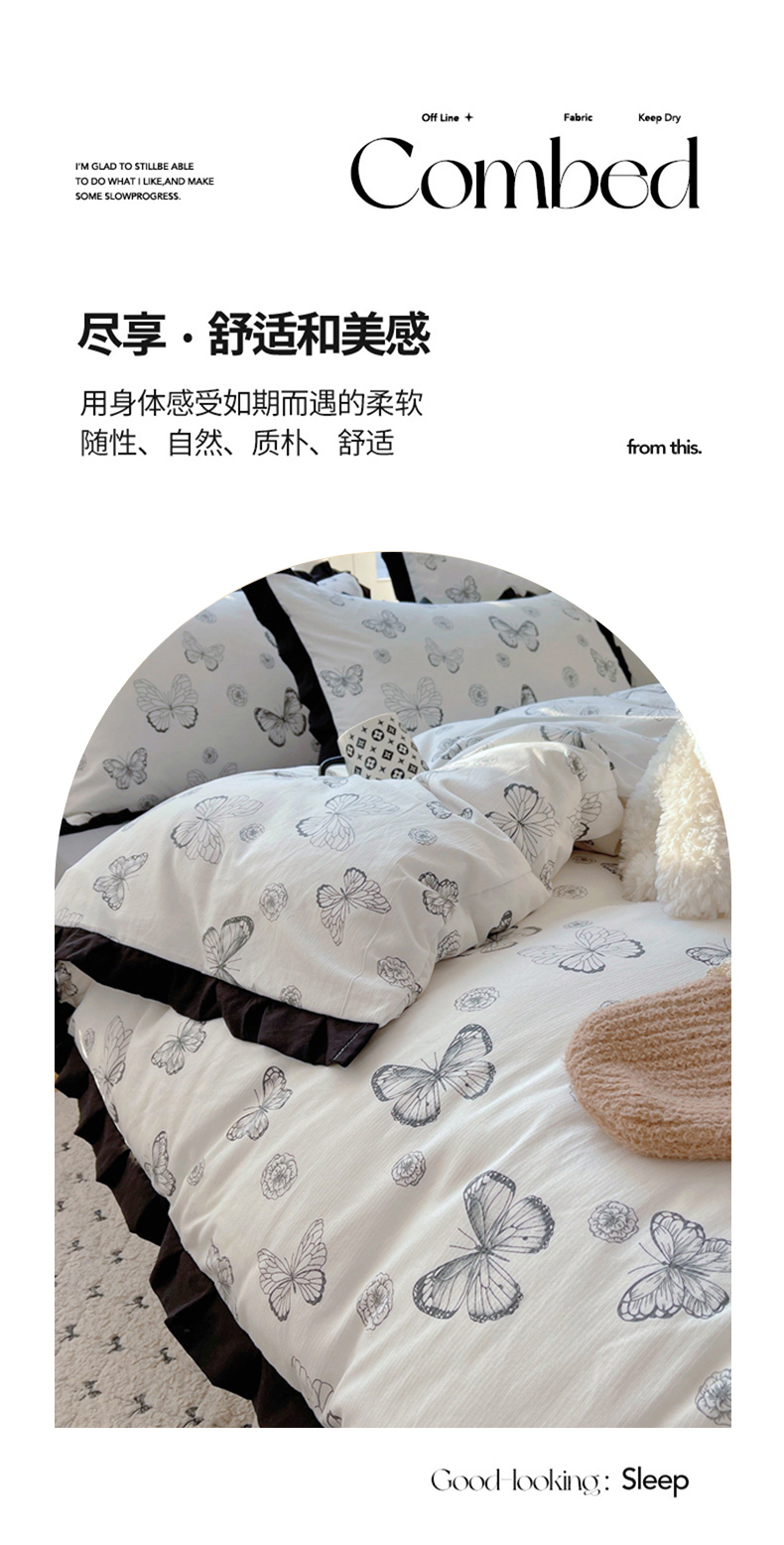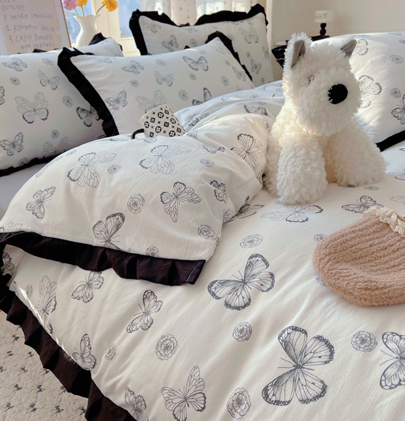 商品名称:红嘴企鹅 2025新款双层纱水洗棉赫本风四件套 赫本风-蝴蝶