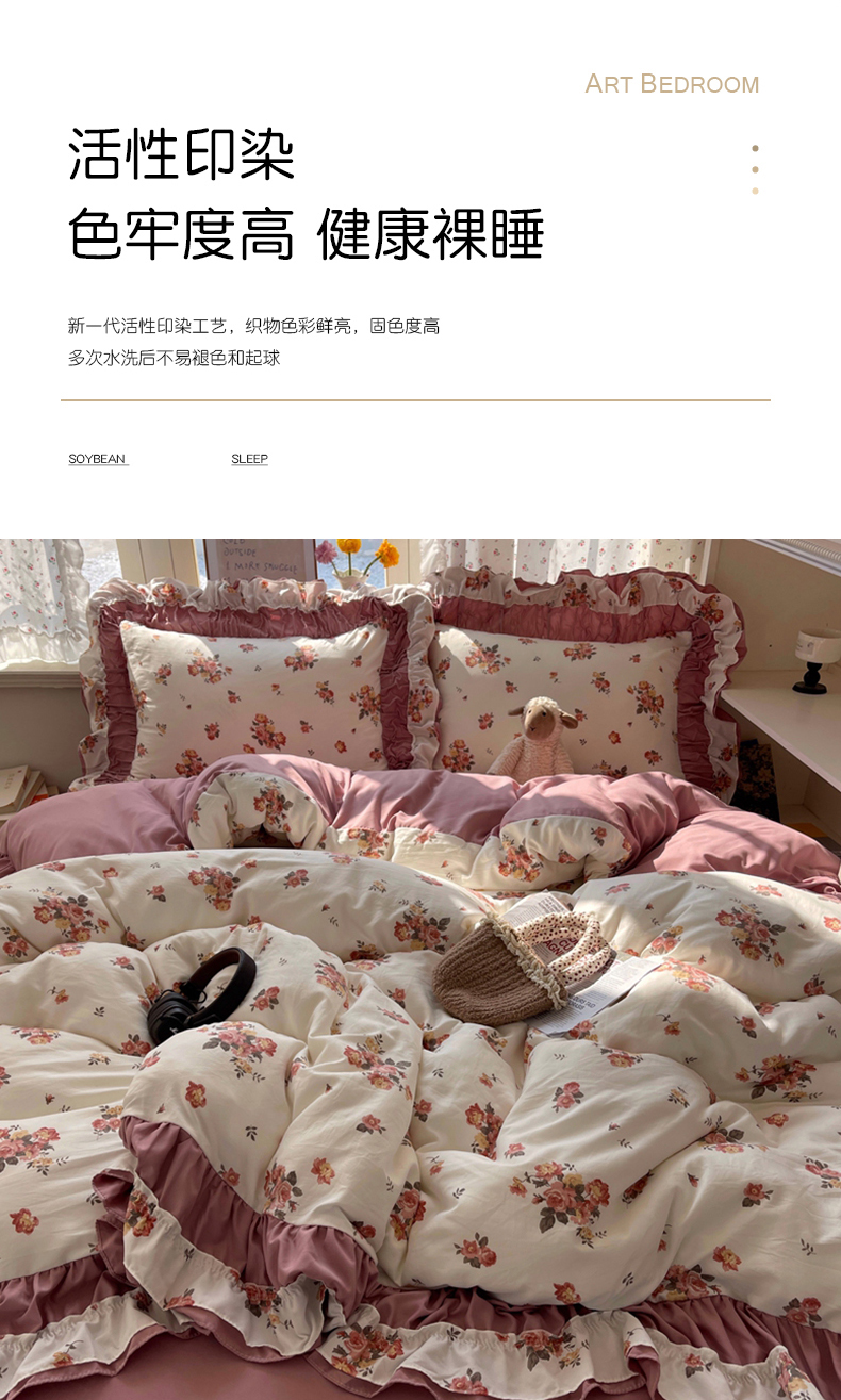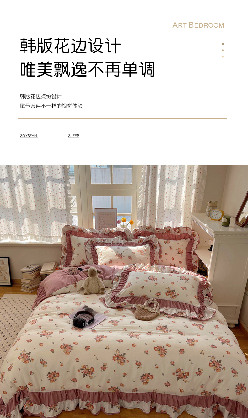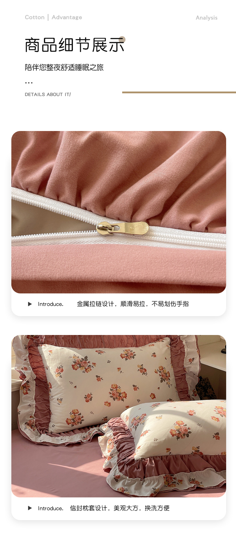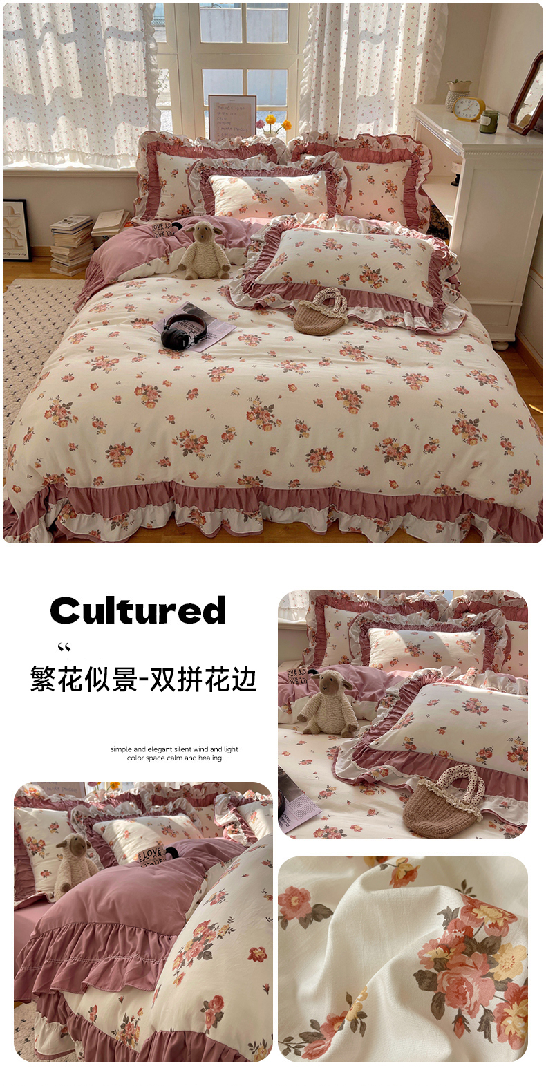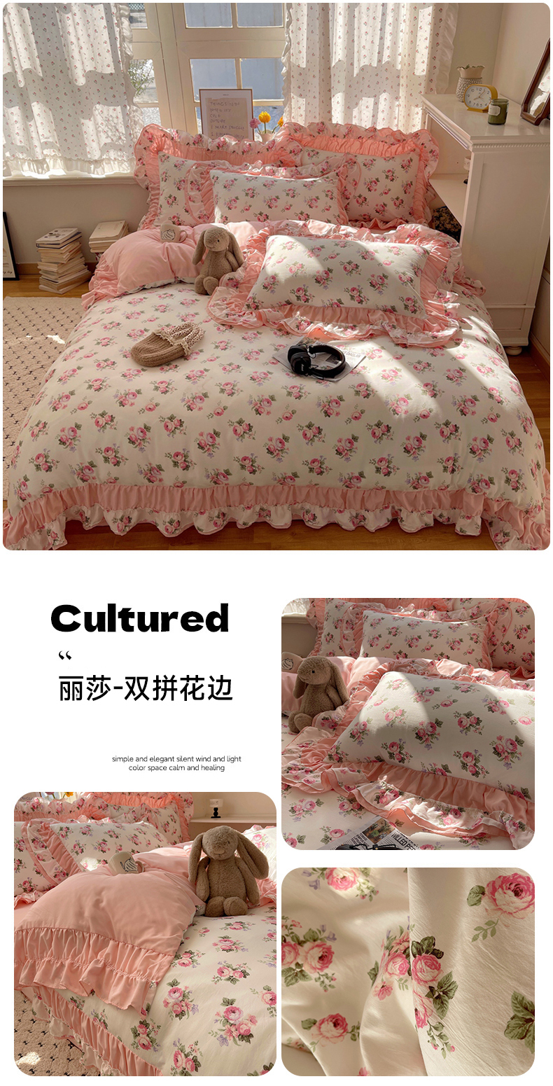 商品名称:红嘴企鹅 2025新款水洗棉公主风韩版双花边四件套 丽莎-双拼花边