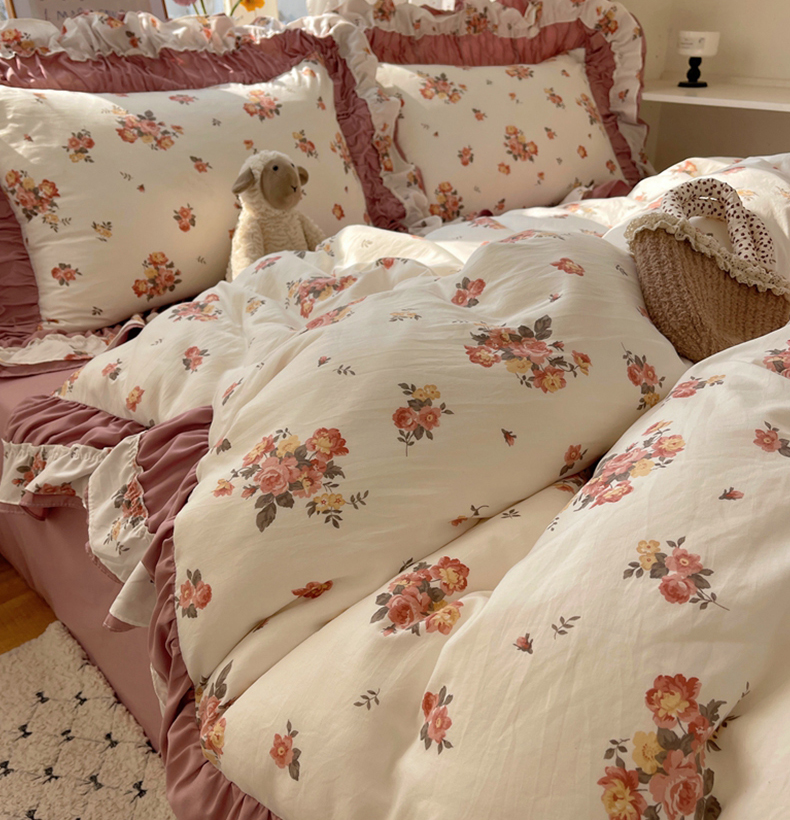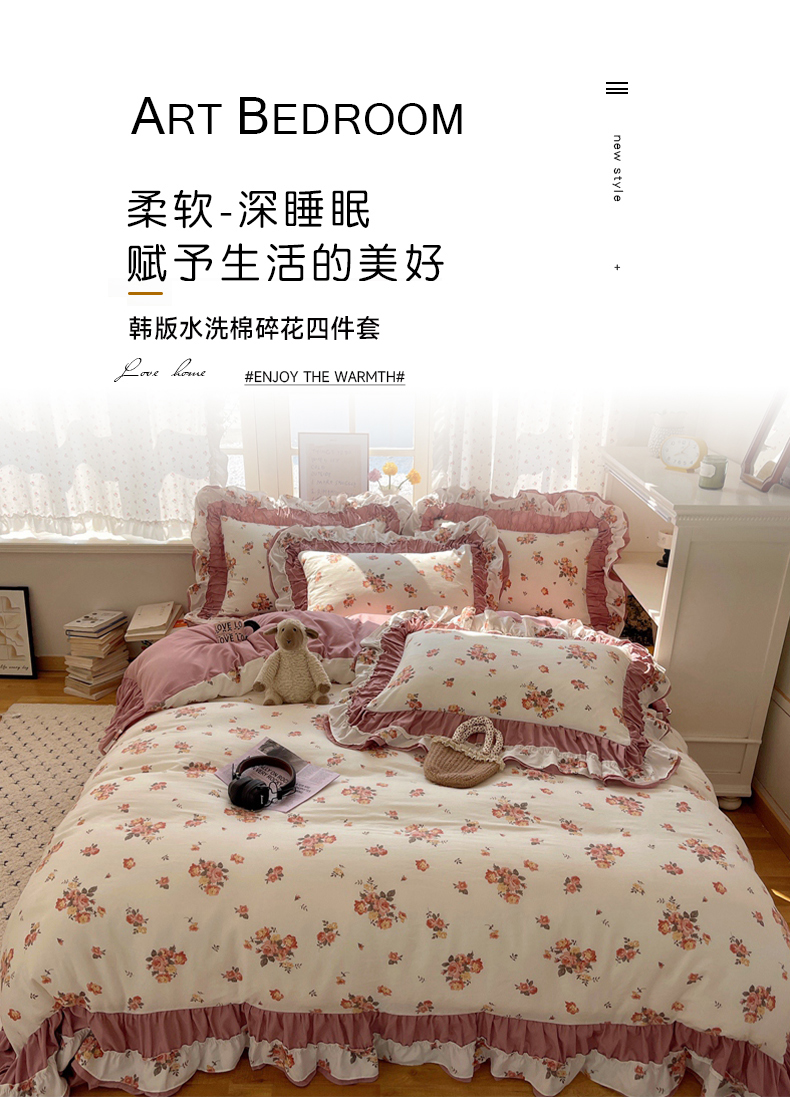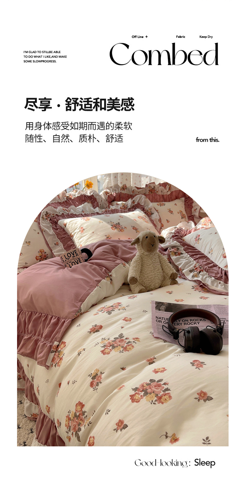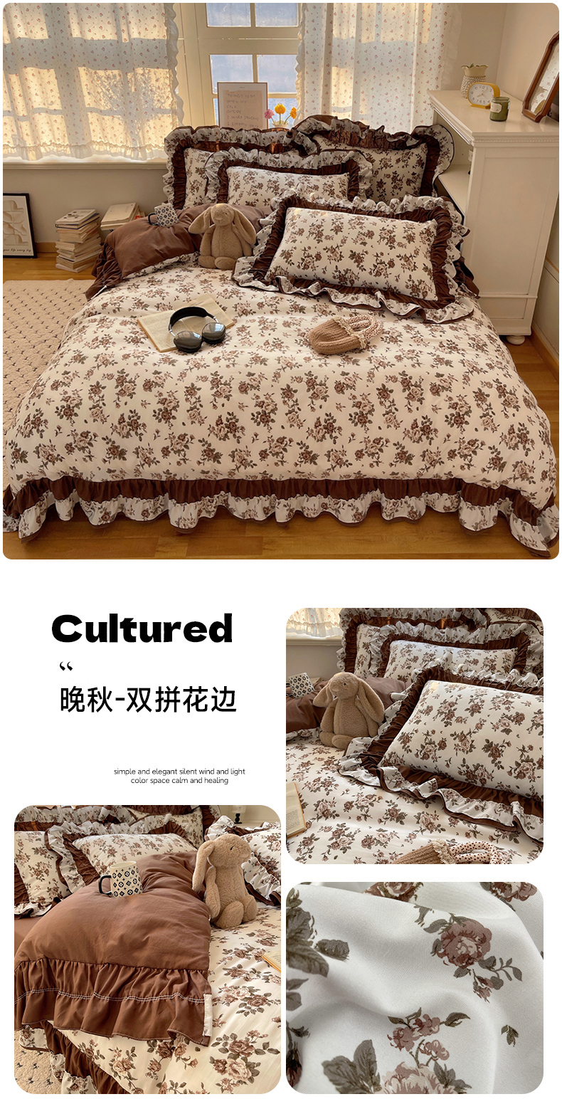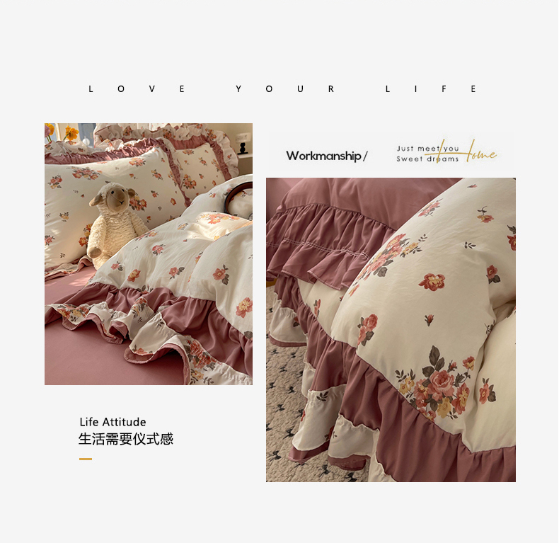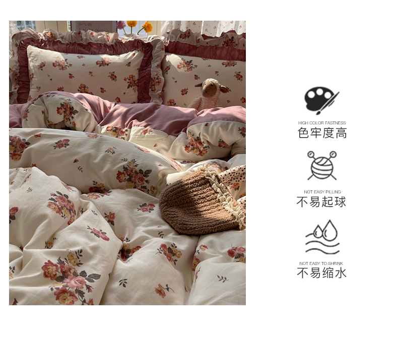 商品名称:红嘴企鹅 2025新款水洗棉公主风韩版双花边四件套 丽莎-双拼花边