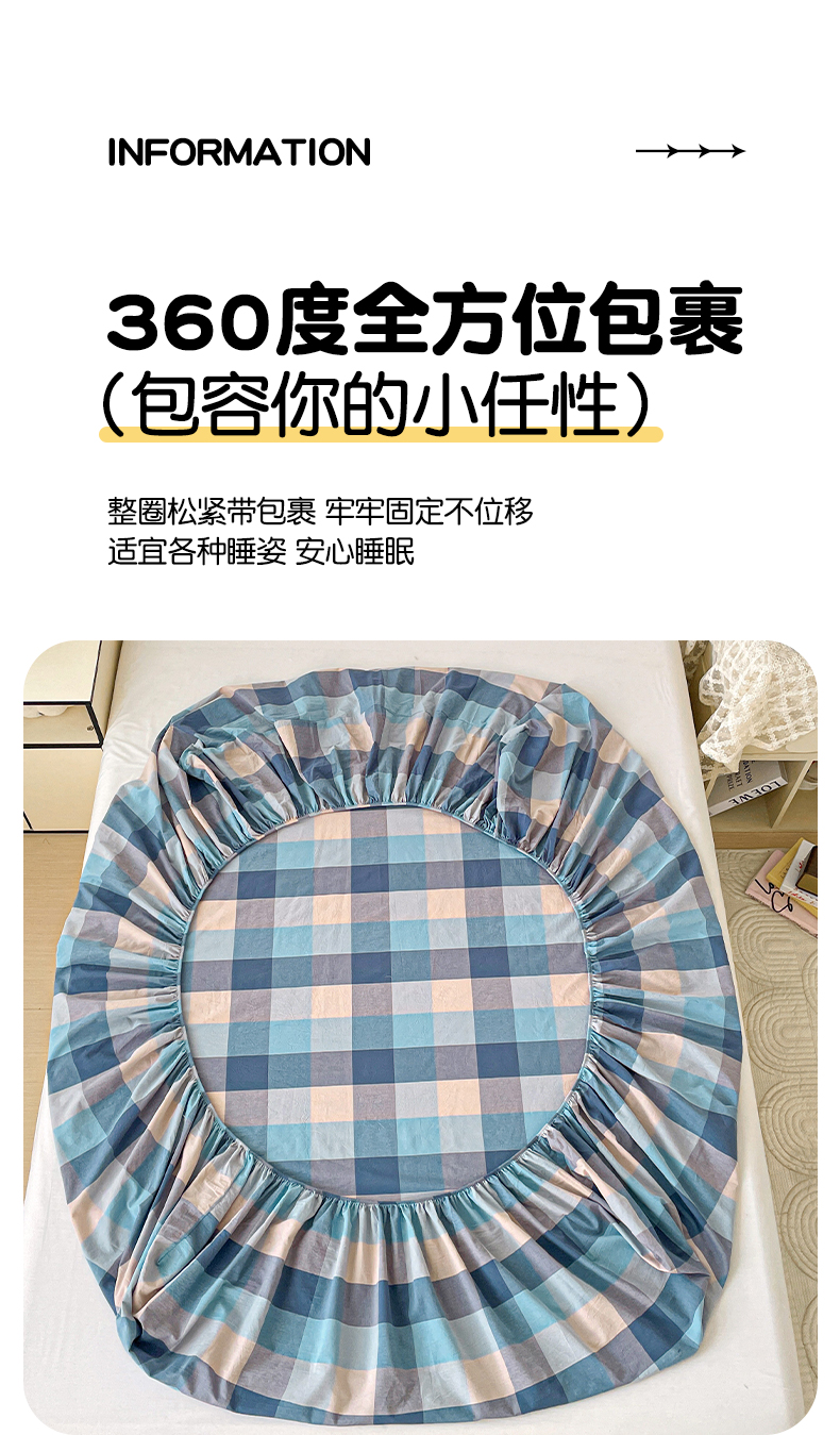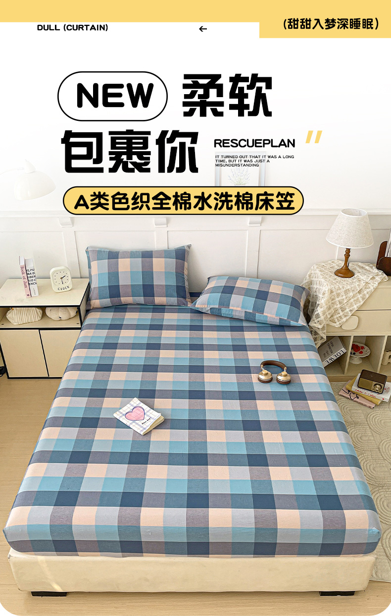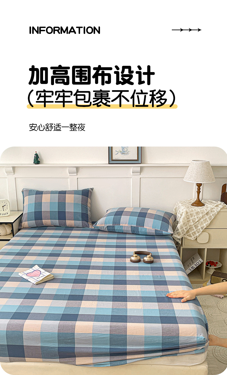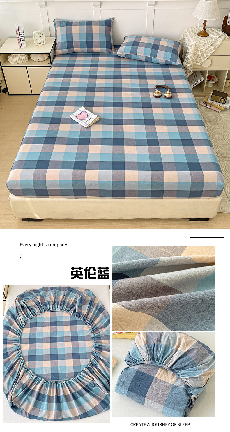 商品名称:2025新款全棉水洗棉套件-单床笠 英伦蓝