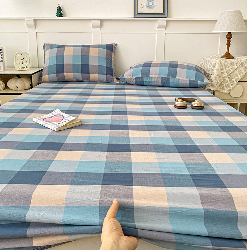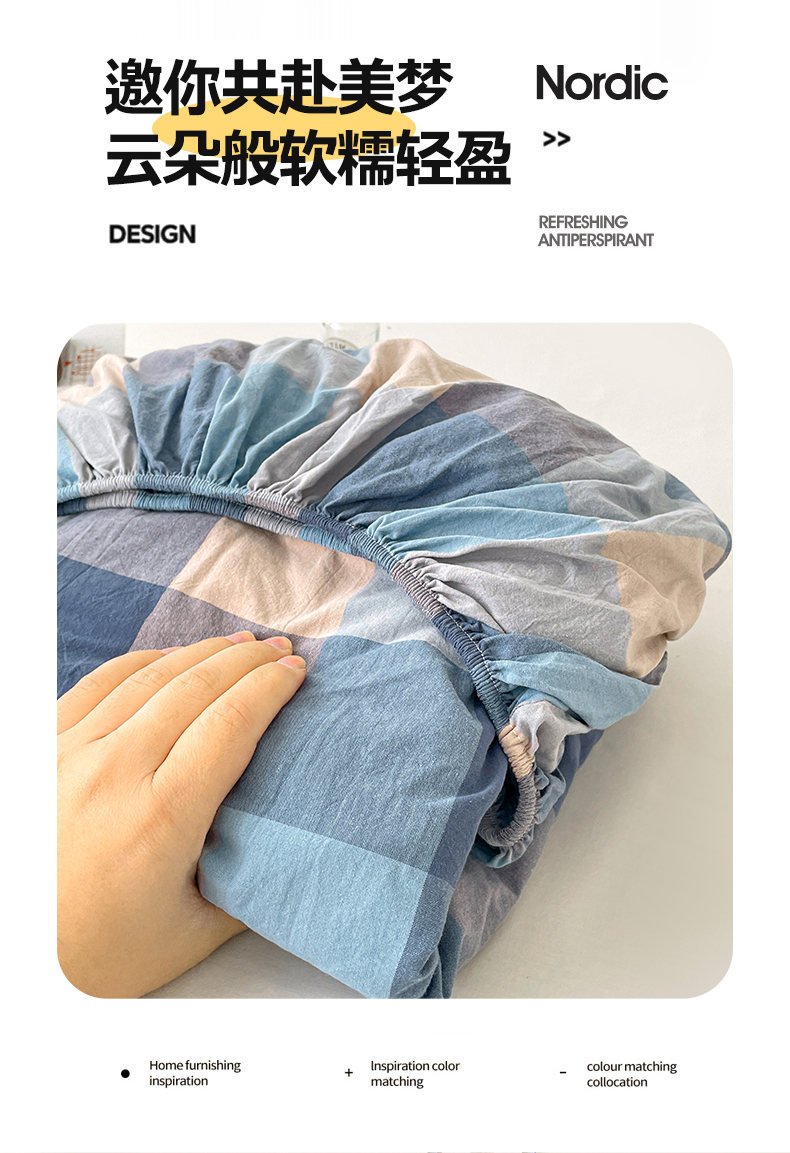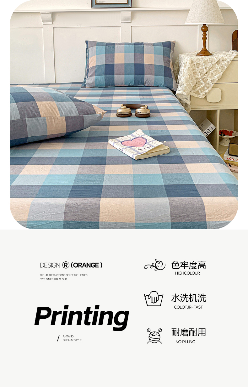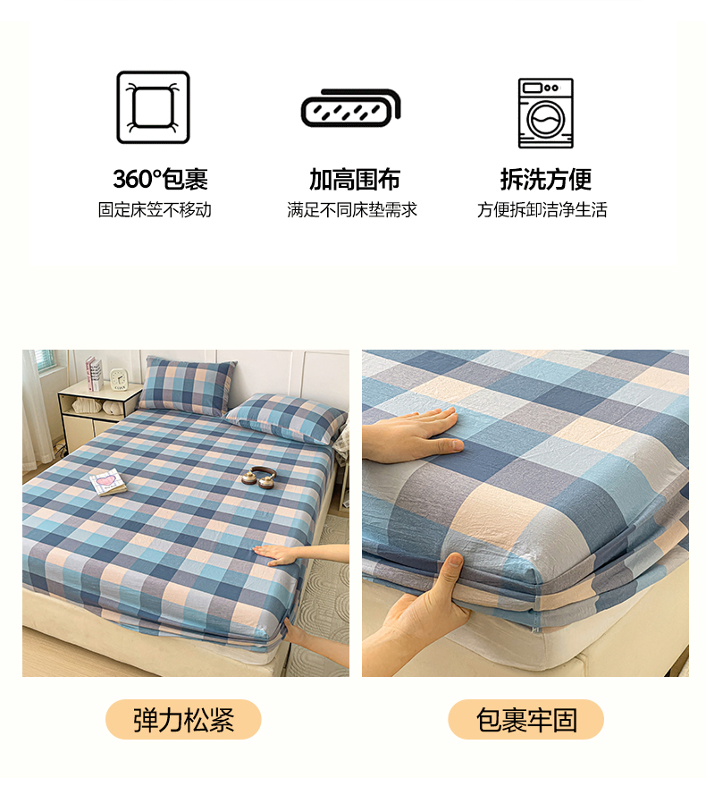 商品名称:2025新款全棉水洗棉套件-单床笠 英伦蓝