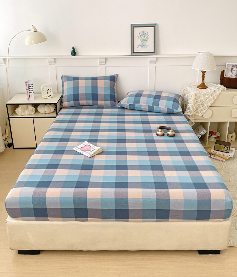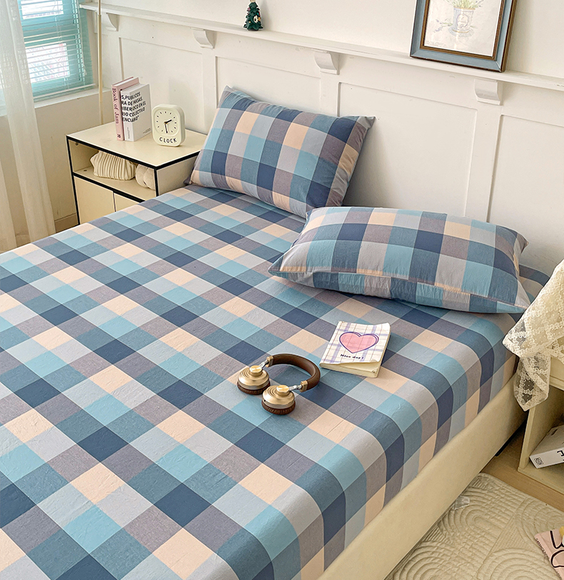 2025新款全棉水洗棉套件-单床笠 英伦蓝