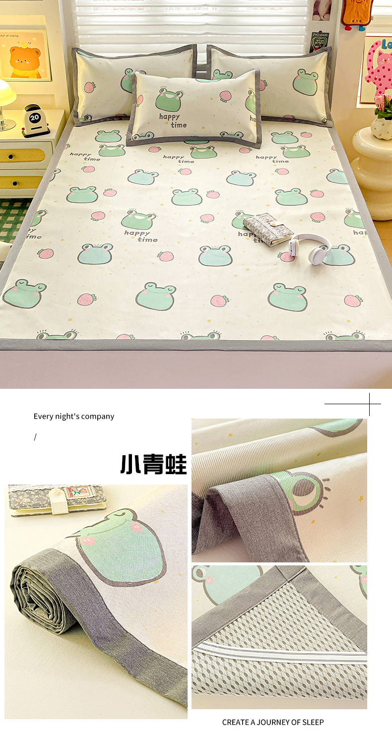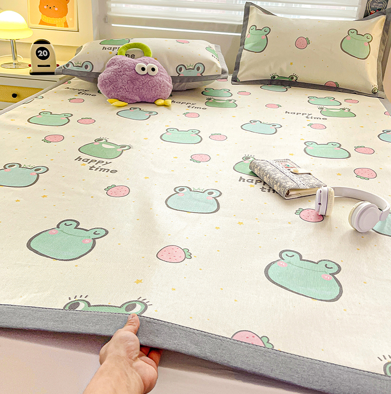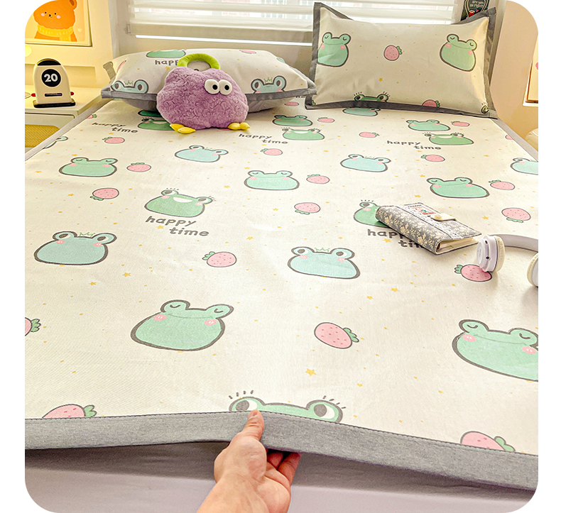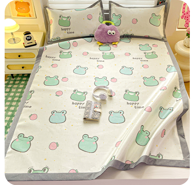商品名称:金盛纺 2025新款A类数码印花冰丝席-床席款 小青蛙