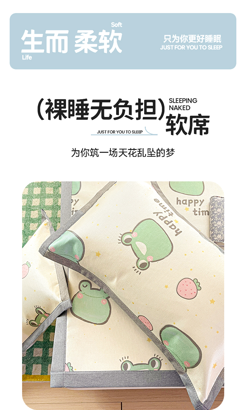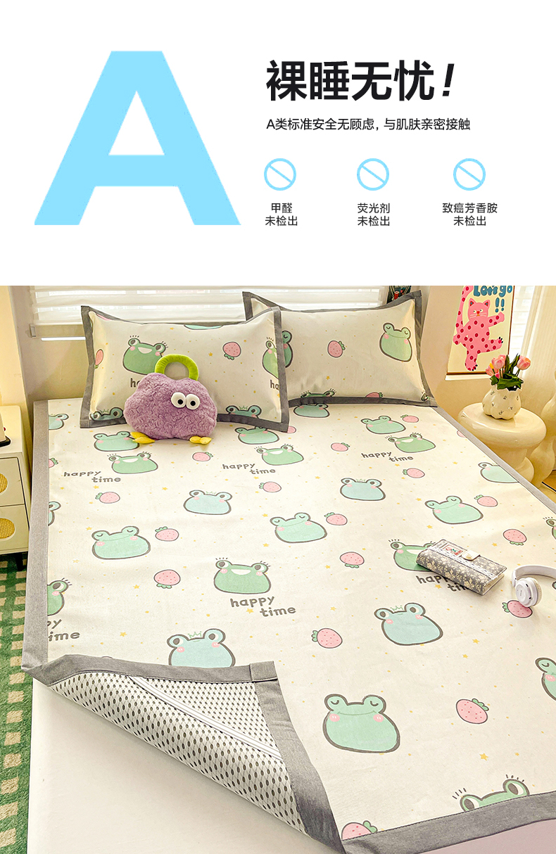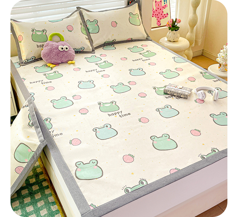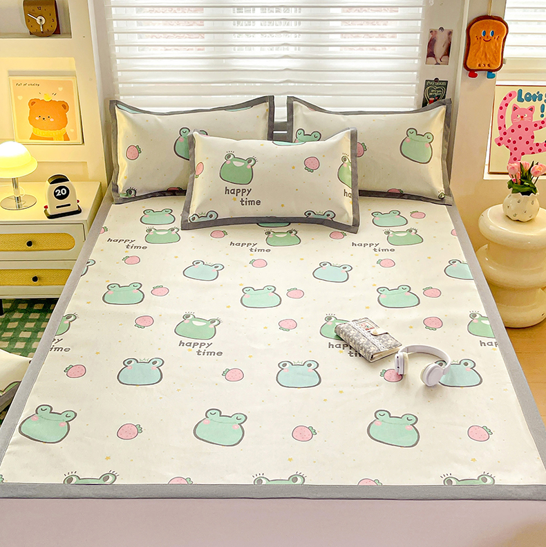 商品名称:金盛纺 2025新款A类数码印花冰丝席-床席款 小青蛙