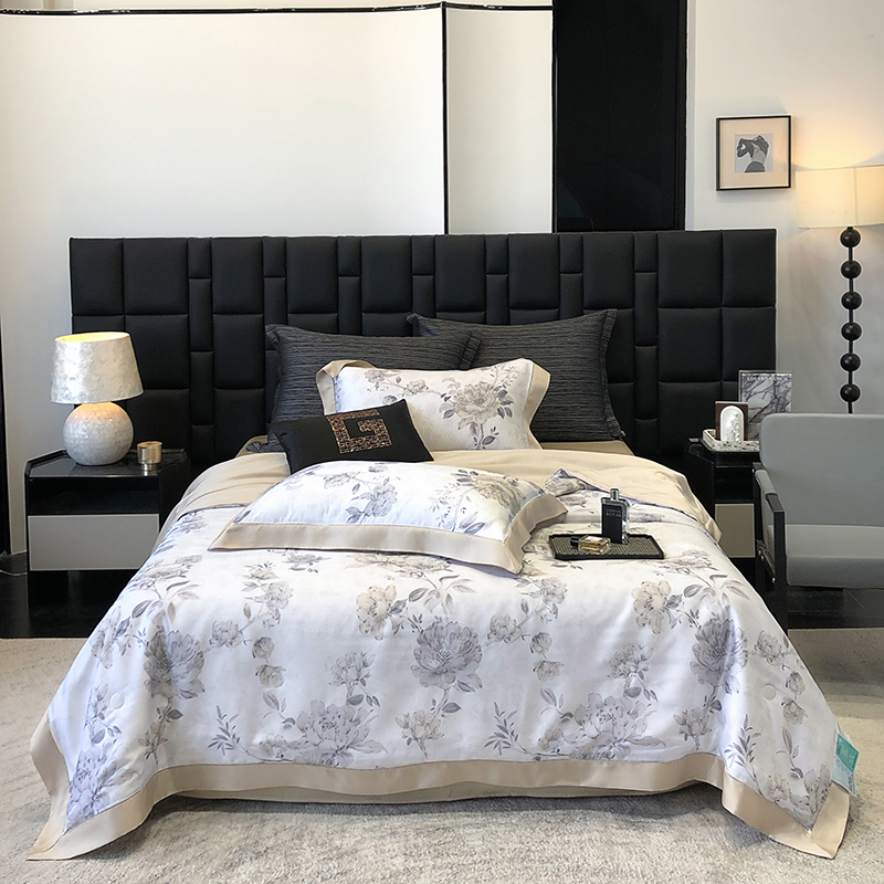 (总)若未家居2023新款轻奢意式50支全棉长绒棉四件套-水墨,贵族白,雾棕,烟蓝