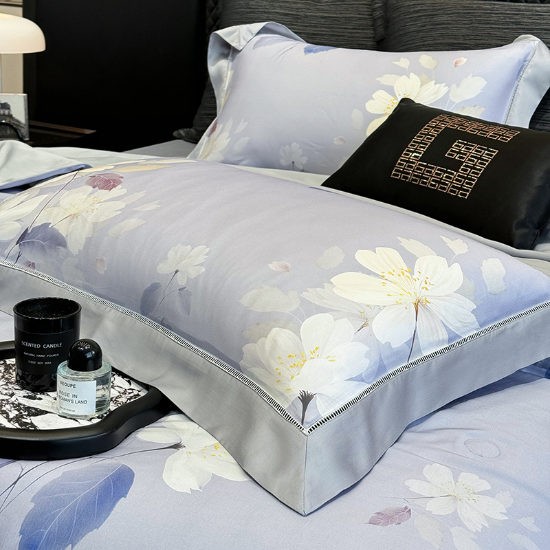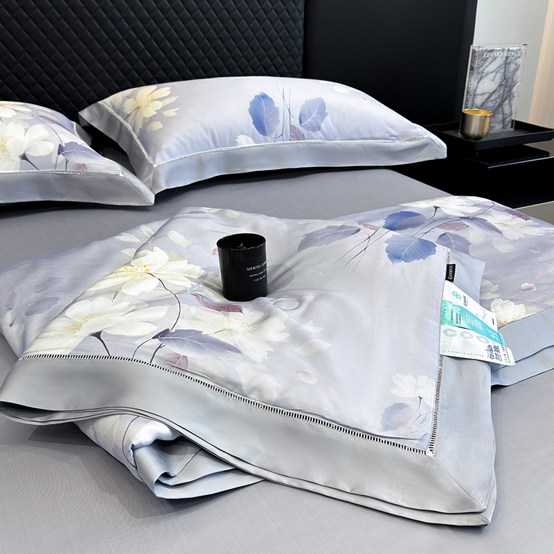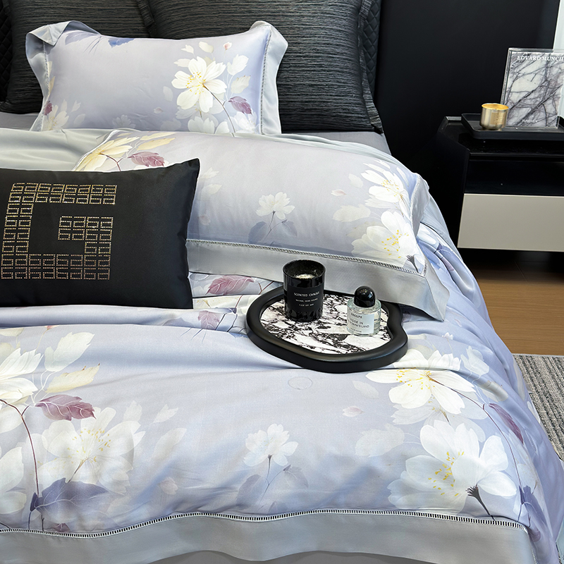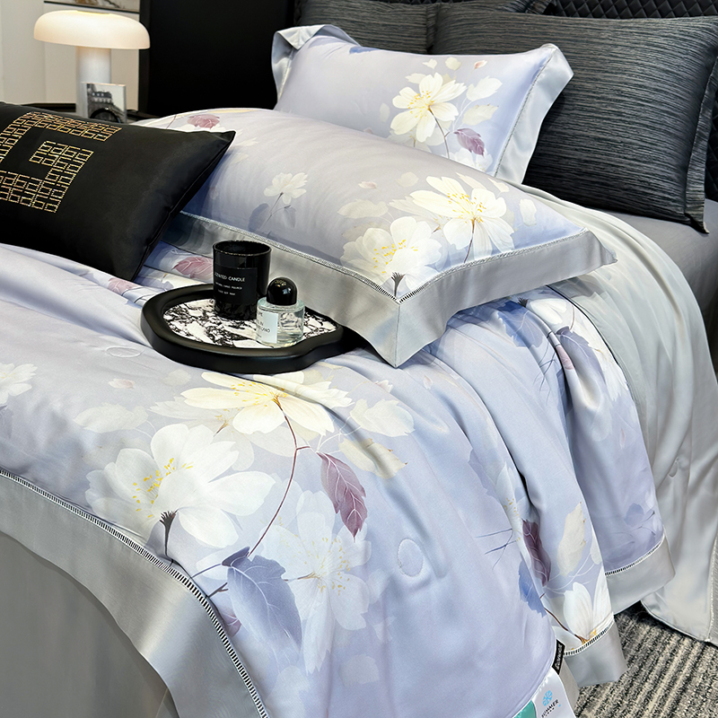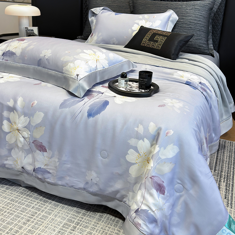 • 91家纺网 家纺一手货源 找家纺 若未家居 LOVEWE HOUSE 2025新款兰精天丝印花夏被及夏被四件套 紫郁气氛(床单款+床盖款)