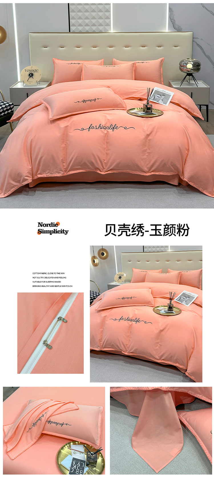 当前位置: 91家纺网 > 商品网购 > 床品套件 > 四件套 > 全棉普通四件套 > 2025新款13374全棉母婴级贝壳绣宽边枕套纯色刺绣三角针四件套全棉贡缎新疆长绒字母款 贝壳绣-玉颜粉