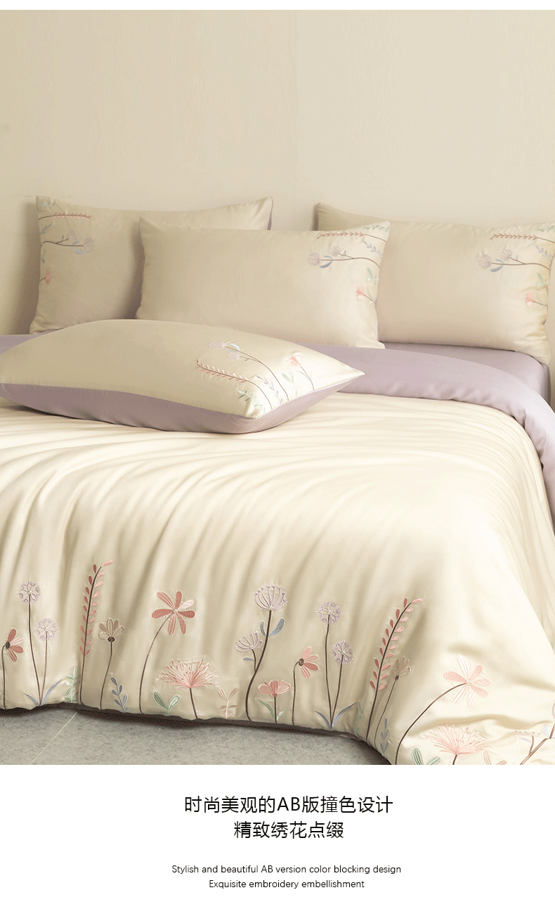 商品名称:618家纺 2025新款60S100支进口兰精天丝四件套-初夏 天丝初夏丁香紫