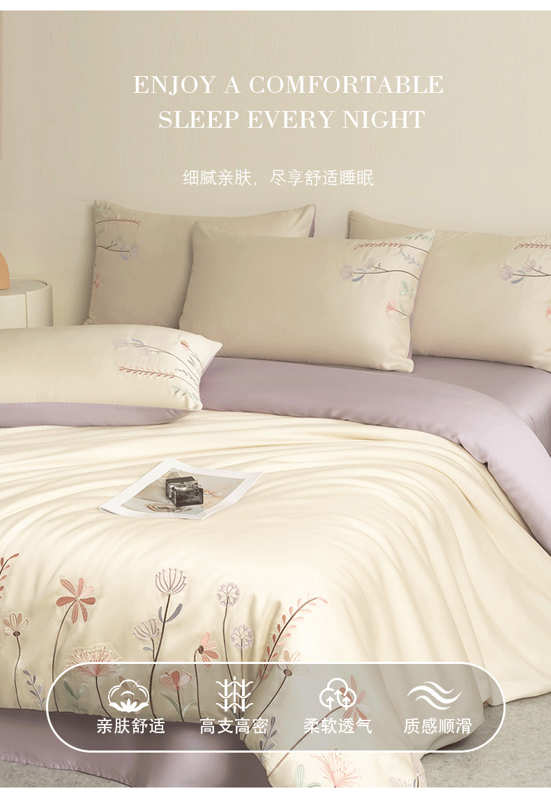 618家纺 2025新款60S100支进口兰精天丝四件套-初夏 天丝初夏丁香紫