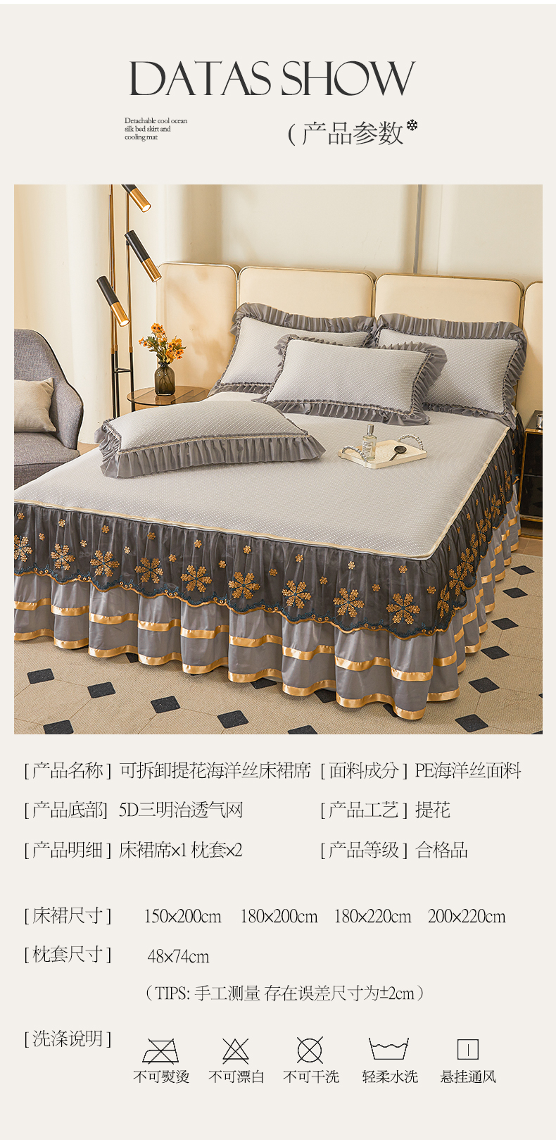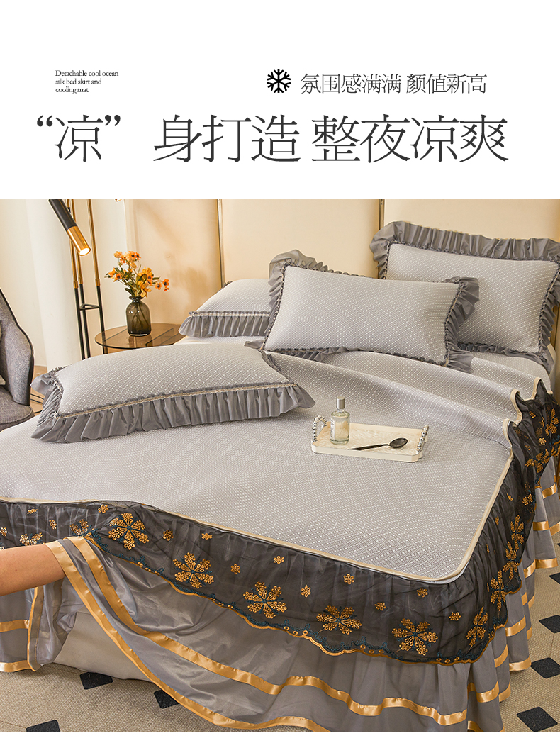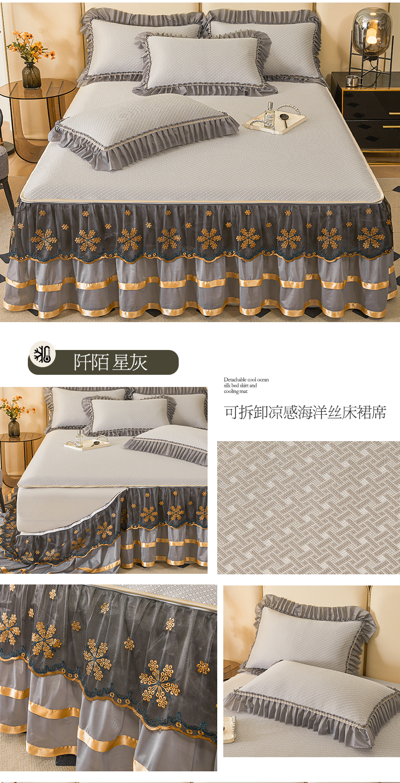 商品名称:情恒家纺 2025新款提花PE海洋丝可脱卸床裙席三件套 阡陌 星灰