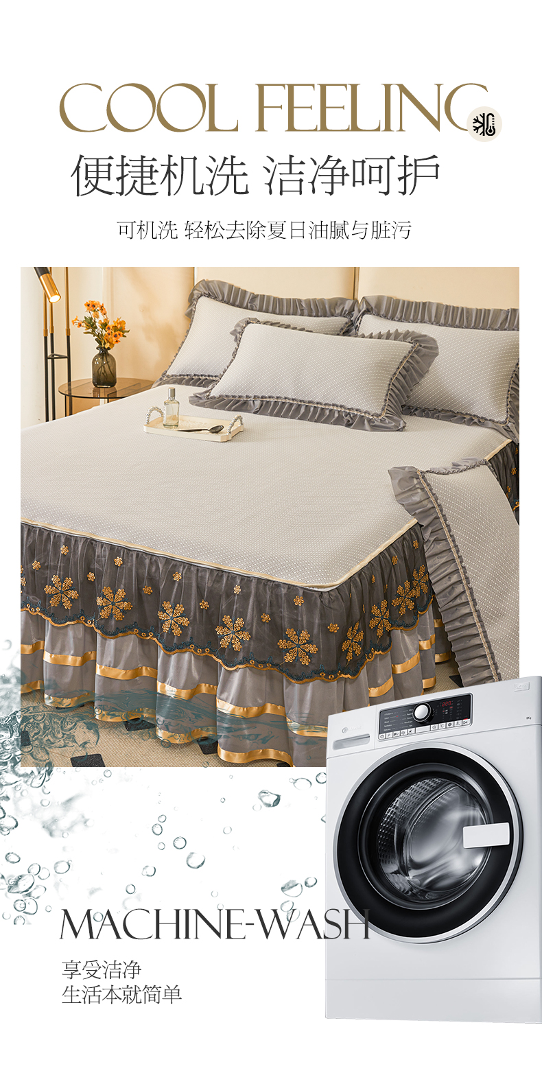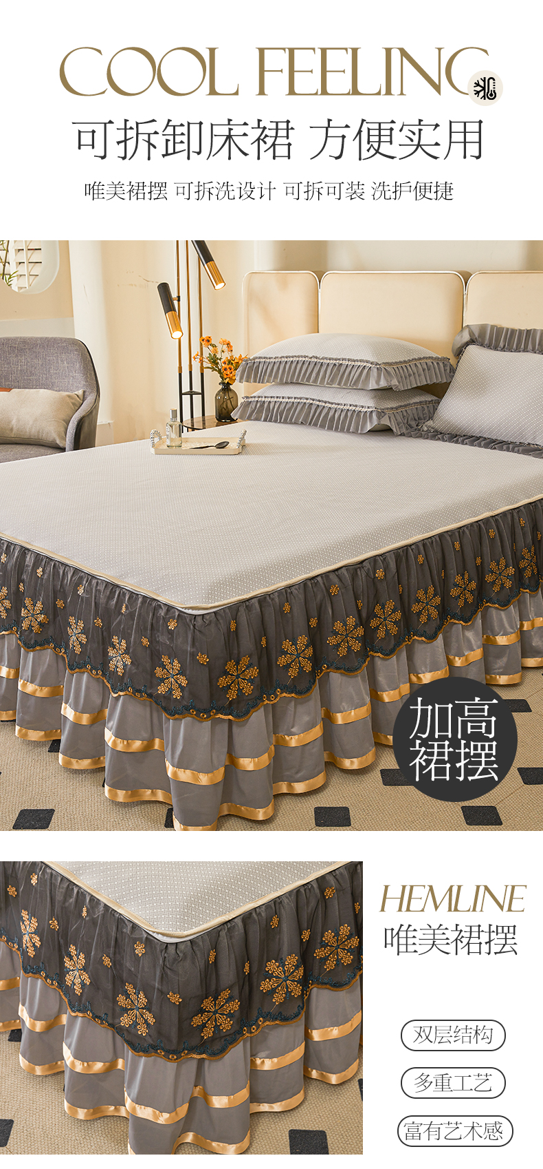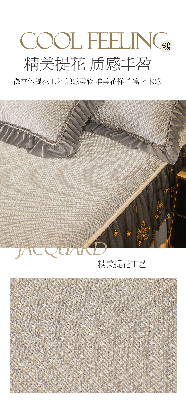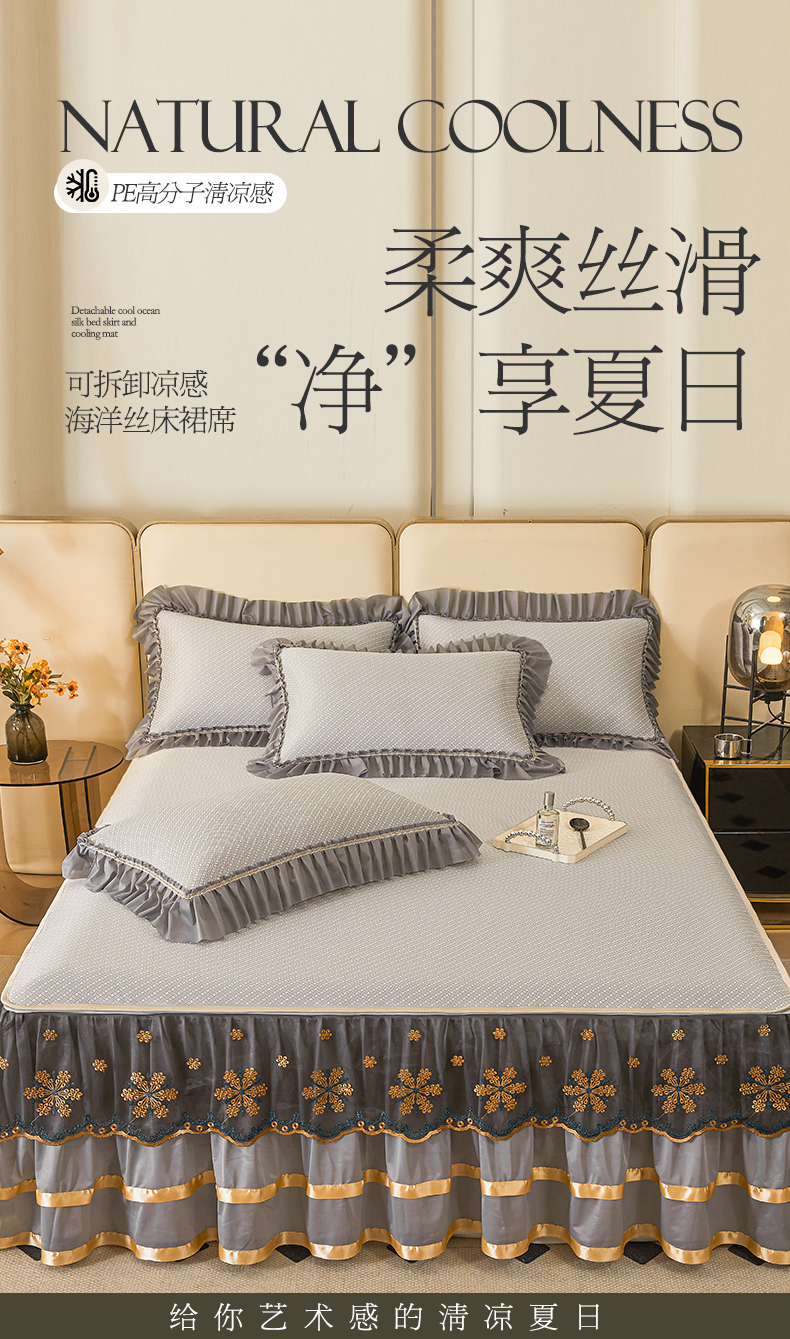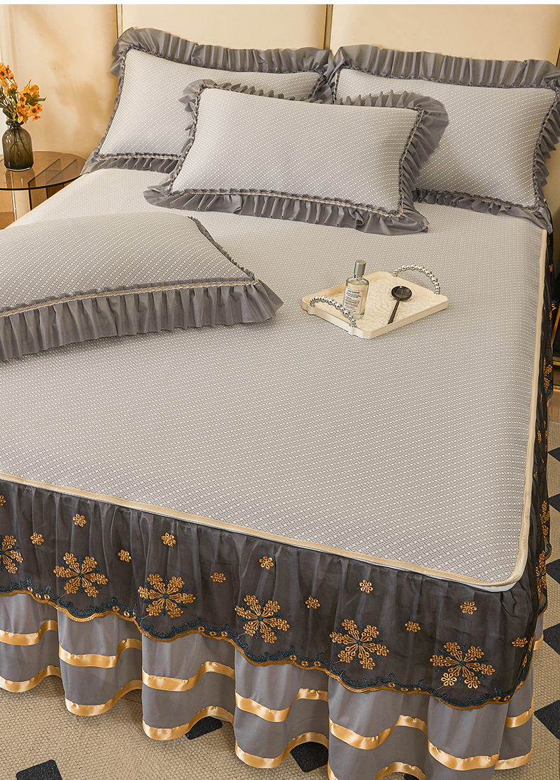 情恒家纺 2025新款提花PE海洋丝可脱卸床裙席三件套 阡陌 星灰