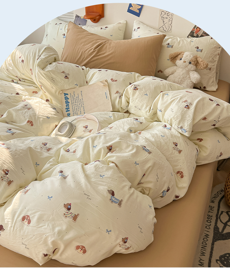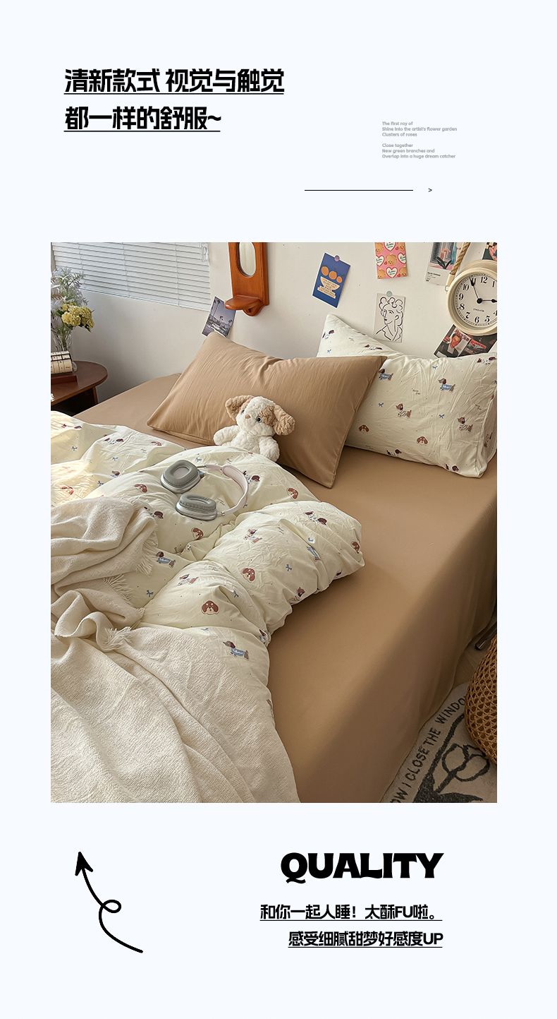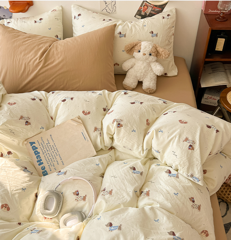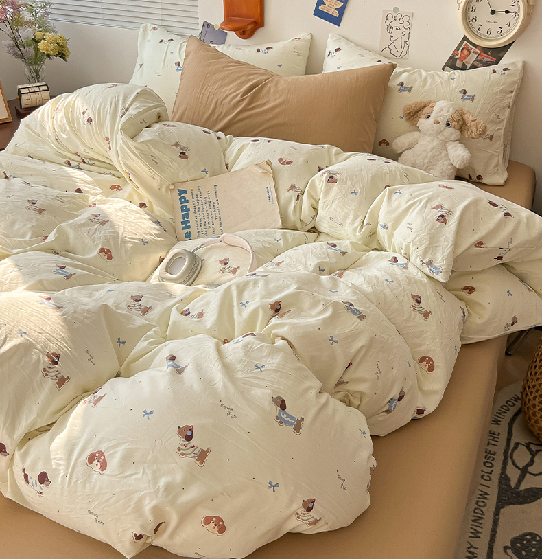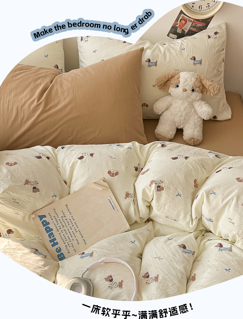 当前位置: 91家纺网 > 商品网购 > 床品套件 > 四件套 > 水洗棉四件套 > 罗亿家纺 2025新款软绵绵的双拼印花小清新云朵皱皱水洗棉四件套(含买家秀) 可可腊肠犬