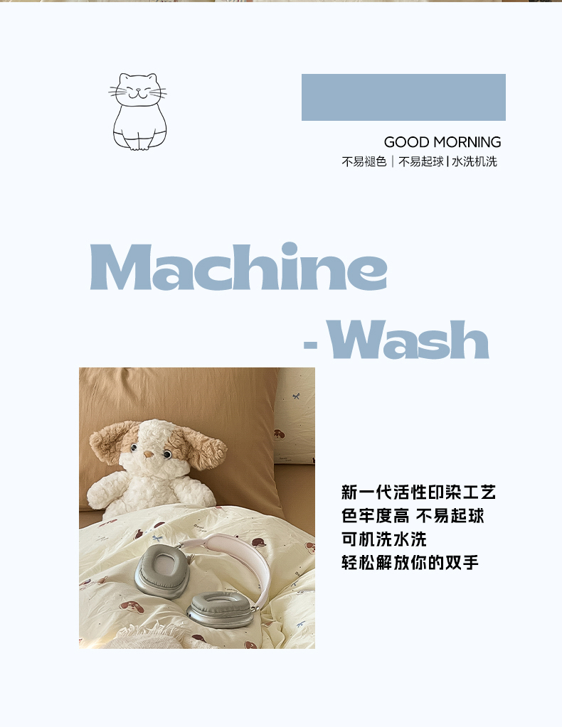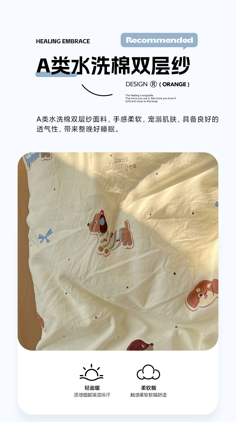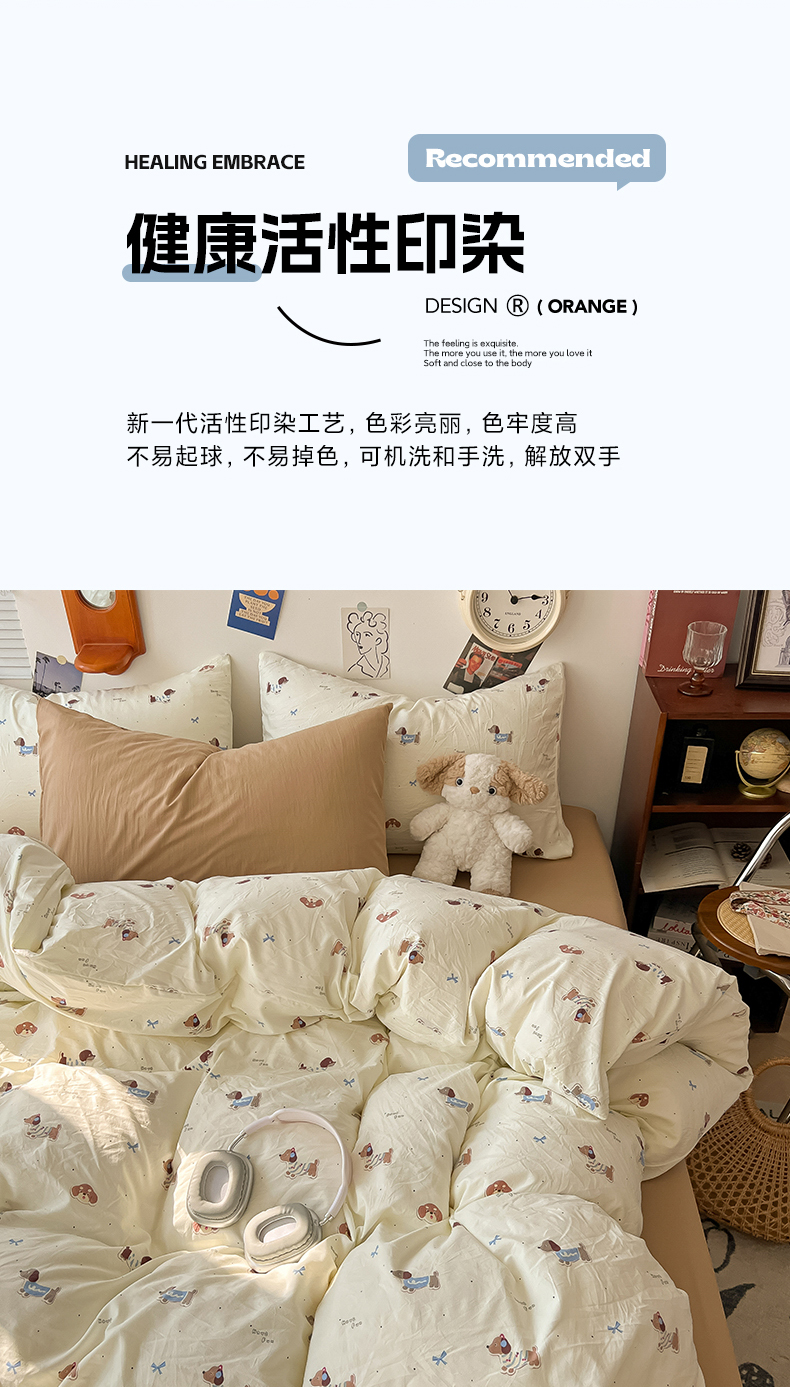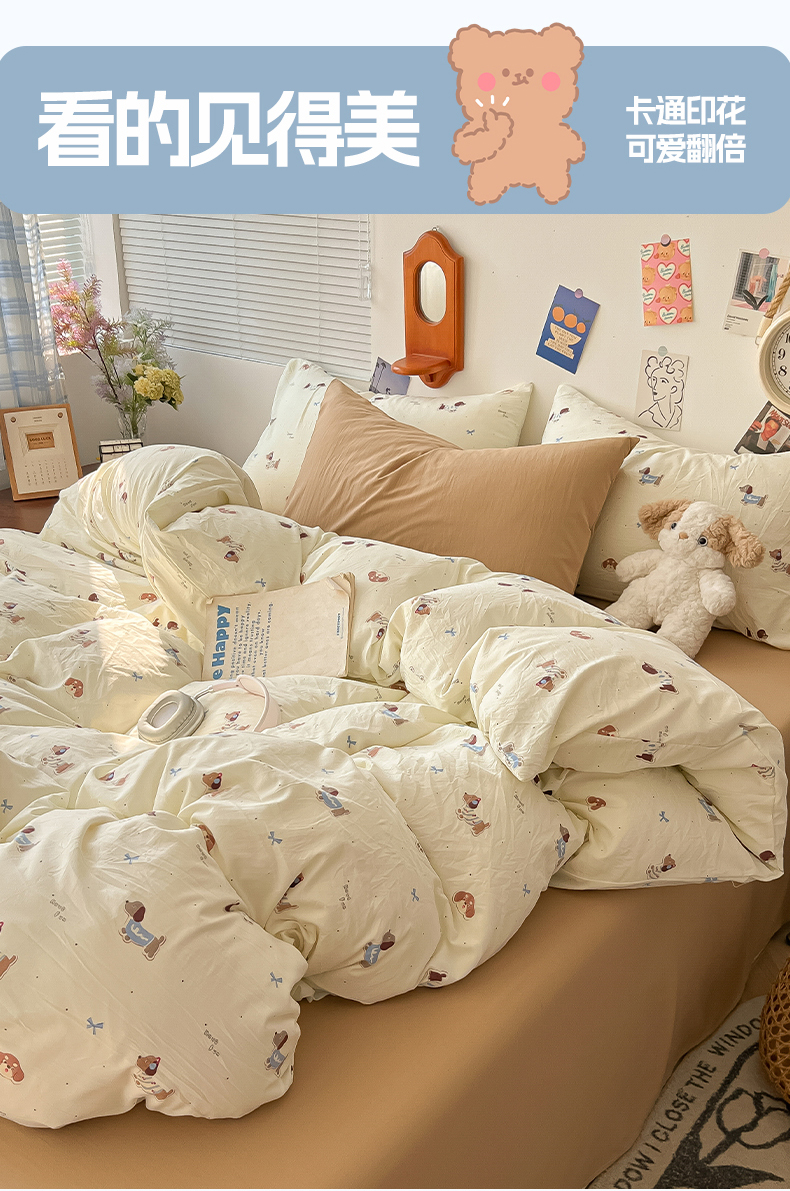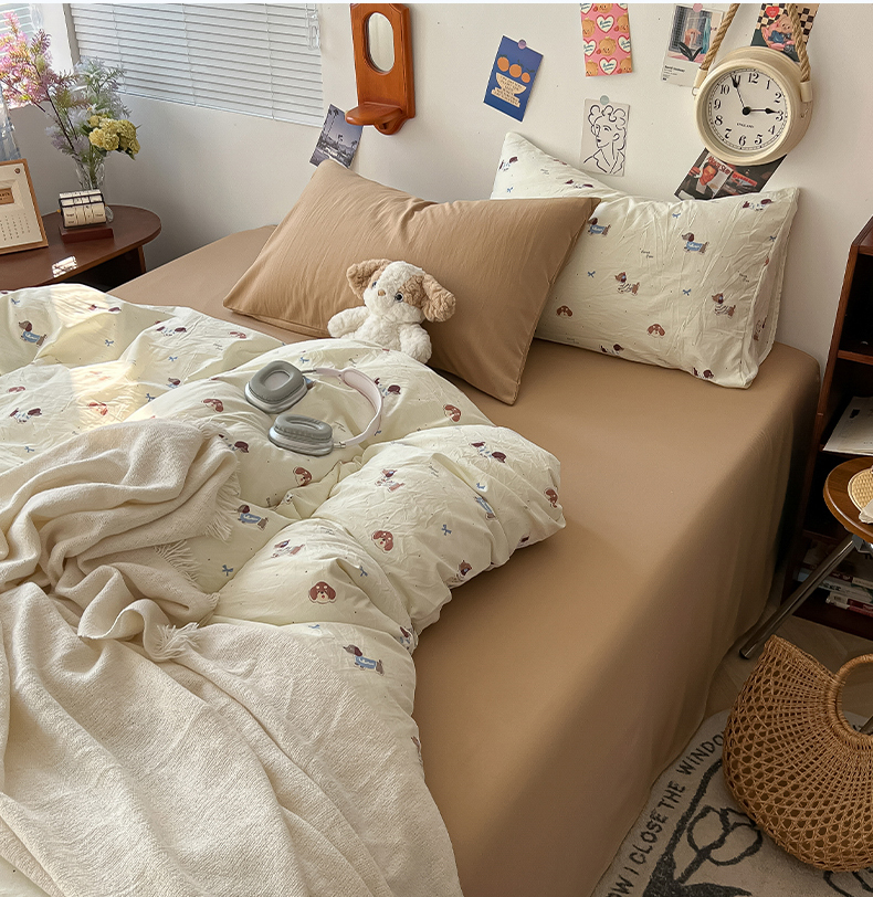当前位置: 91家纺网 > 商品网购 > 床品套件 > 四件套 > 水洗棉四件套 > 罗亿家纺 2025新款软绵绵的双拼印花小清新云朵皱皱水洗棉四件套(含买家秀) 可可腊肠犬