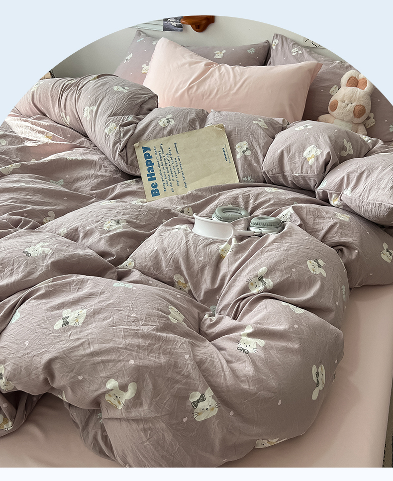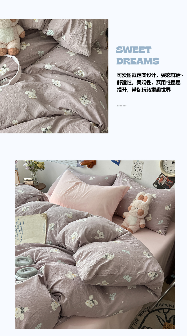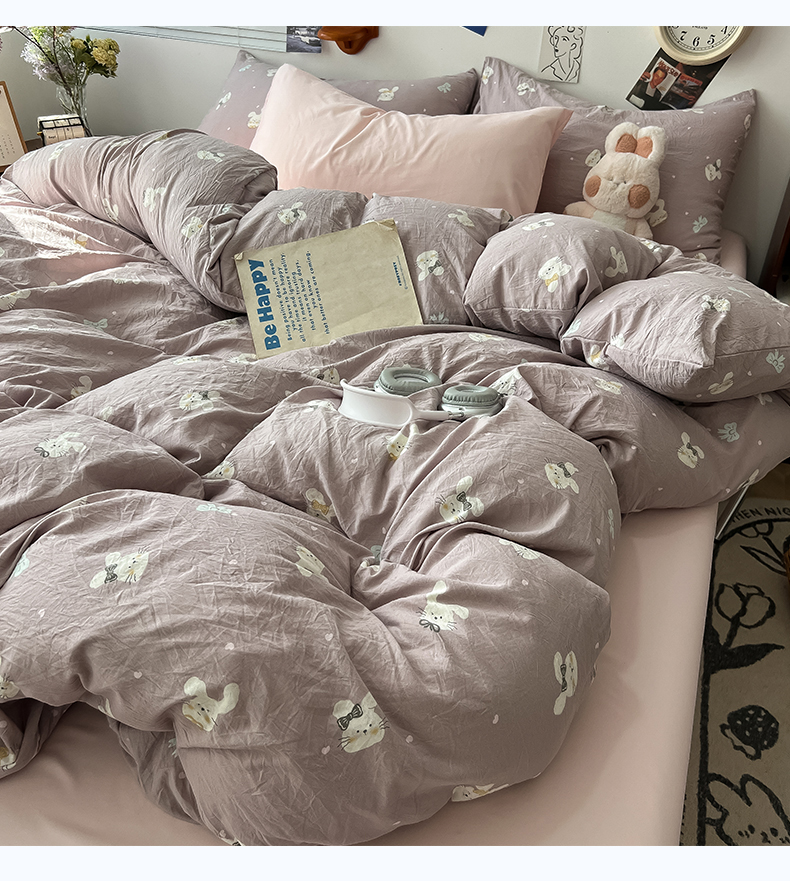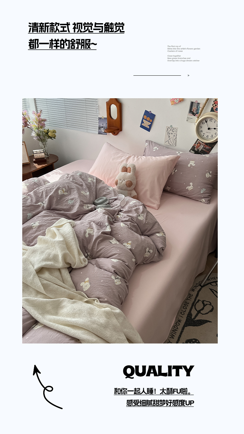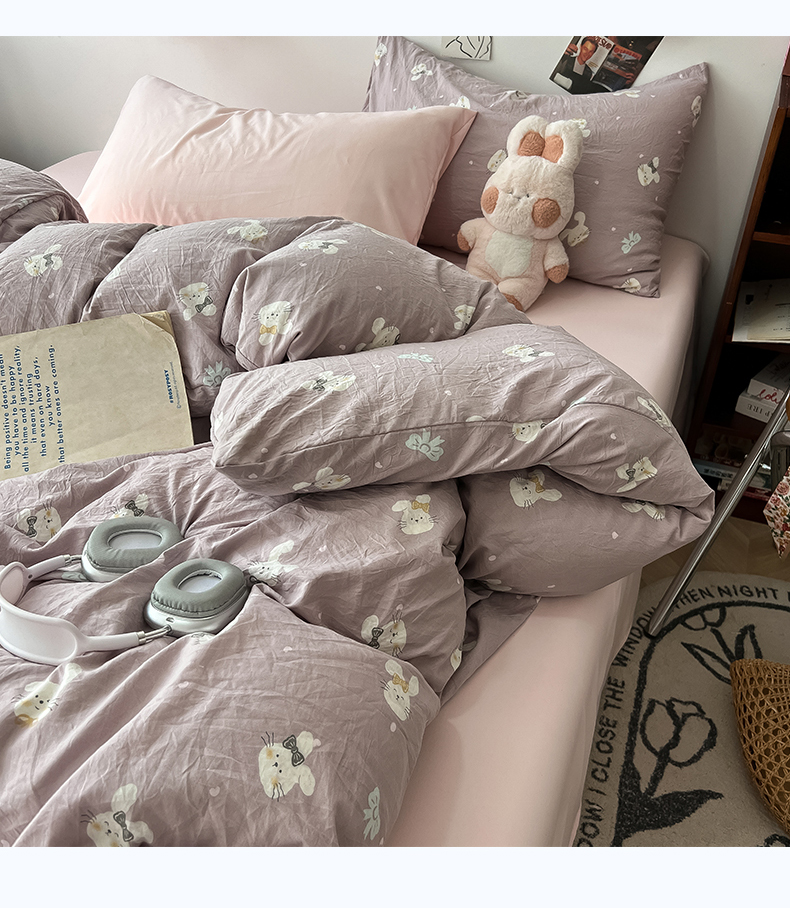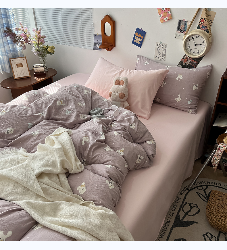 当前位置: 91家纺网 > 商品网购 > 床品套件 > 四件套 > 水洗棉四件套 > 罗亿家纺 2025新款软绵绵的双拼印花小清新云朵皱皱水洗棉四件套(含买家秀) 芋泥兔仔