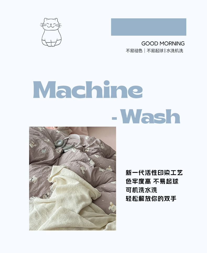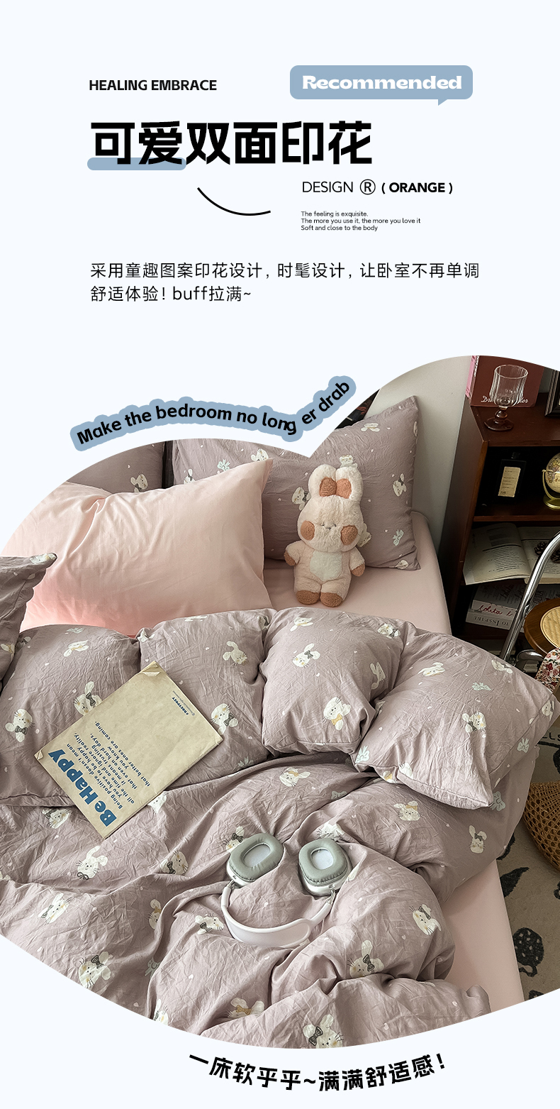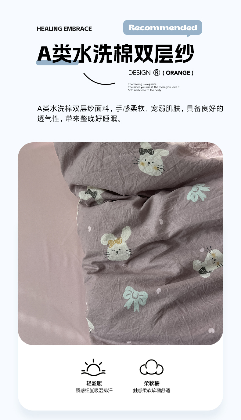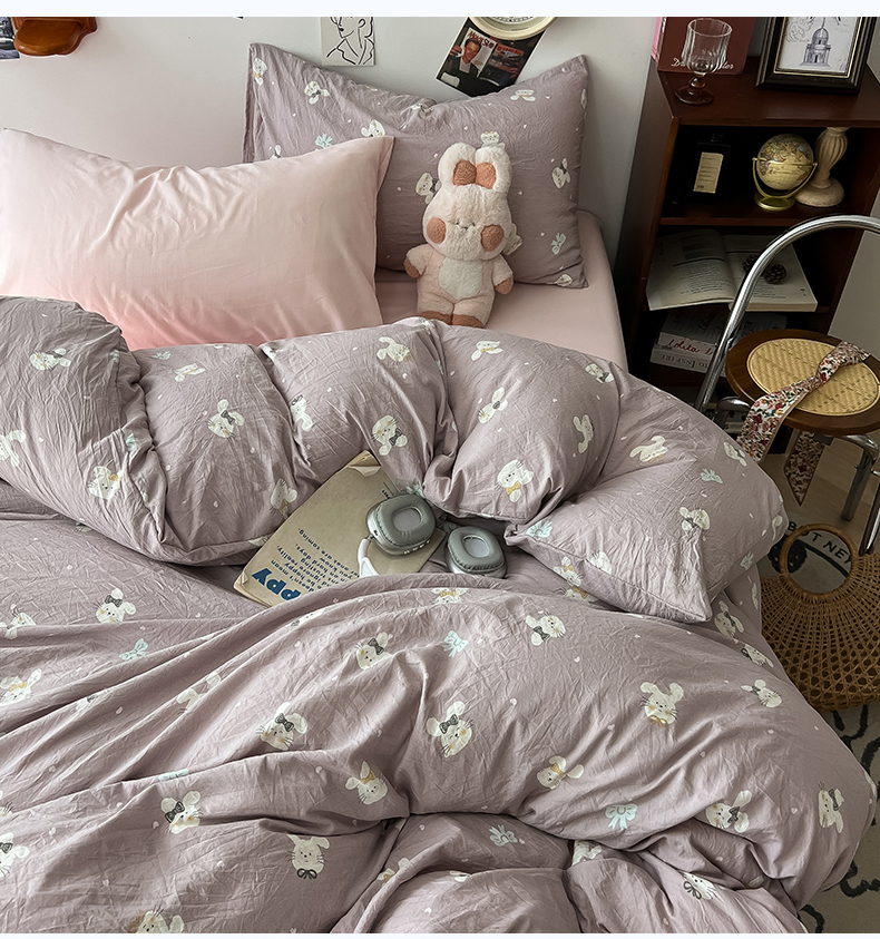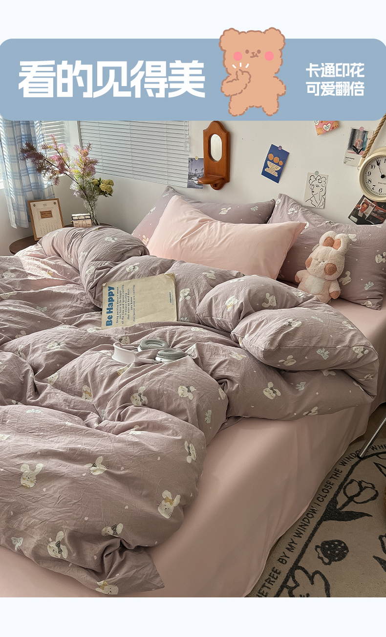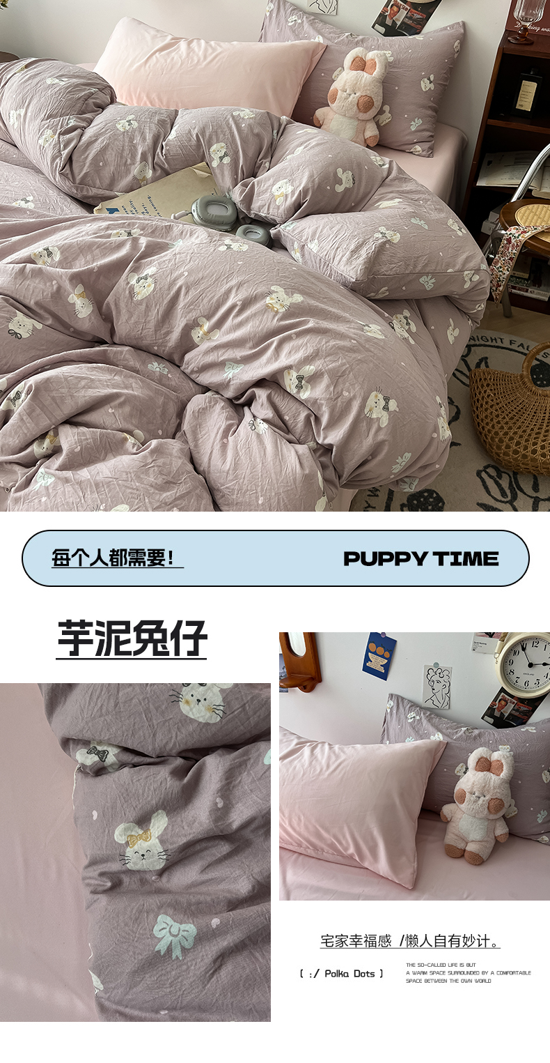 当前位置: 91家纺网 > 商品网购 > 床品套件 > 四件套 > 水洗棉四件套 > 罗亿家纺 2025新款软绵绵的双拼印花小清新云朵皱皱水洗棉四件套(含买家秀) 芋泥兔仔