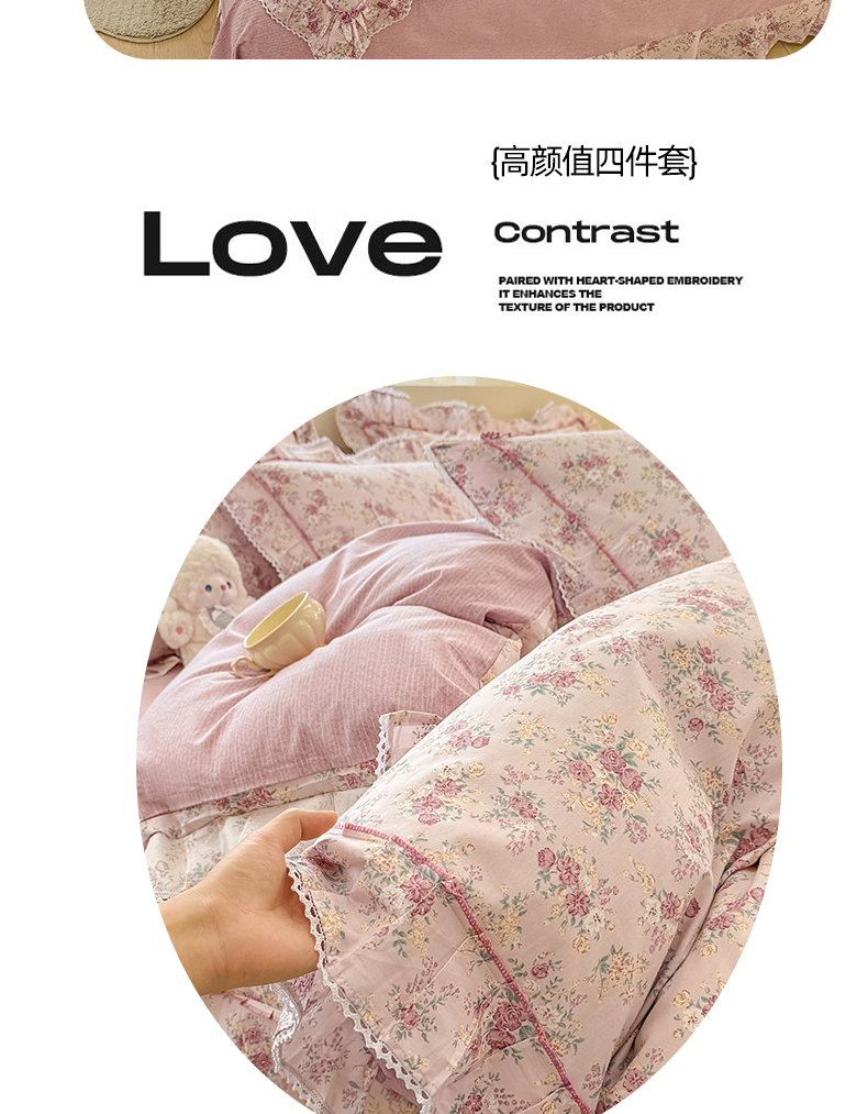 (总)缦彩 2025新款全棉纯棉夹棉公主风花边床裙四件套,缤纷绮梦,蒂芙尼,多丽粉,卡曼-粉,雾岛听风-粉,小萝莉