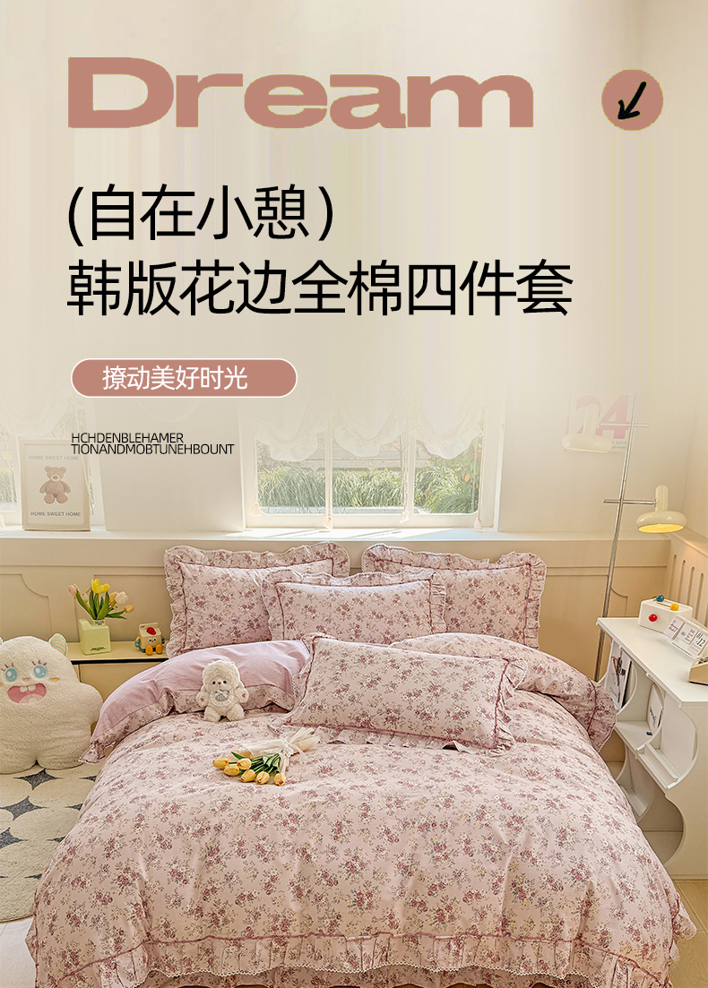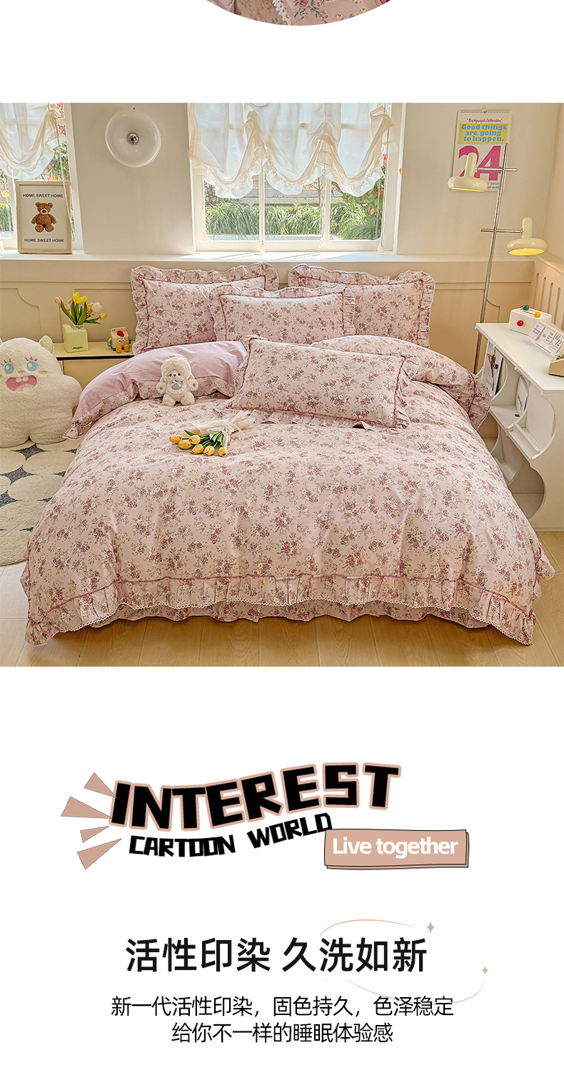商品名称:缦彩家纺 2025新款韩版全棉公主风床单四件套 美娜