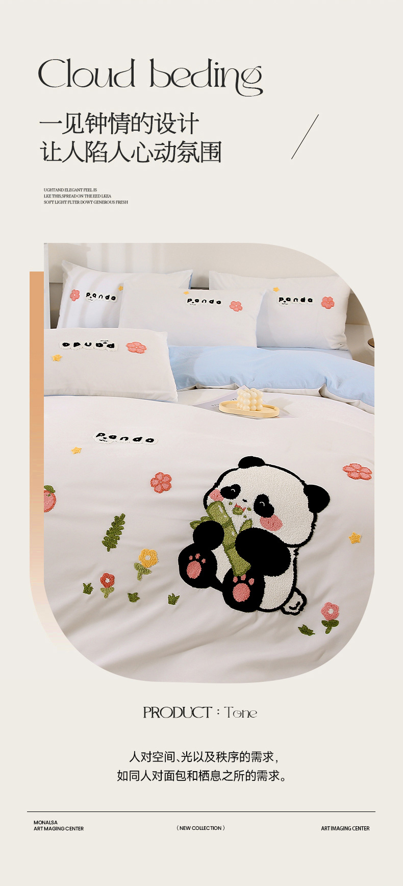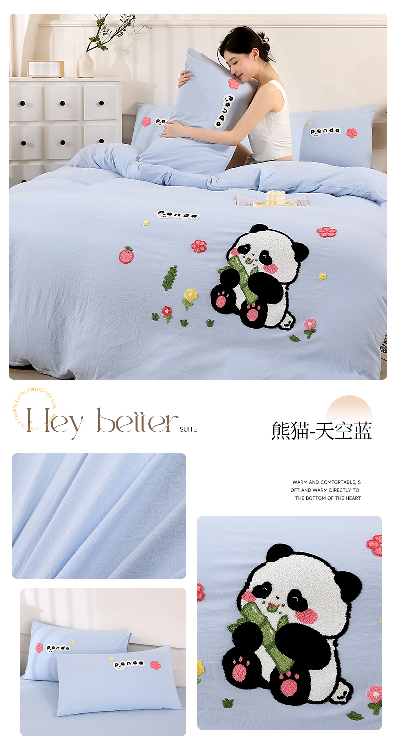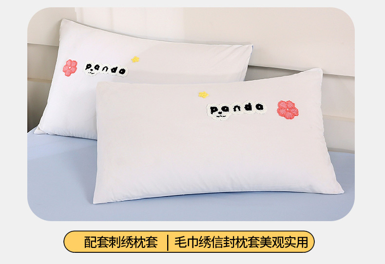 商品名称:优米家纺 2025新款A类水洗棉毛巾绣四件套-熊猫 熊猫-绅士灰