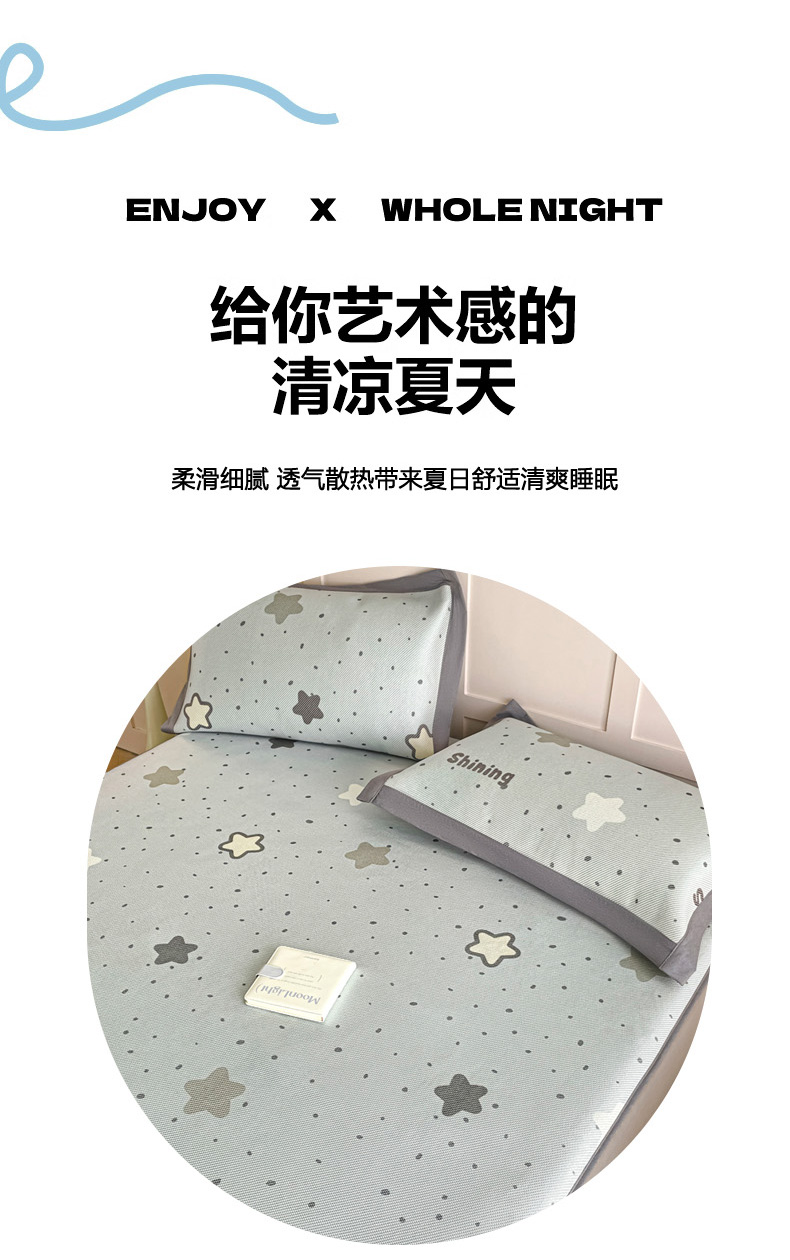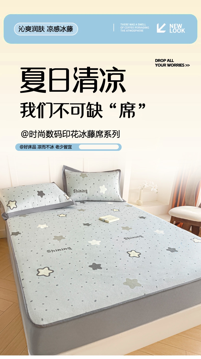 商品名称:柒月家居 2025新款小清新印花冰藤系列凉席席子-床笠款 夜空
