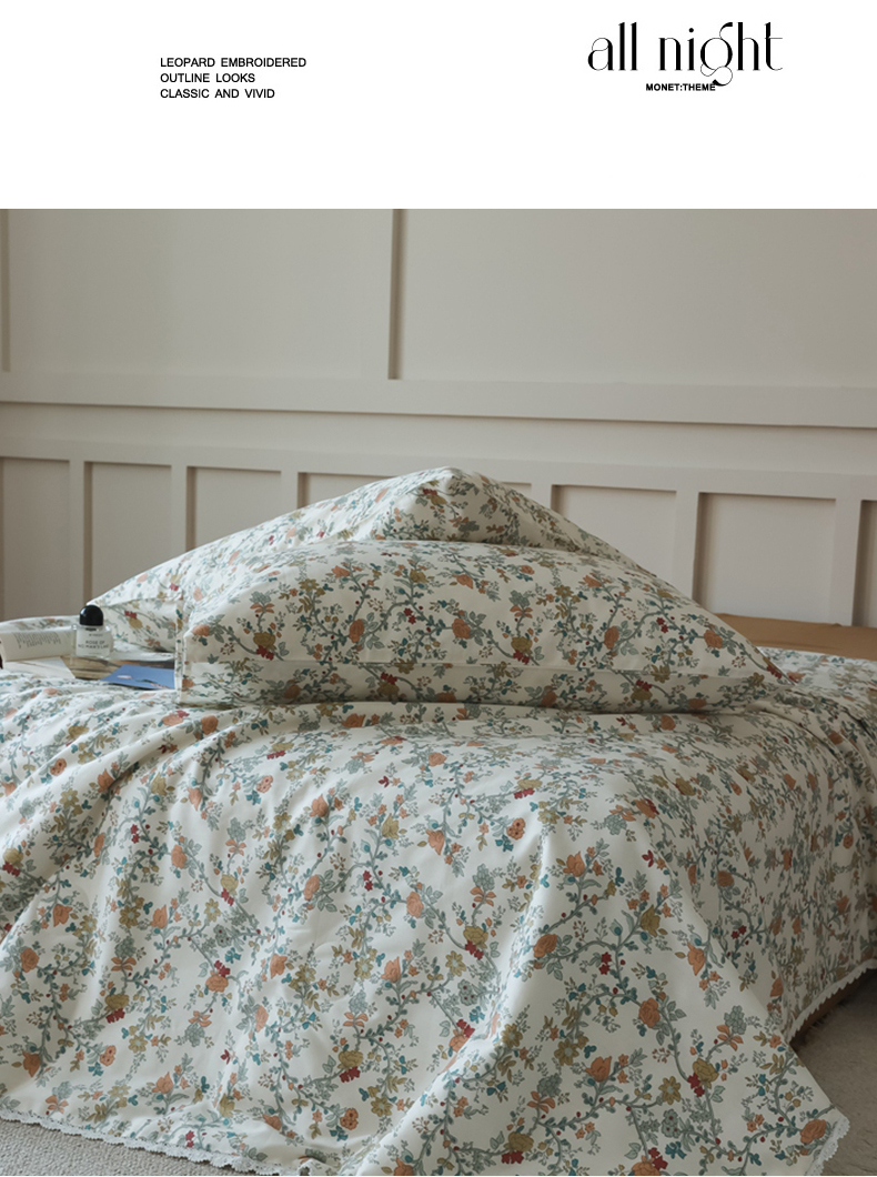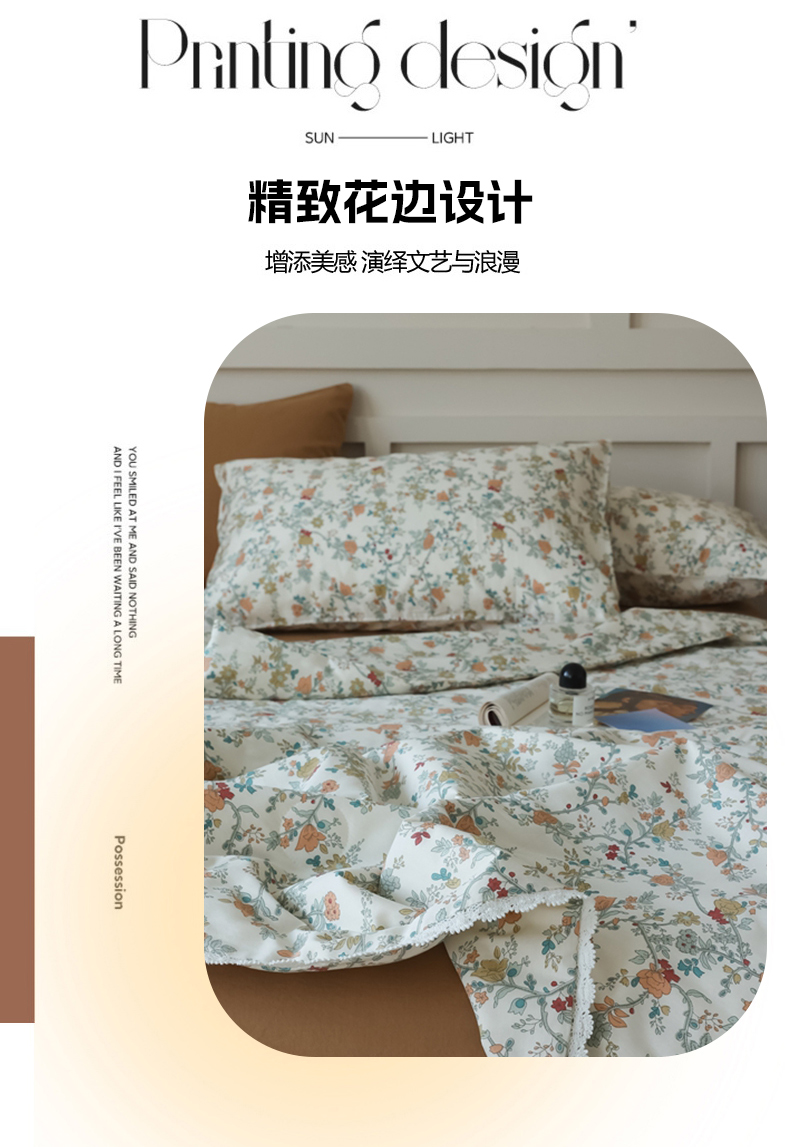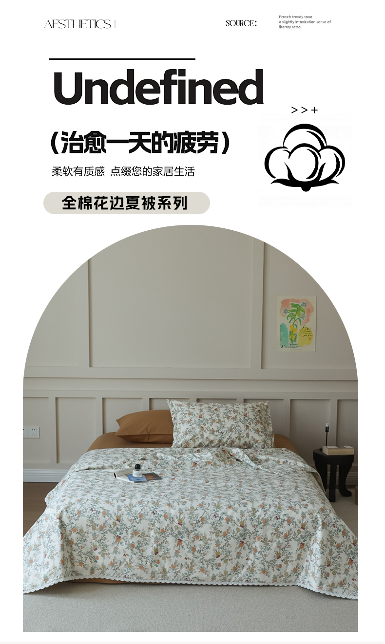 当前位置: 91家纺网 > 商品网购 > 床品套件 > 四件套 > 夏被四件套 > 棉眠 2025新款纯棉花边夏被套件 秋茗