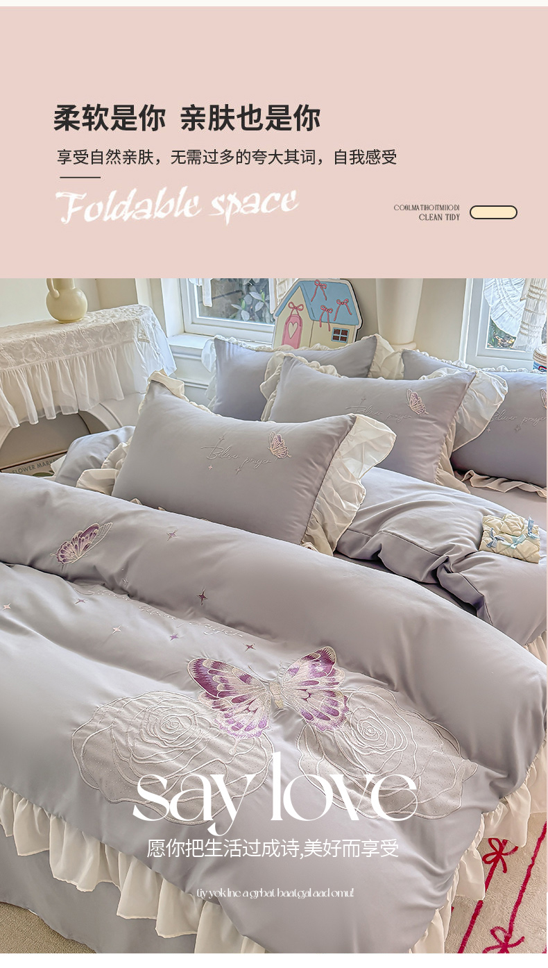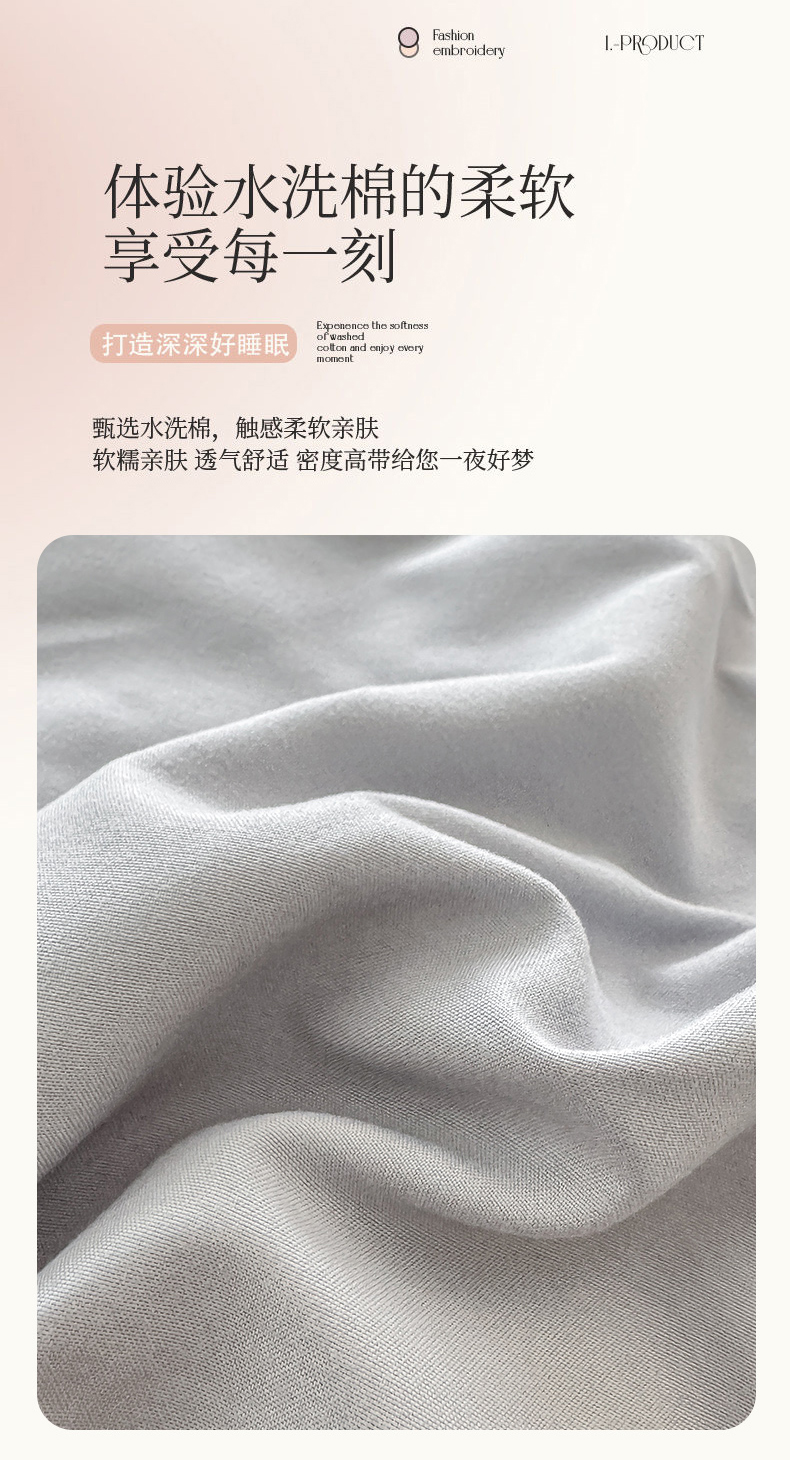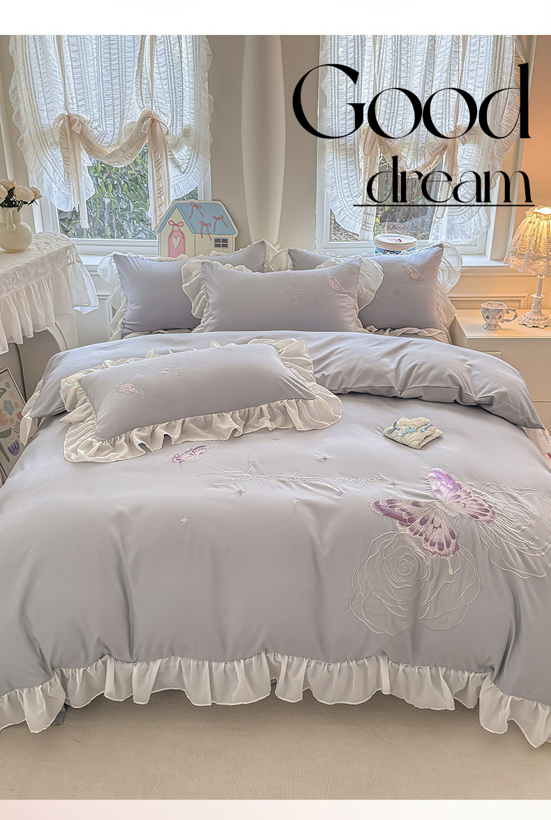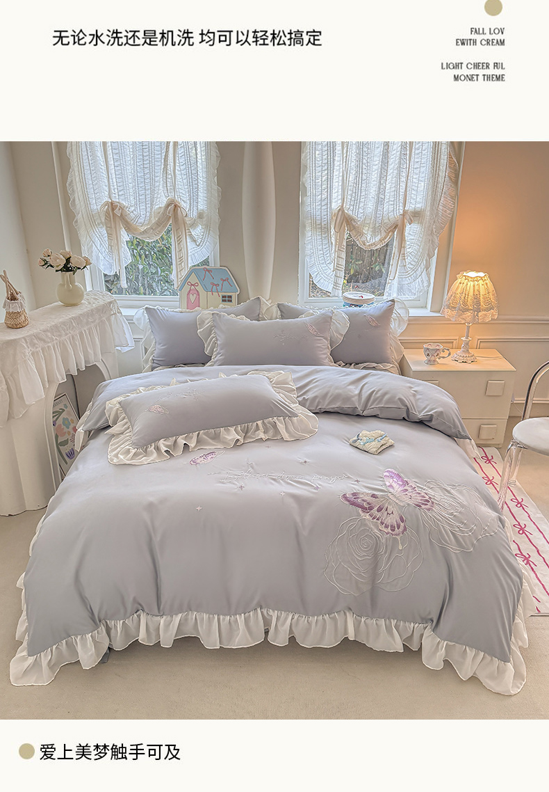 当前位置: 91家纺网 > 商品网购 > 床品套件 > 四件套 > 其它四件套 > 凯美家居 2025新款A类水洗棉大版绣花四件套系列-蝶恋花 蝶恋花 浅灰
