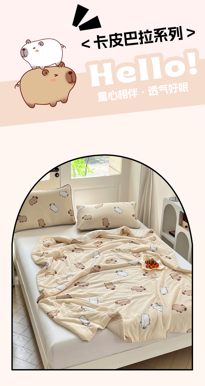 (总)蘭菲家纺 2025新款凉感丝卡皮巴拉夏被,爱滑板,爱皮卡,沉浸式,大美豚,拉不动,拉小鸭,陪伴拉,皮小蛋,皮小萌,豚世界,豚一家,小卡,小奶豚,熊巴拉,征服拉