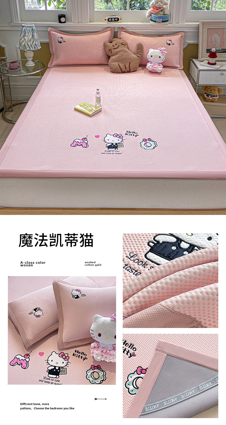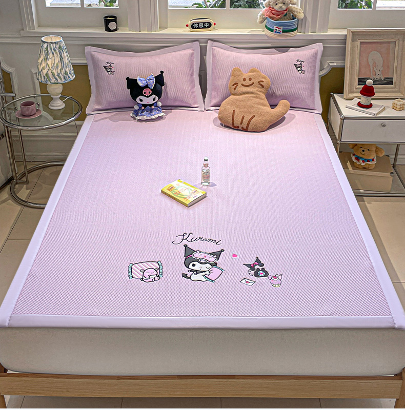 蓝邻家纺 2025年新款PE提花正版三丽鸥刺绣凉席系列-场景一 抱枕库洛米