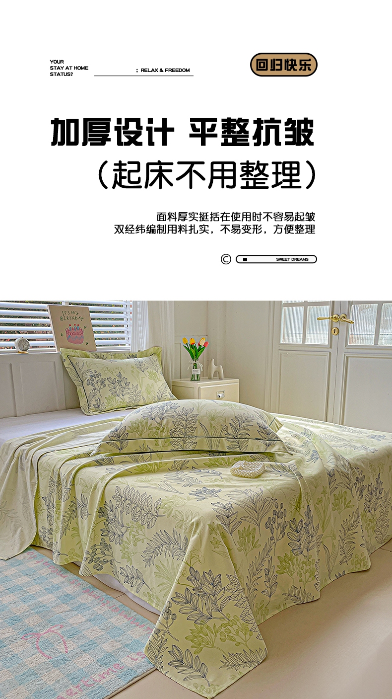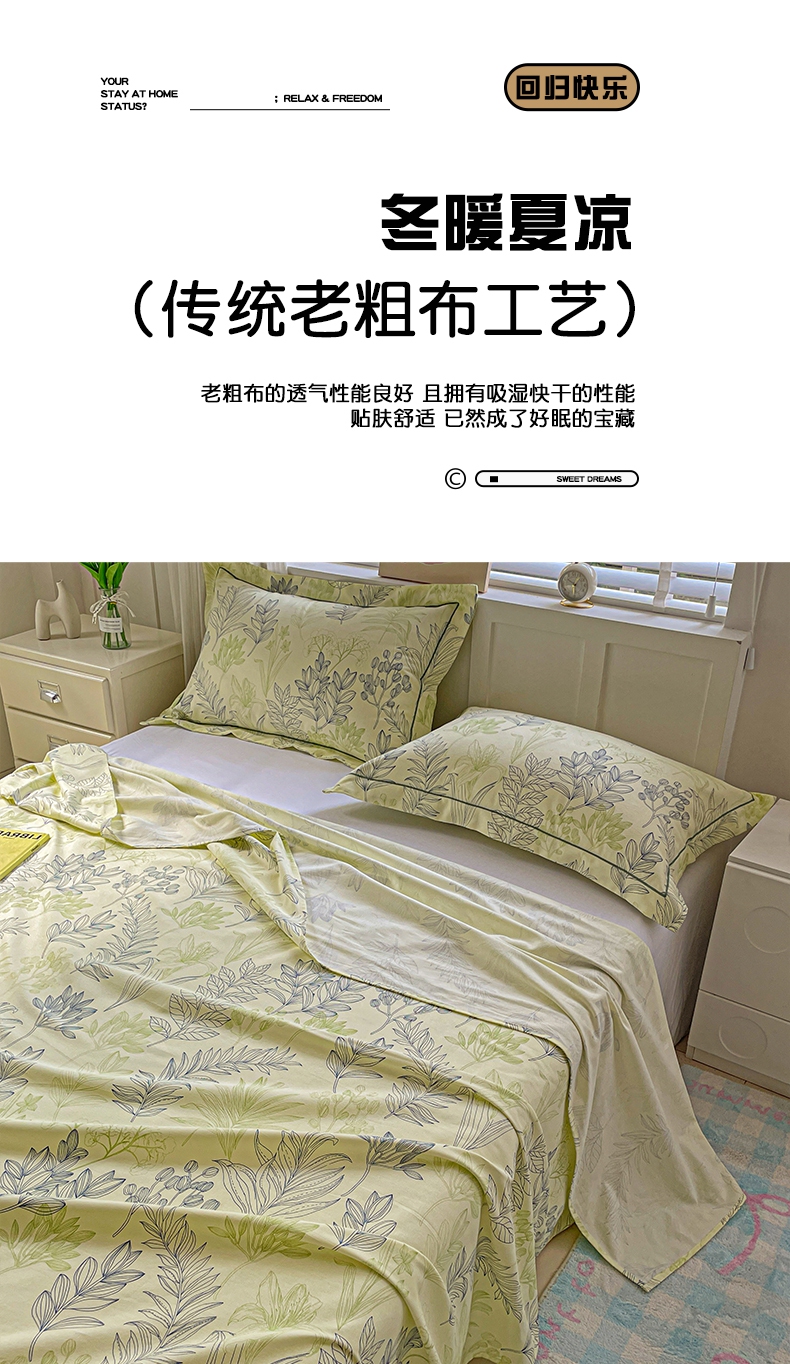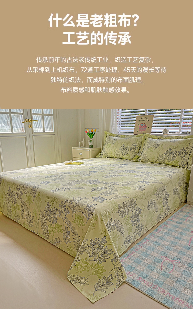 当前位置: 91家纺网 > 商品网购 > 床品套件 > 三件套 > 忆生活家纺 2025新款全棉纯棉老粗布印花床单三件套 繁花-绿