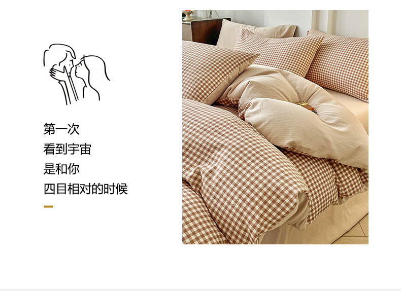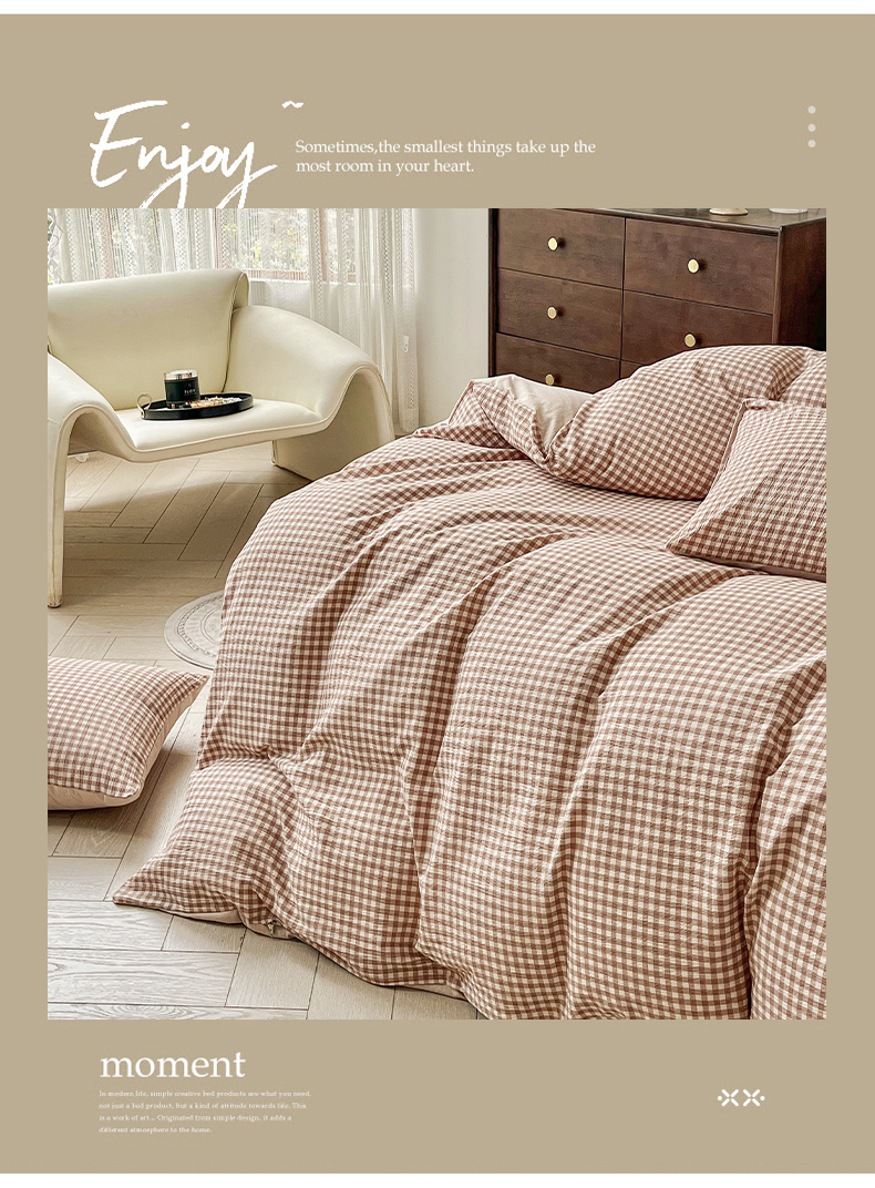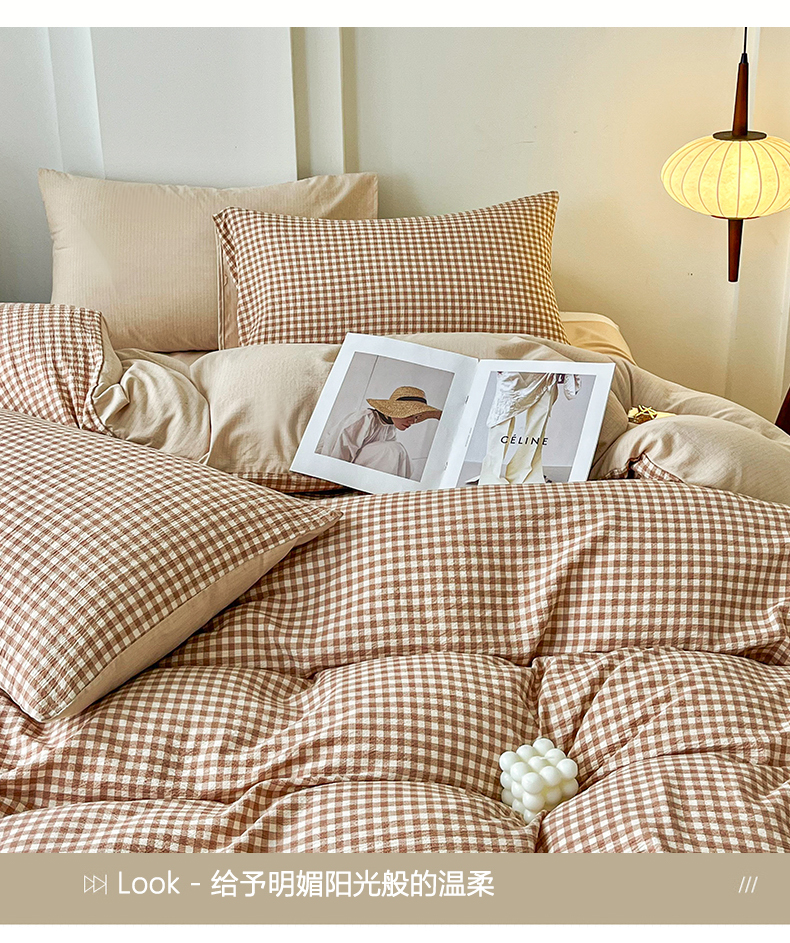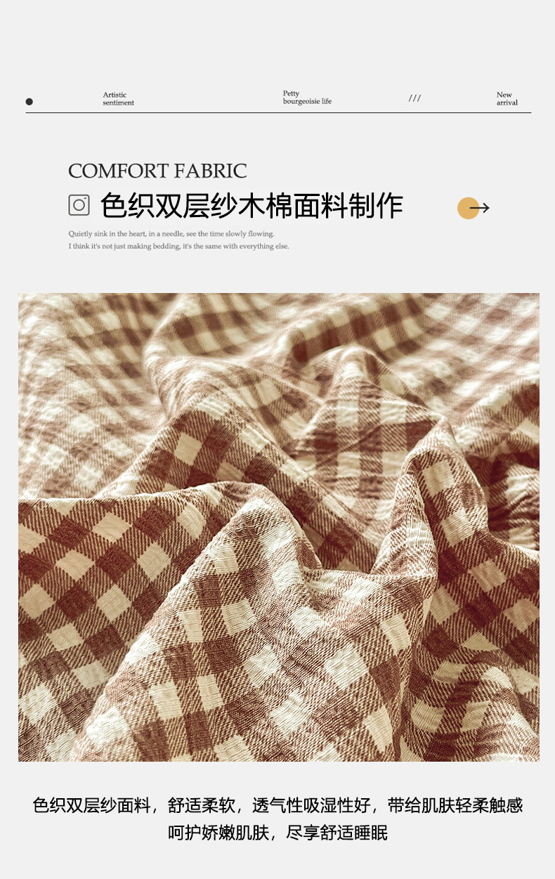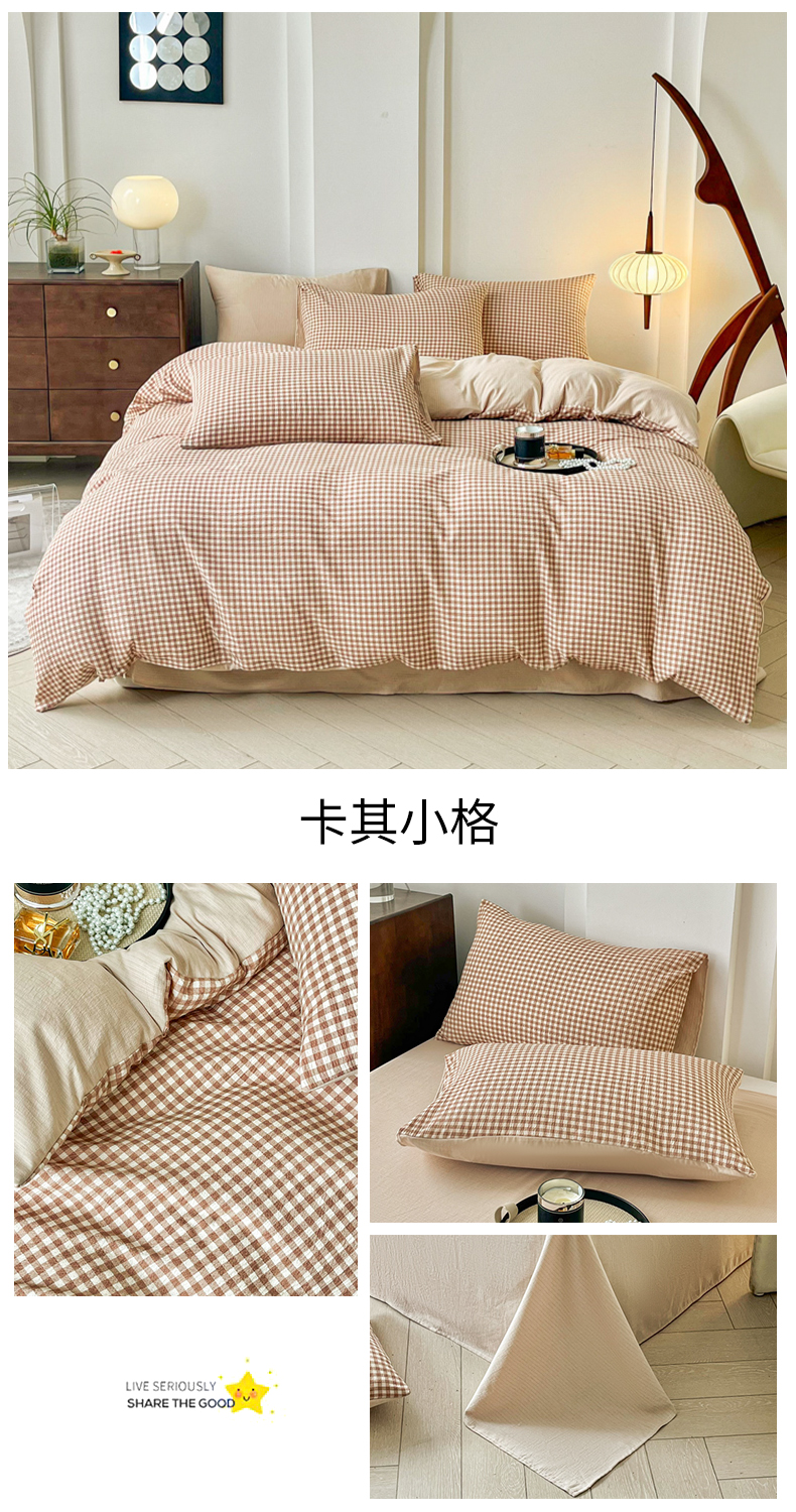 商品名称:优米家纺 2025新款色织双层纱木棉四件套 卡其小格