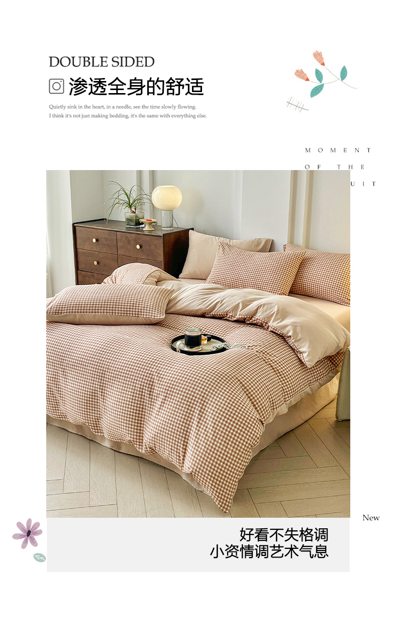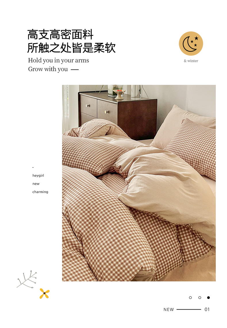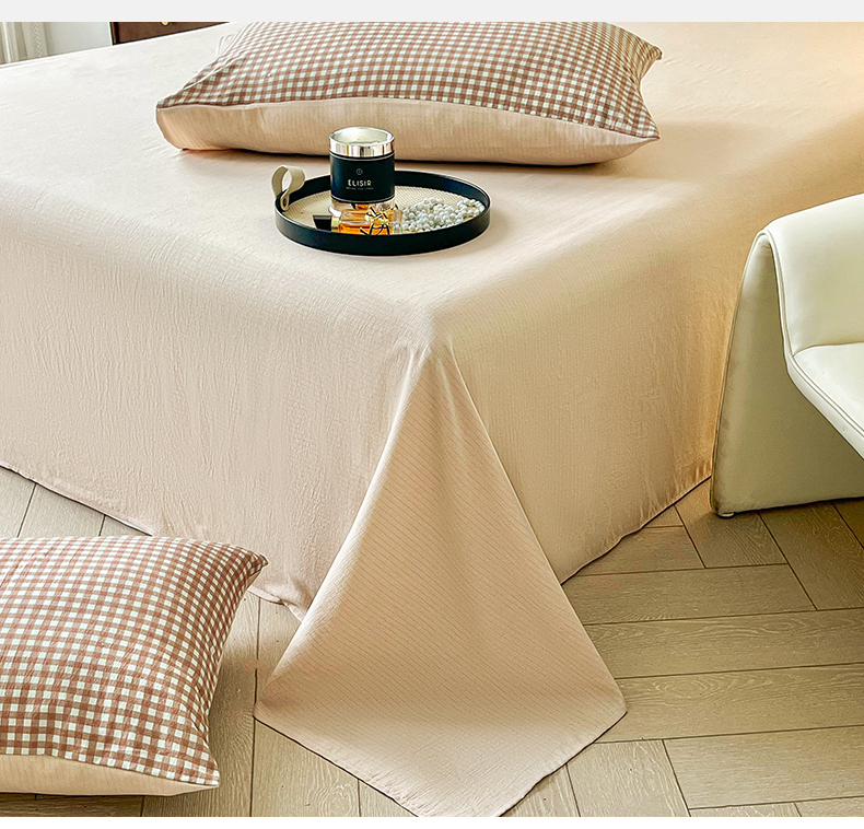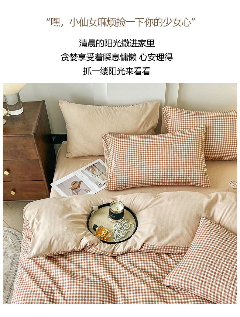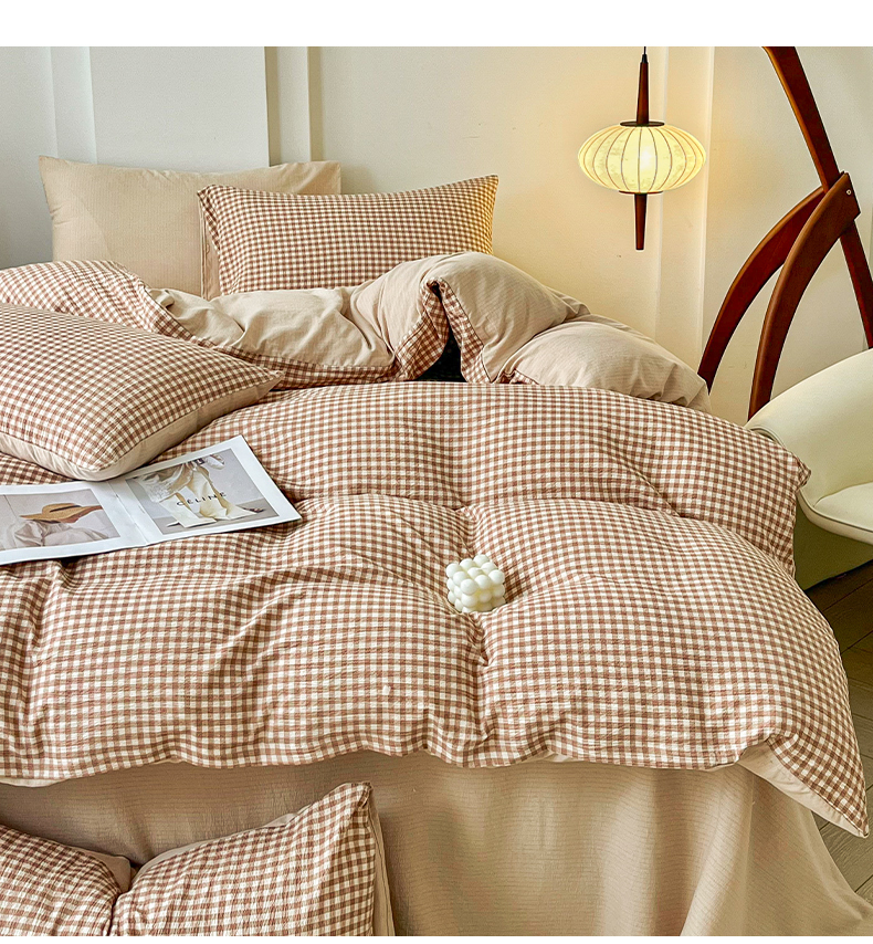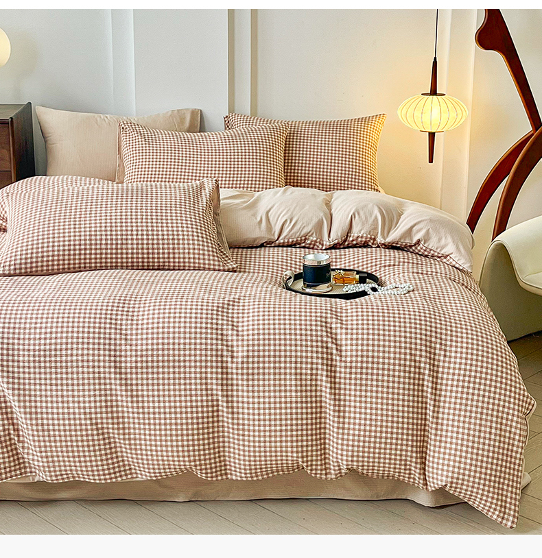 商品名称:优米家纺 2025新款色织双层纱木棉四件套 卡其小格