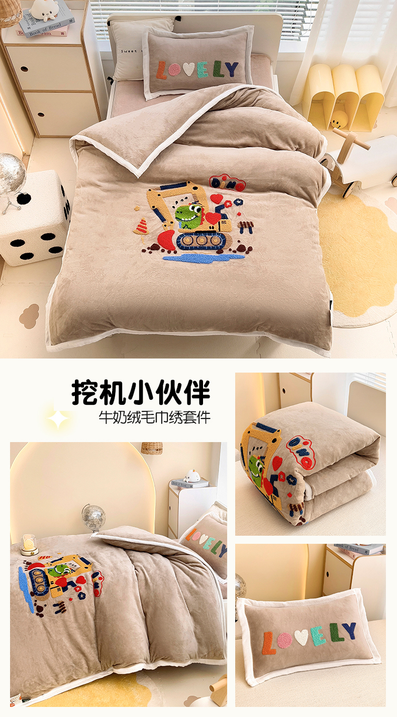当前位置: 91家纺网 > 商品网购 > 床品套件 > 三件套 > 梵赫 2025新款A类牛奶绒毛巾绣儿童幼儿园三件套多件套 挖机小伙伴