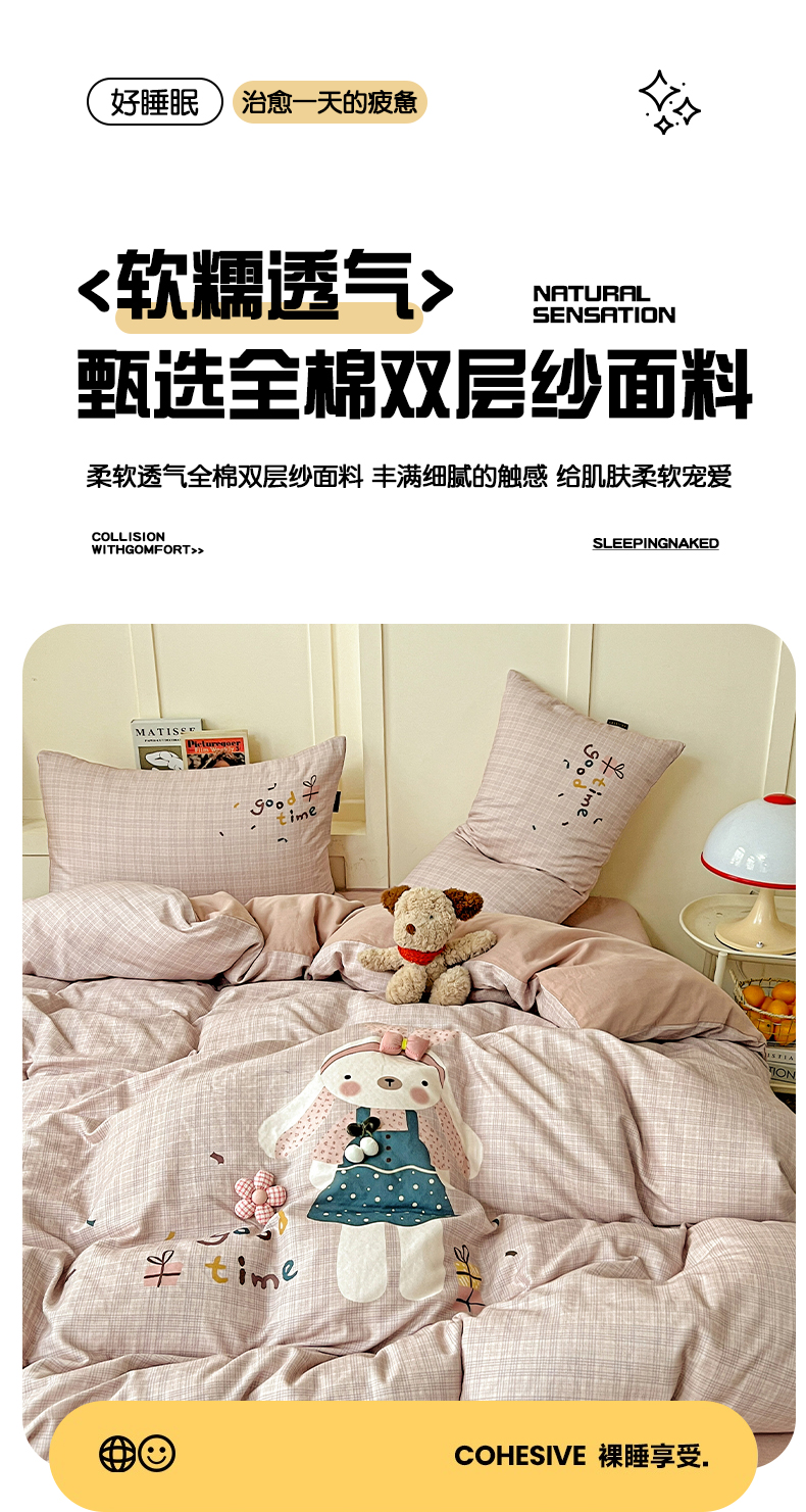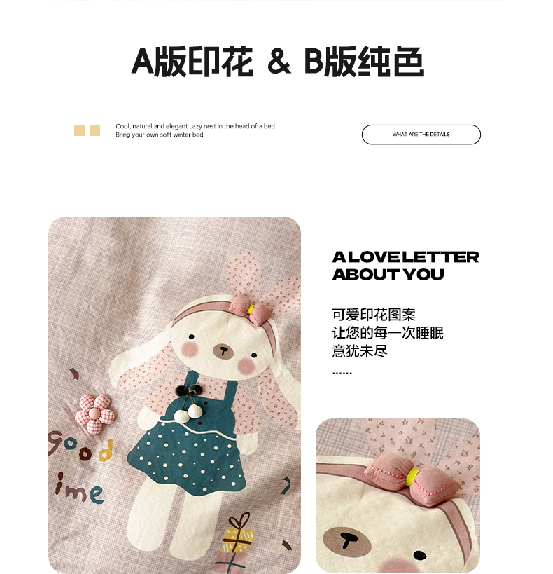 商品名称:娜娜 2025新款A类全棉双层纱大版四件套 兔公主宝贝