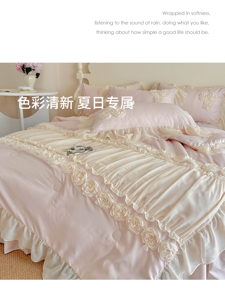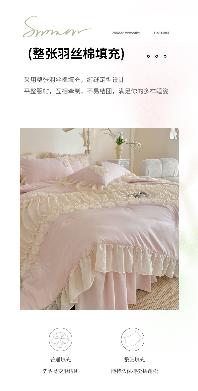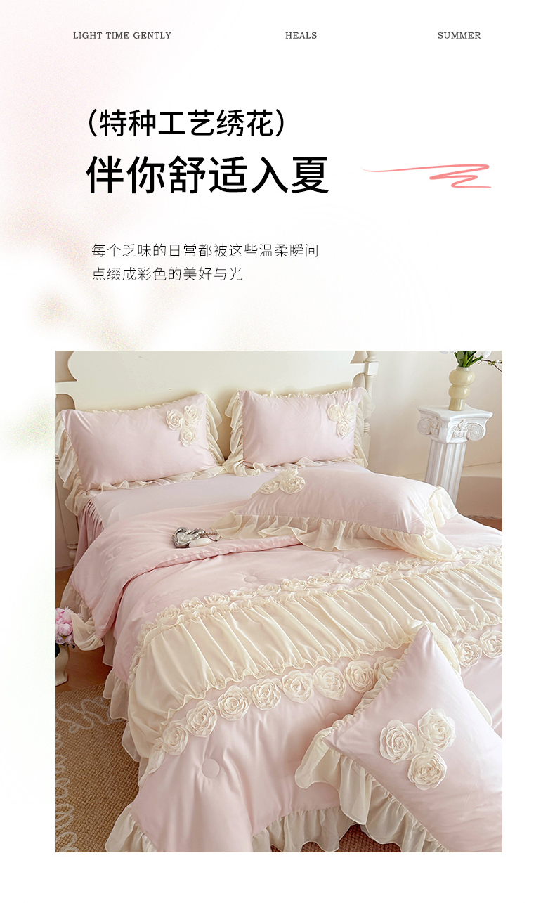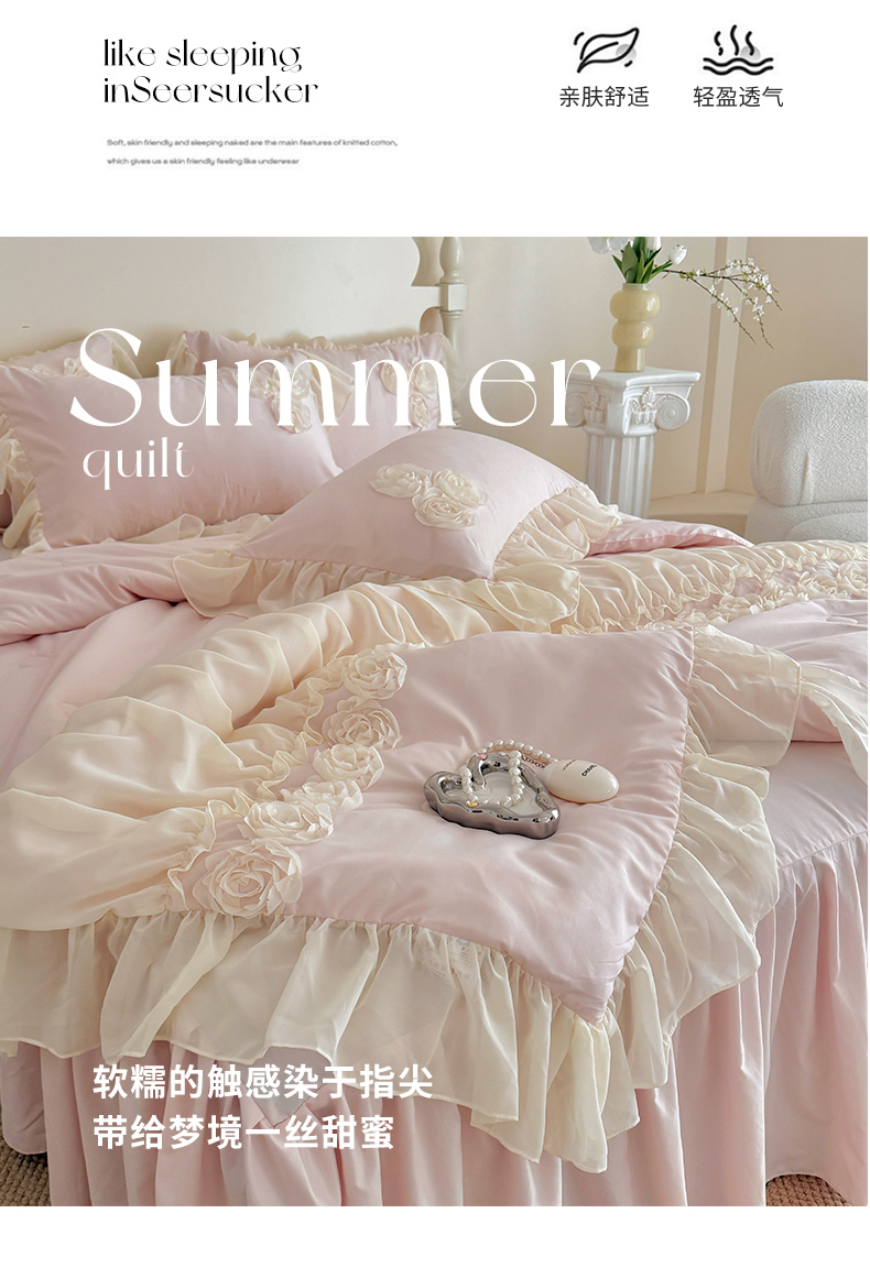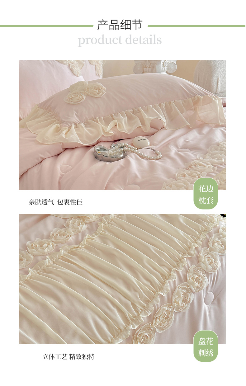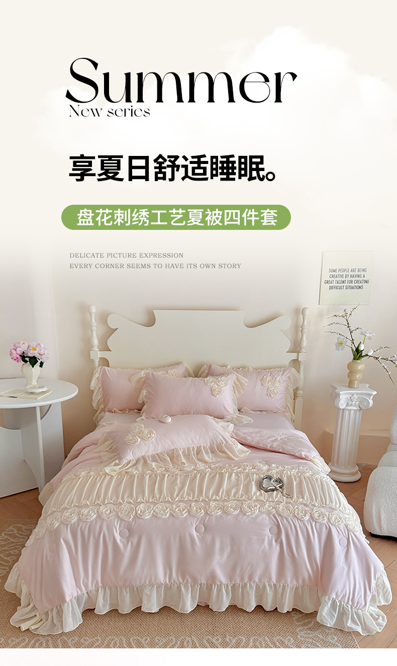 当前位置: 91家纺网 > 商品网购 > 床品套件 > 四件套 > 夏被四件套 > 富盛家纺 2025新款水洗亲肤棉盘花特种刺绣夏被夏凉被空调被床裙款四件套 甜蜜蜜-粉