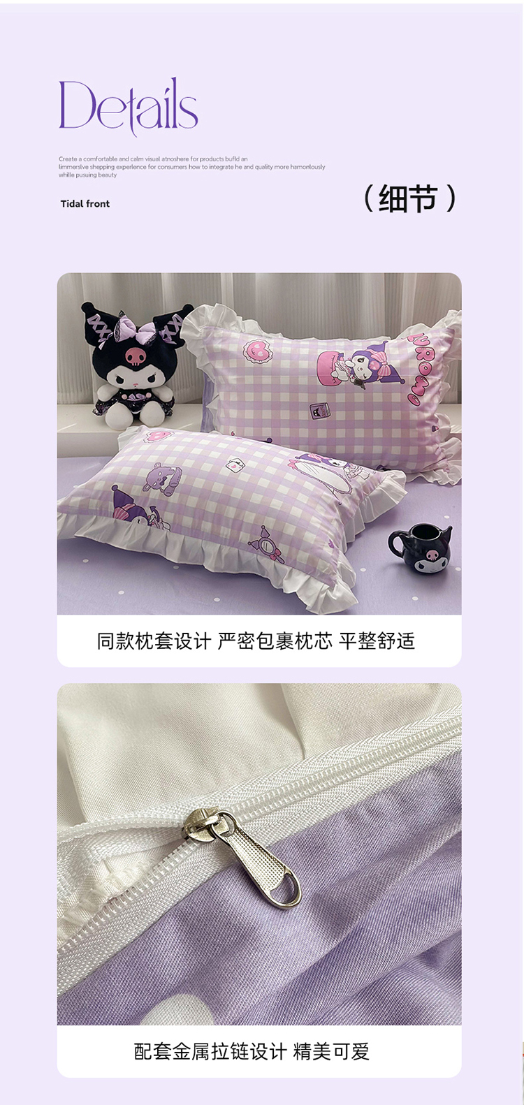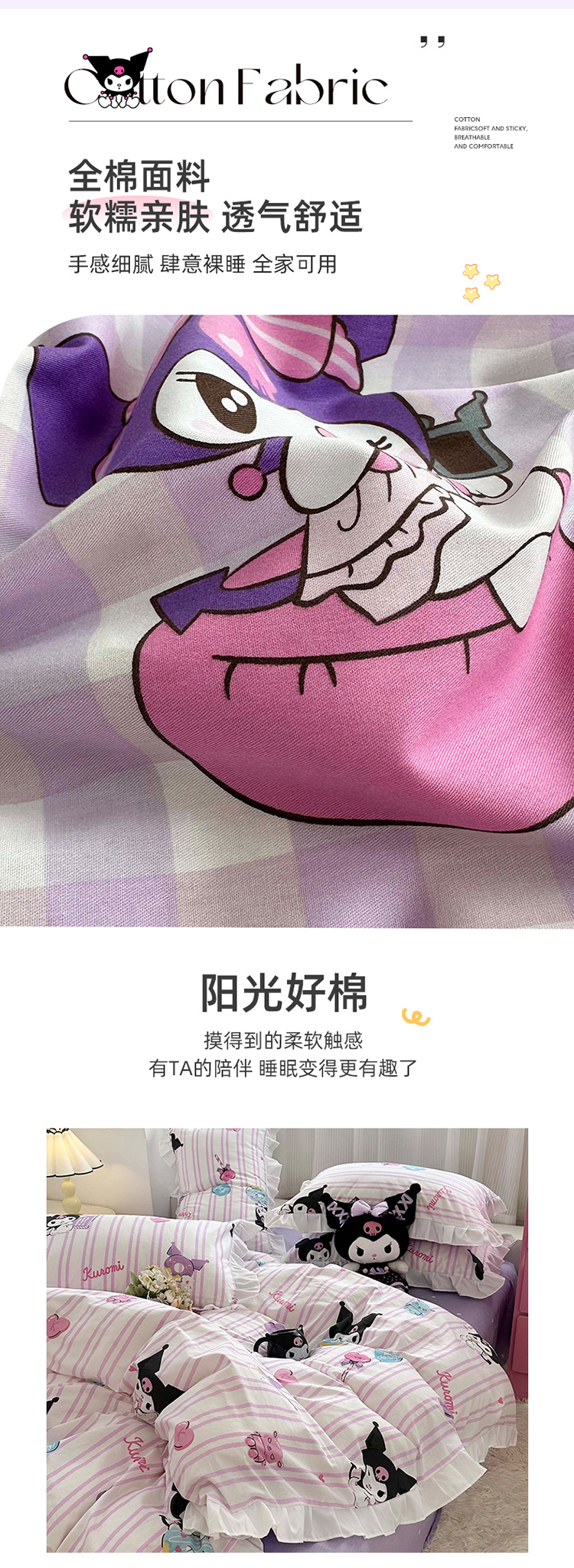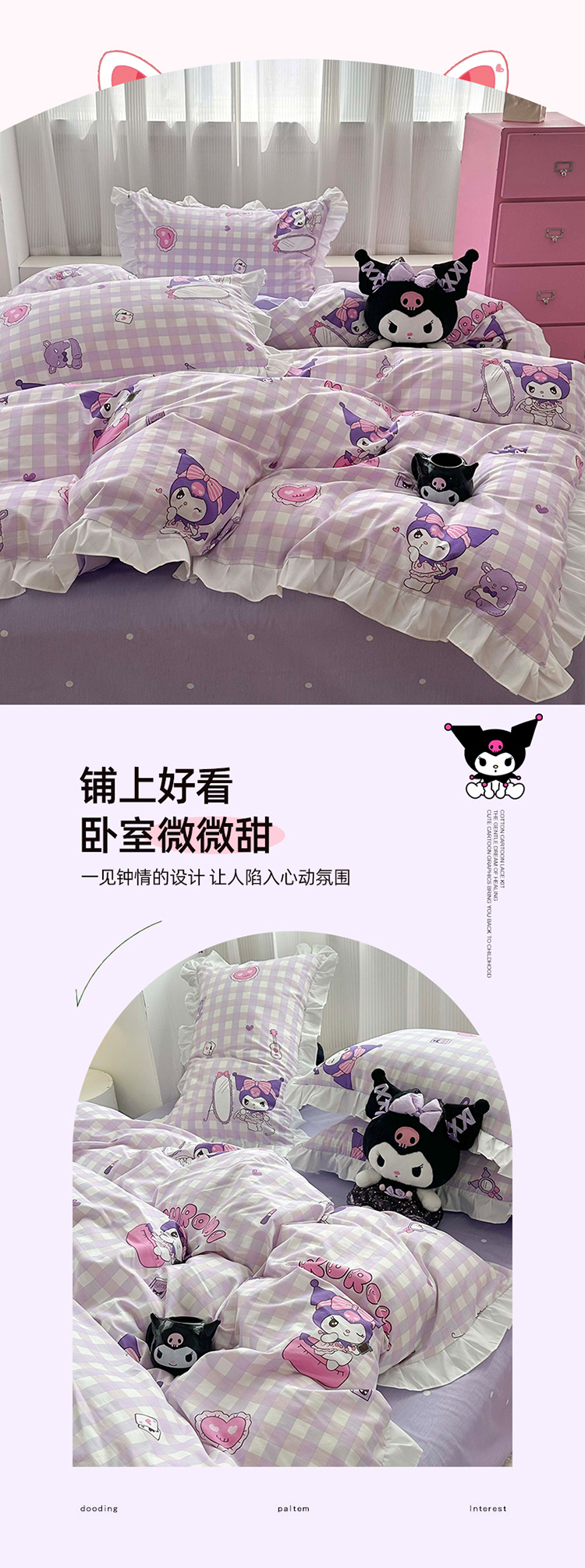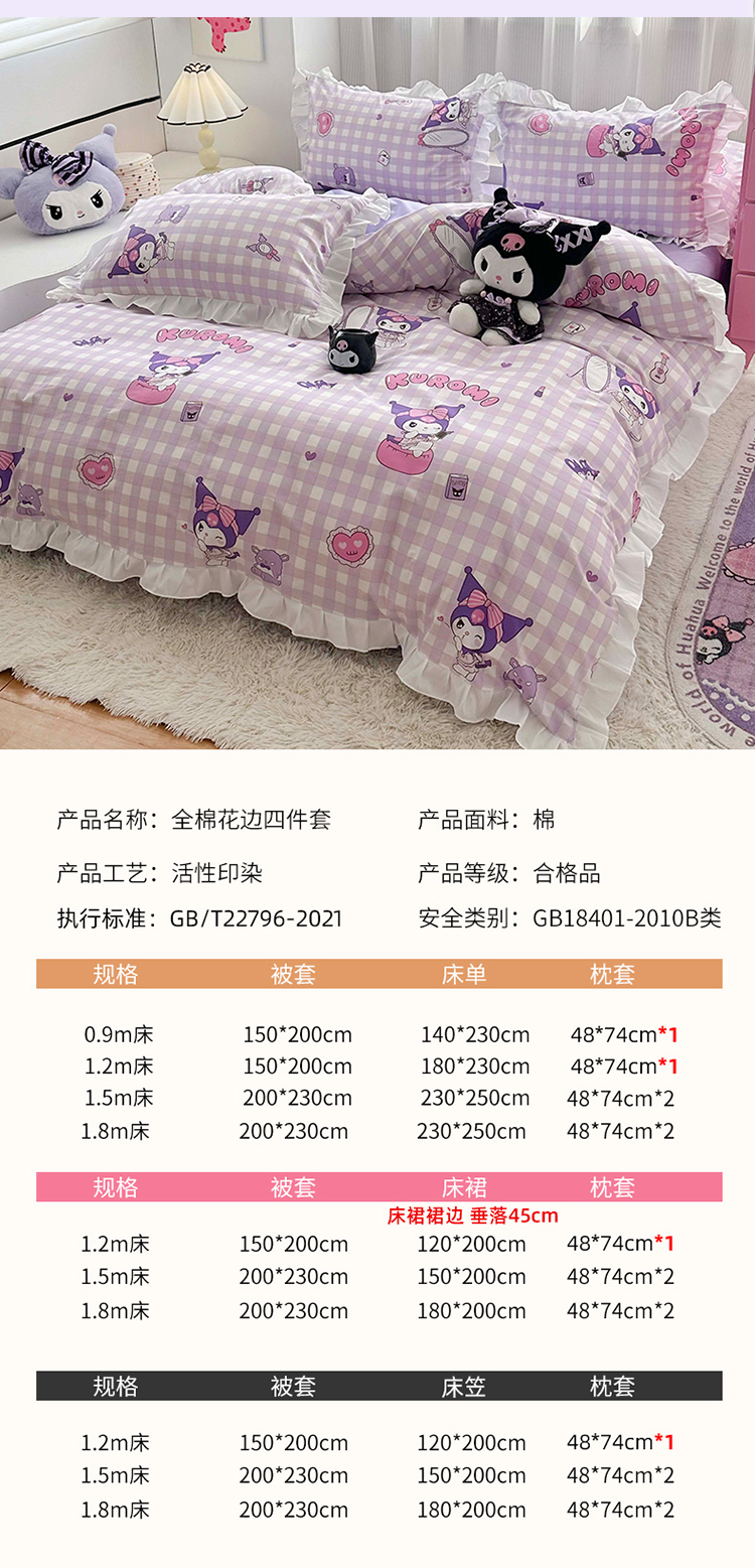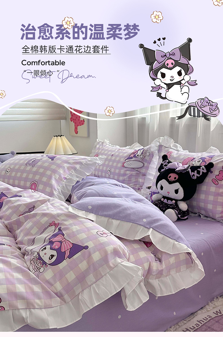 当前位置: 91家纺网 > 商品网购 > 床品套件 > 四件套 > 全棉普通四件套 > 玉元坊 2025新款凯蒂猫全棉库洛米纯棉床裙公主风花边被套四件套三件套(第三批)-花边款 花边款-紫格库洛米