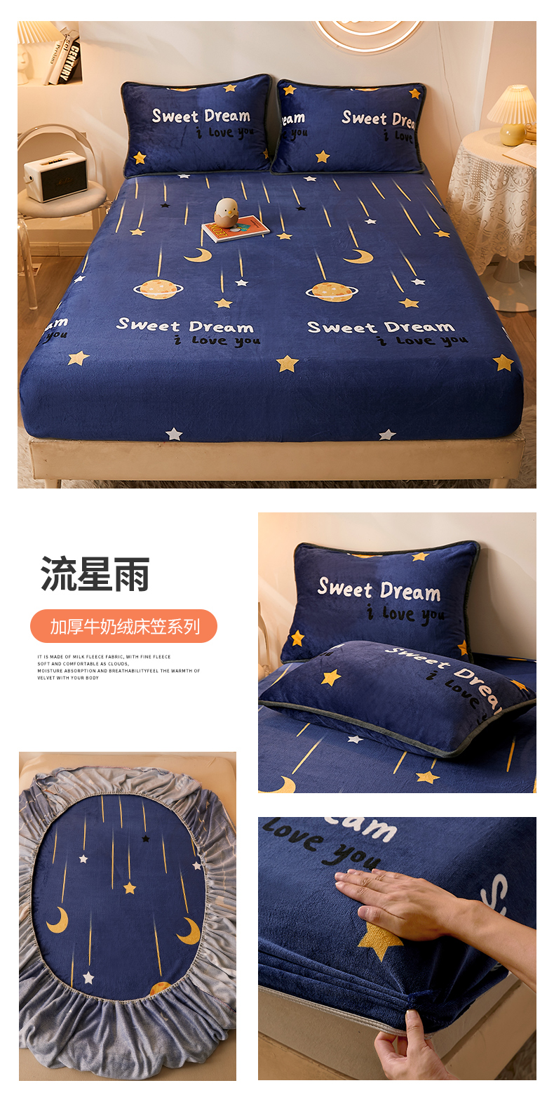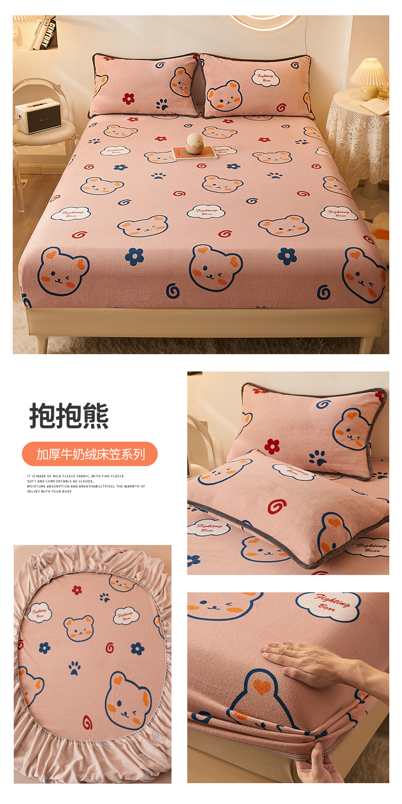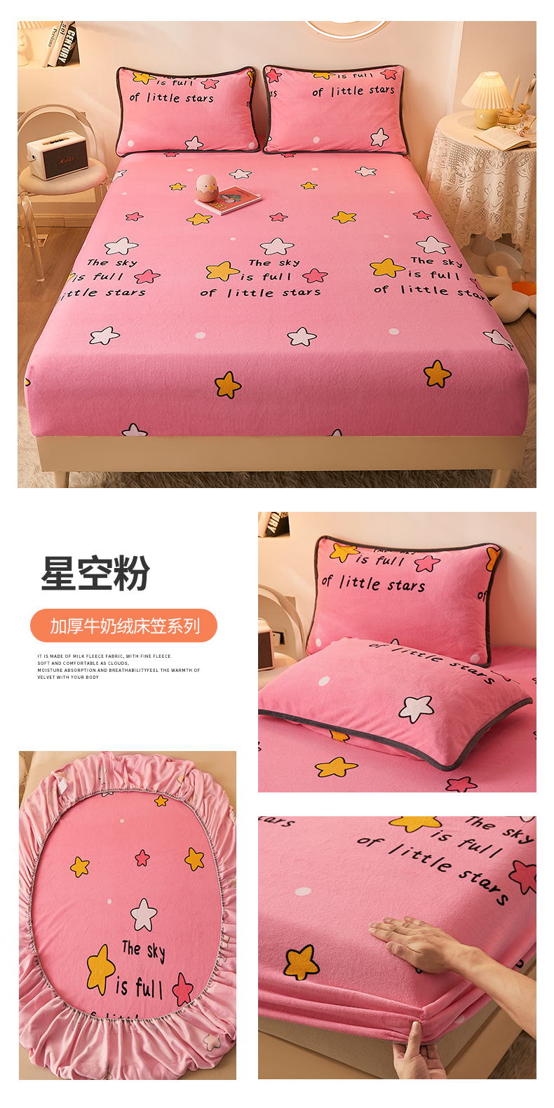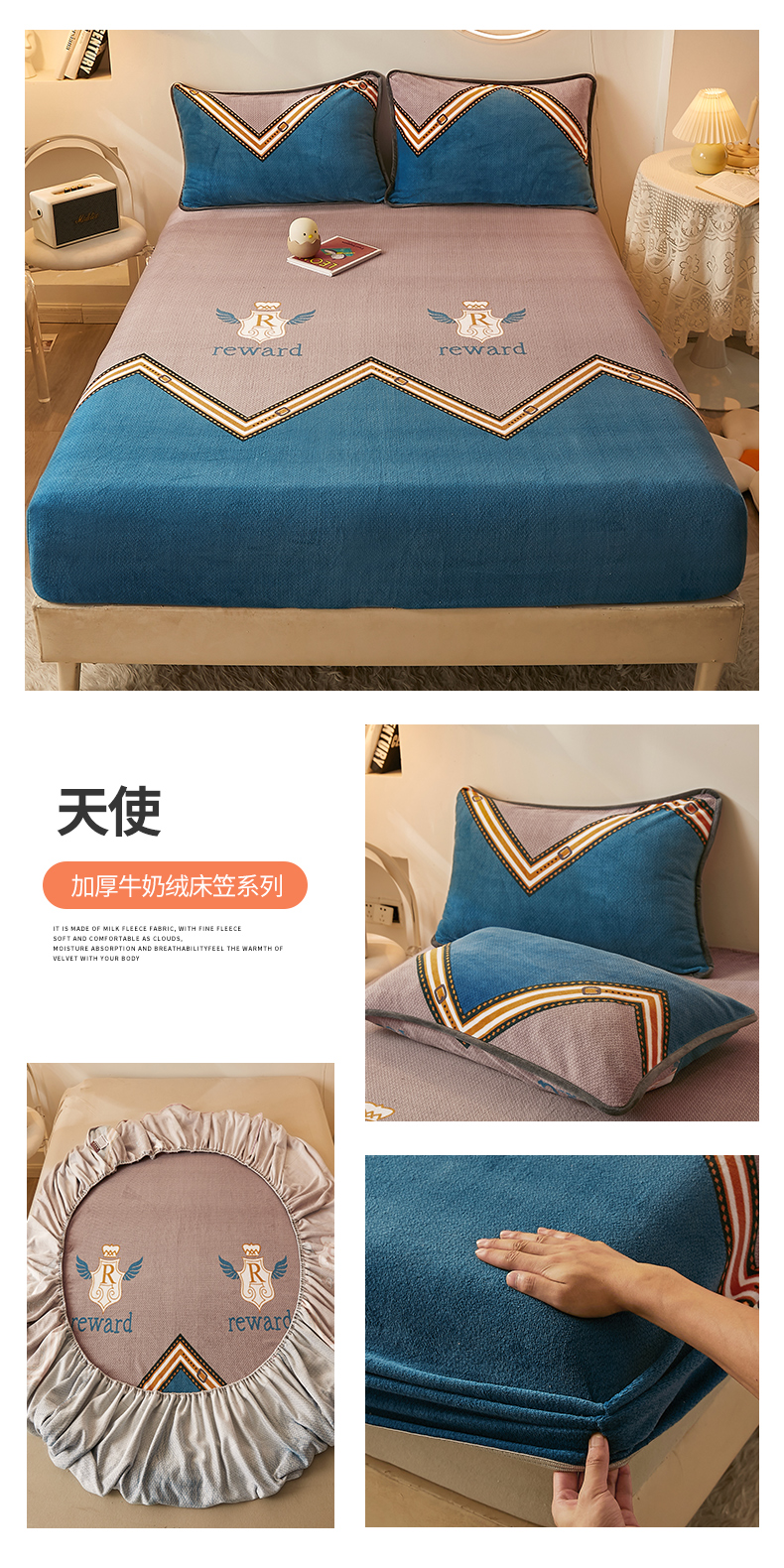 (总)耐思家纺 2023新款牛奶绒单面床笠 床笠 三件套