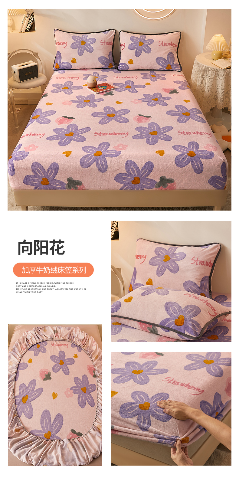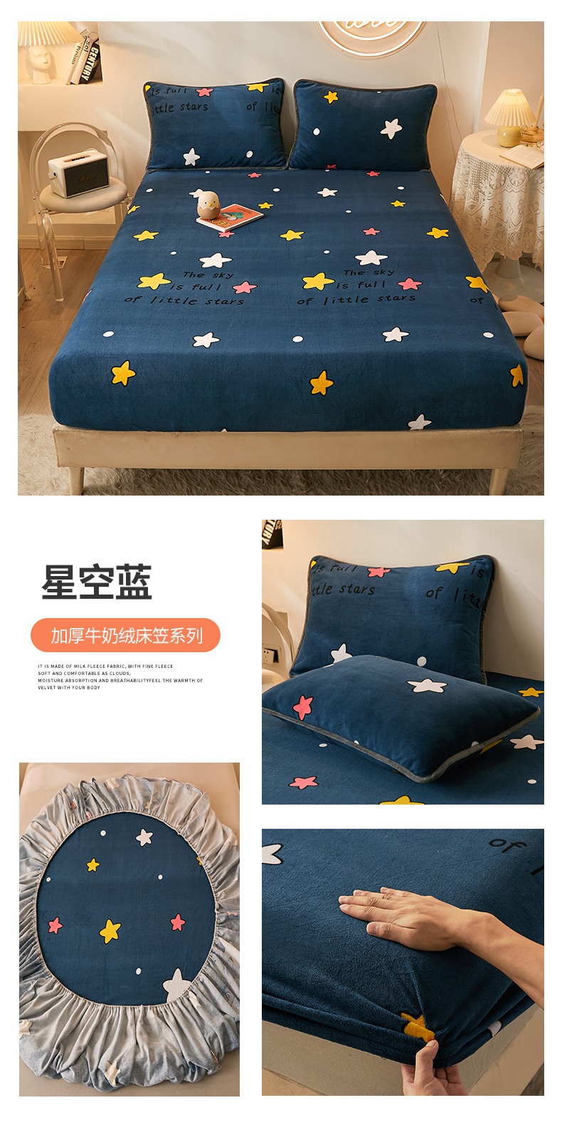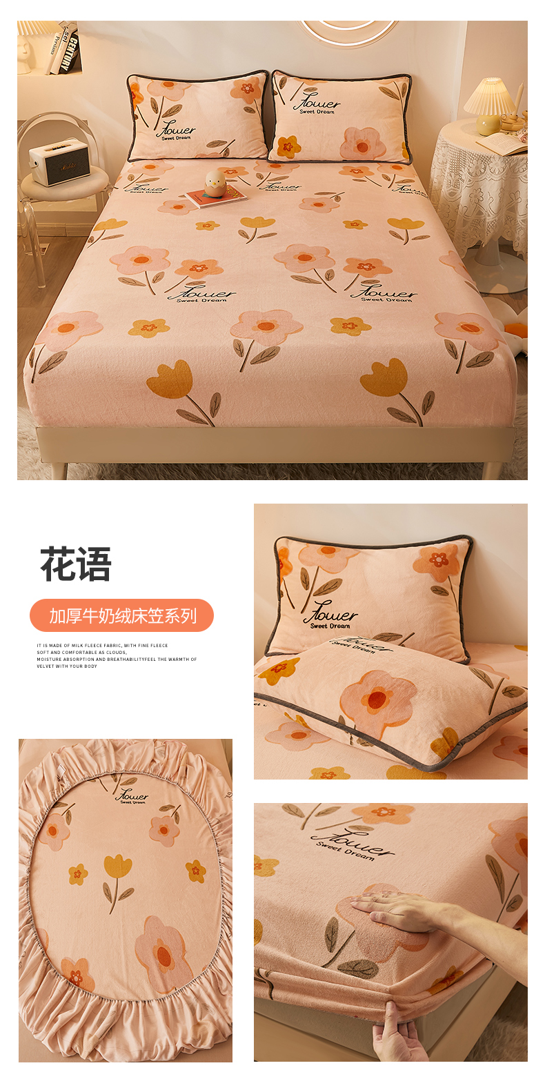 (总)耐思家纺 2023新款牛奶绒单面床笠 床笠 三件套
